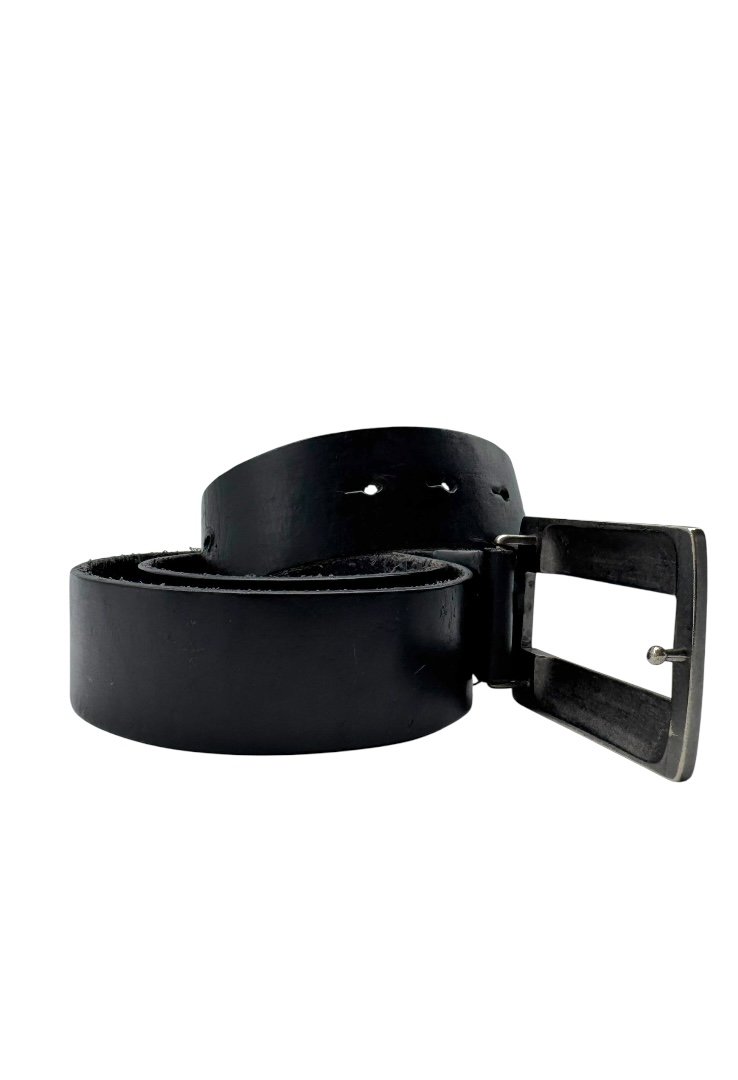 Cinturón elaborado de cuero, con hebilla en plata, nombre grabado en la placa.