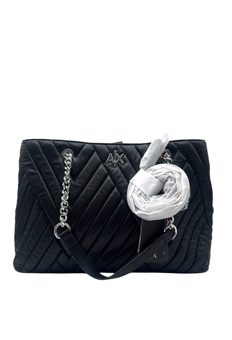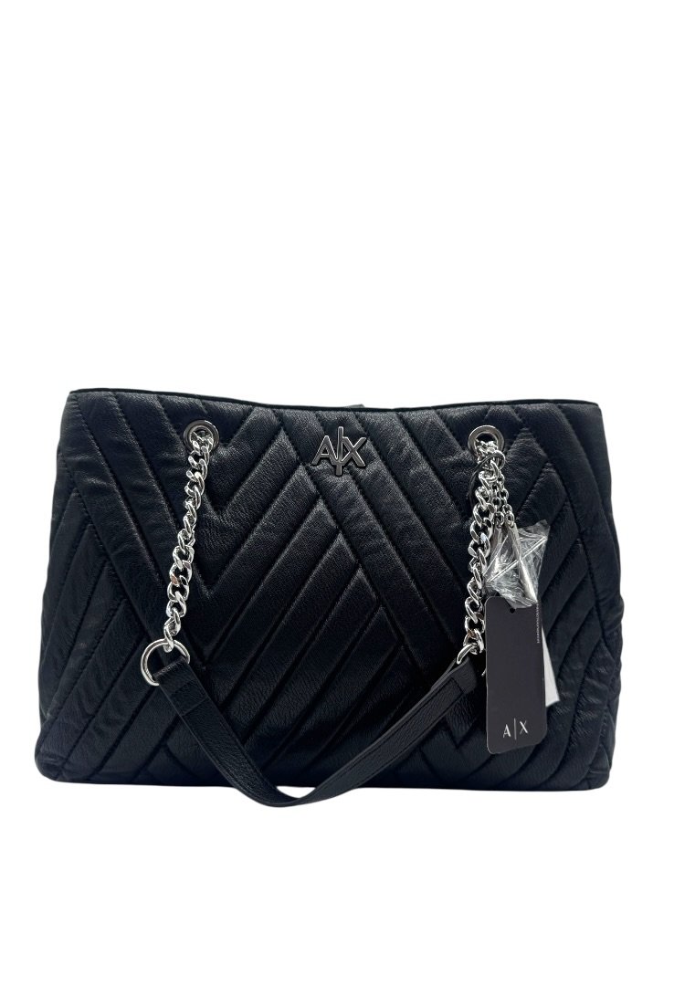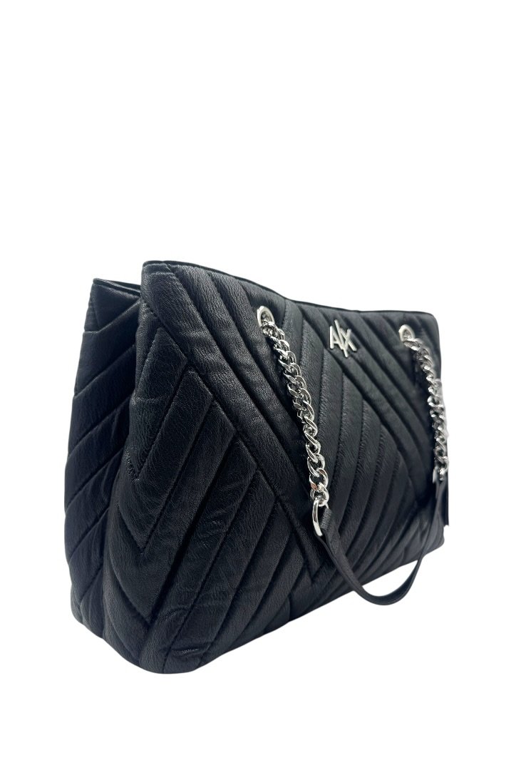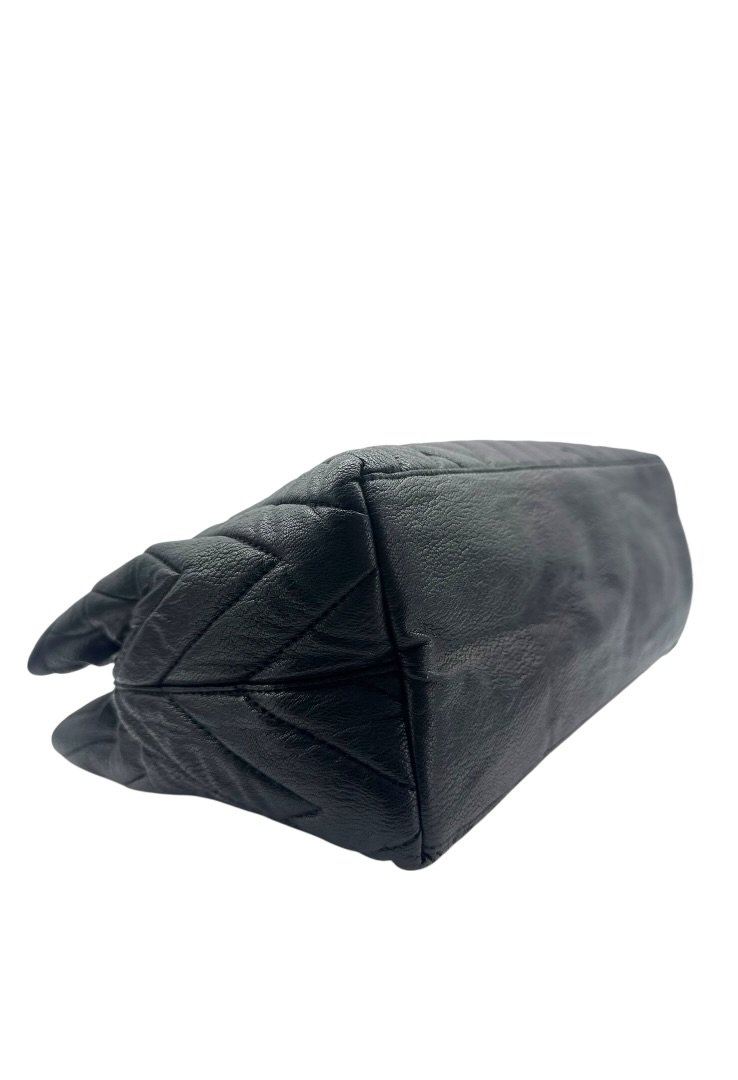 Mochila elaborada en lona estilo acolchonado, con herrajes en plata, detalle de cadena en el asa, compartimento interno con zipper.