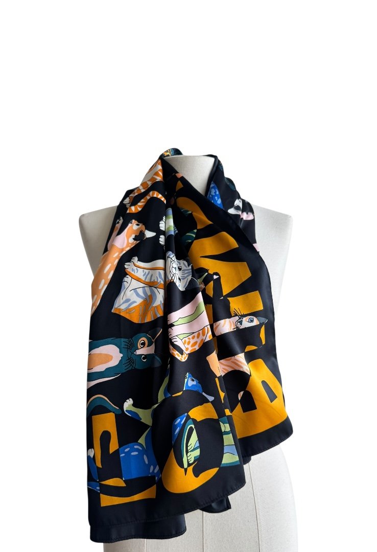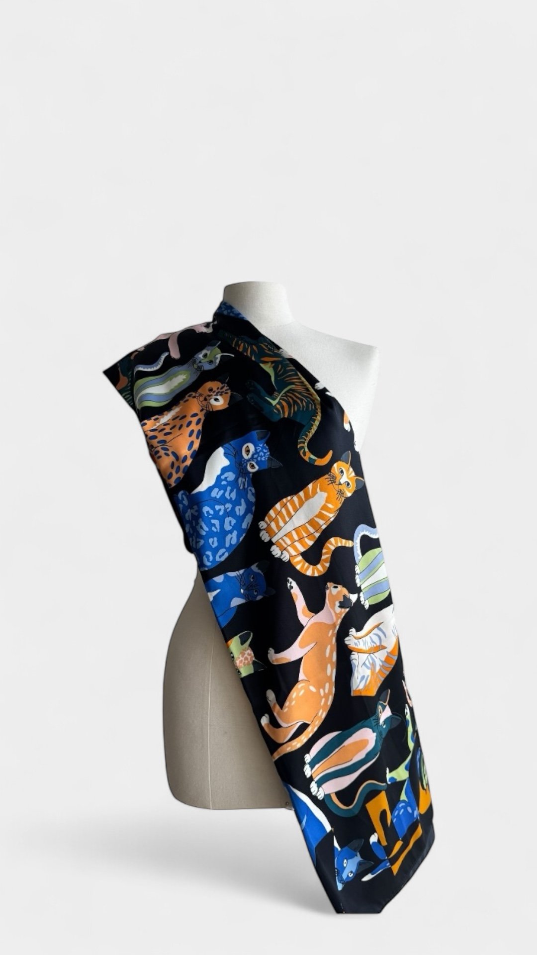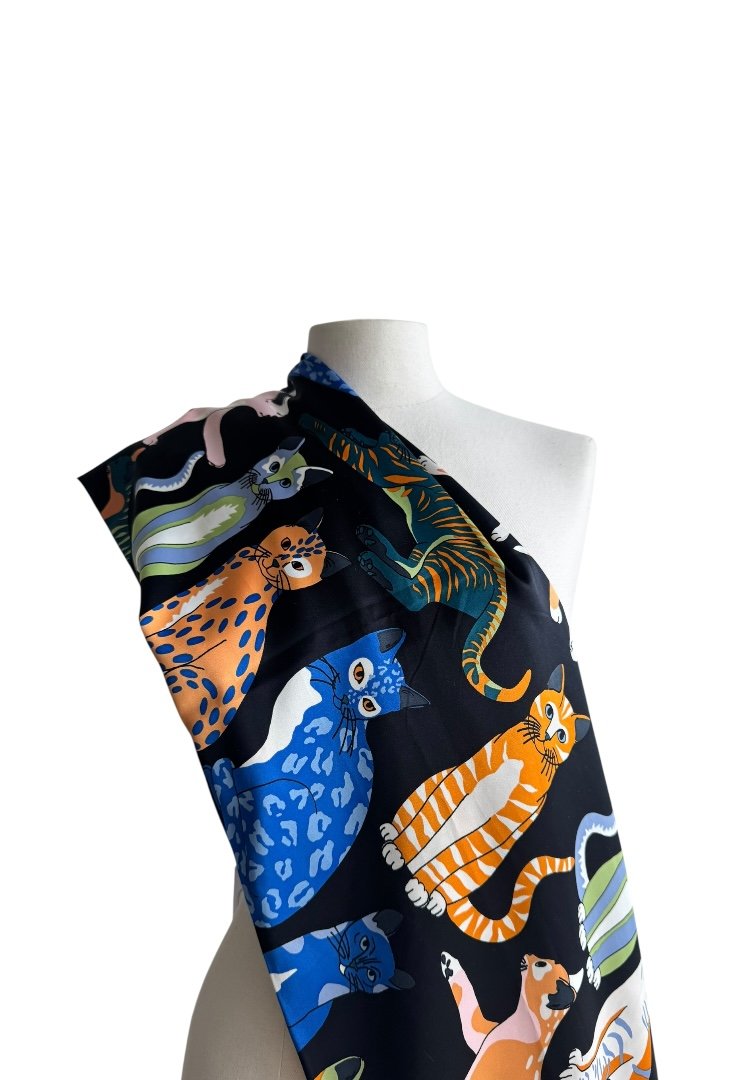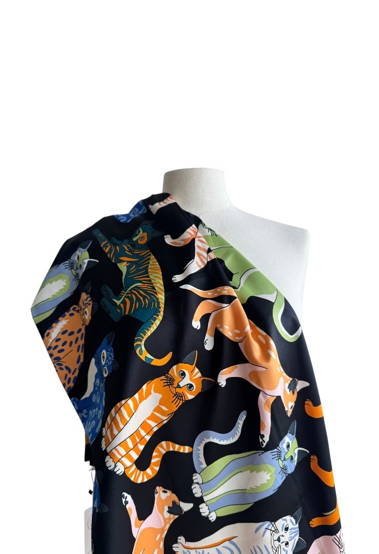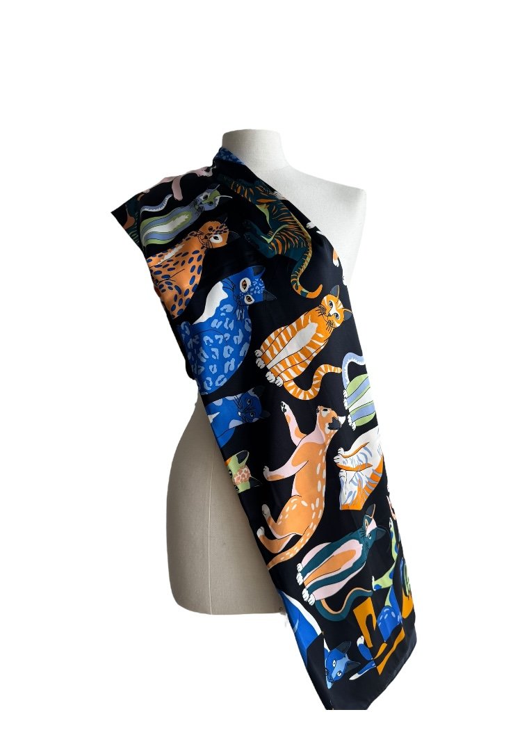 Mascada de poliéster, con diseño de gatos.