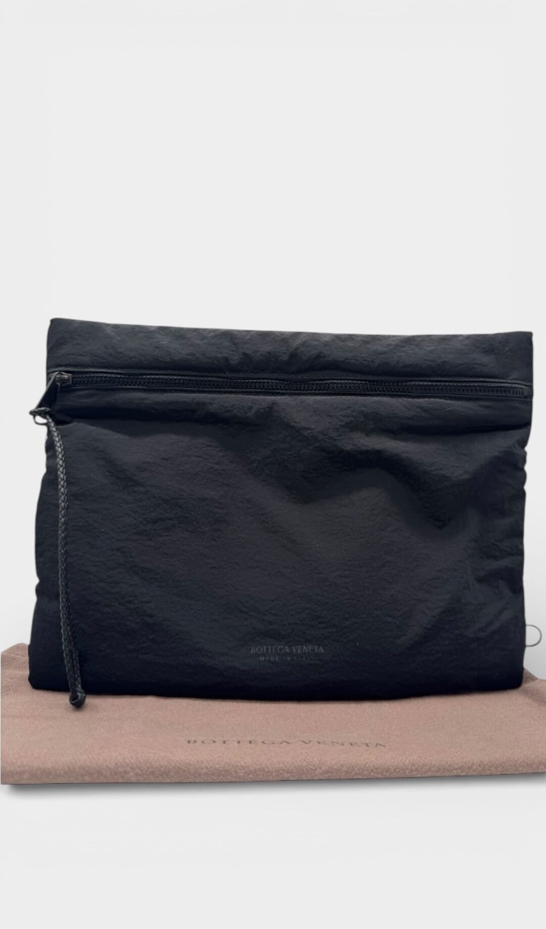 Pochette elaborado en nylon, compartimento principal con zipper.