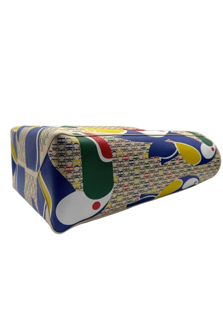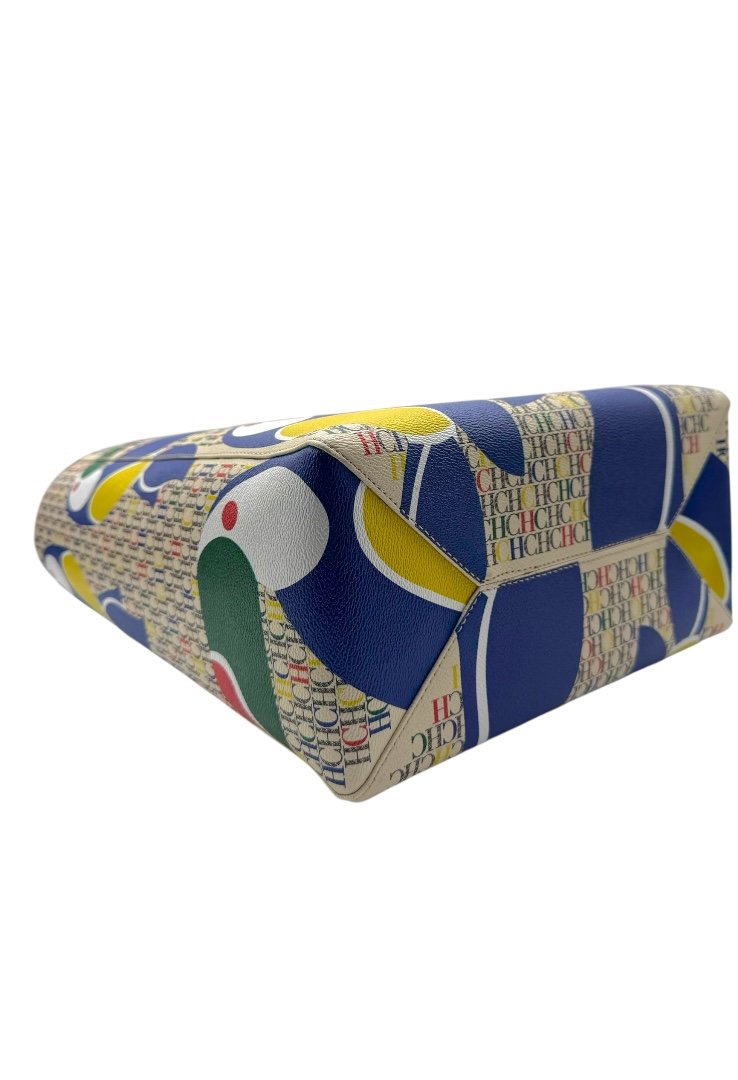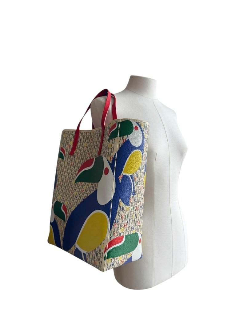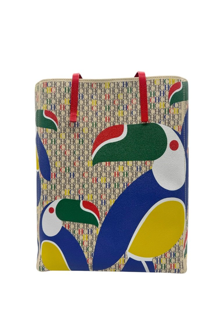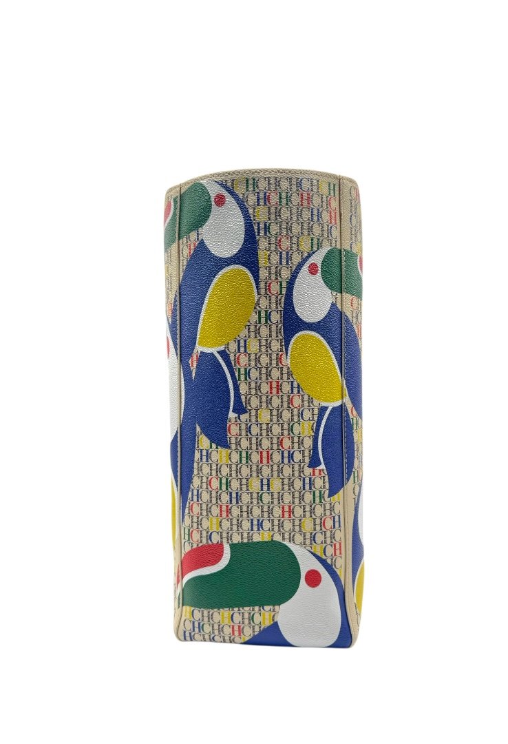 Bolso tote elaborado en lona, con diseño monogram, con estampado de tucanes.