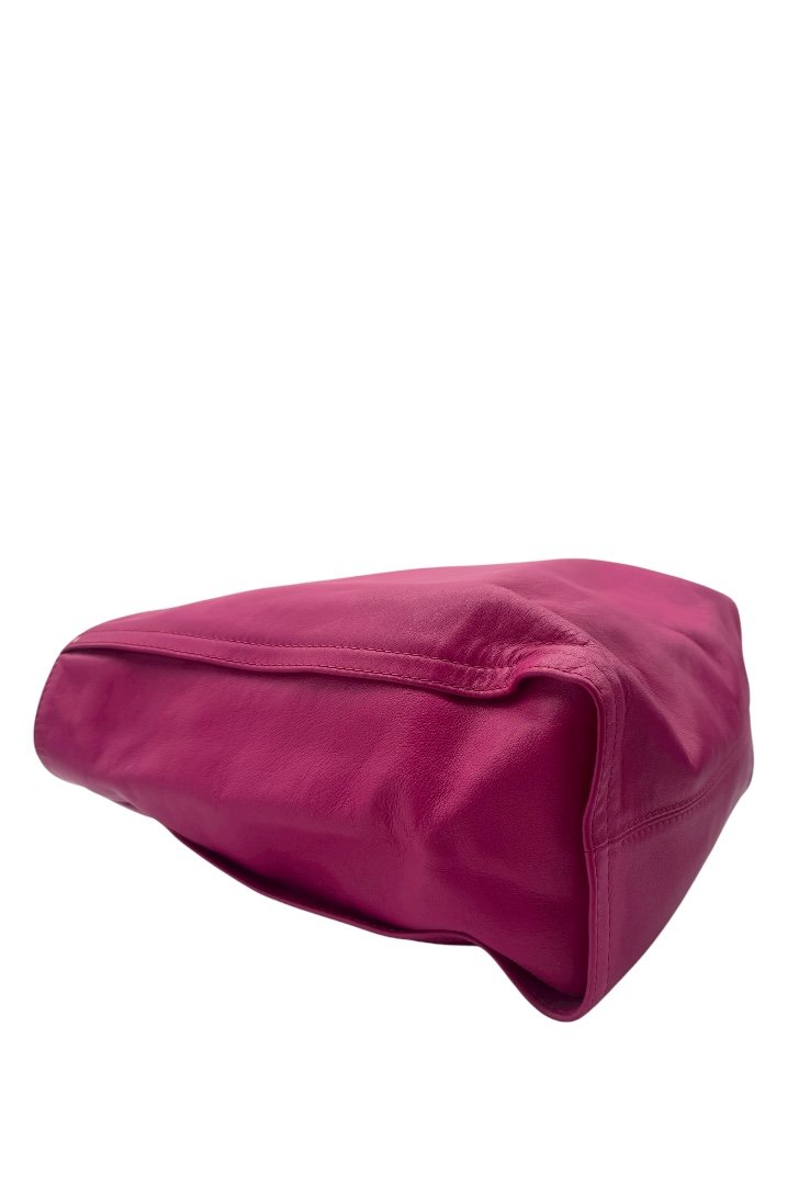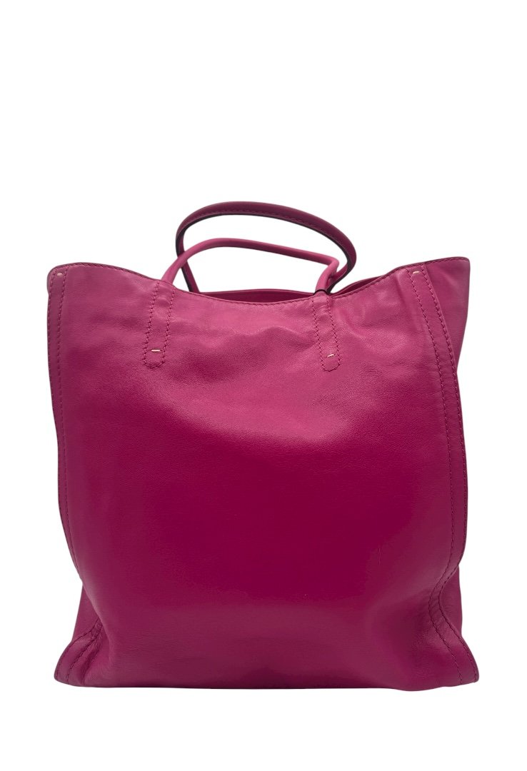 Elaborado en piel ,sello de relieve distintivo de la marca al frente, doble asa para usarse en al hombro.