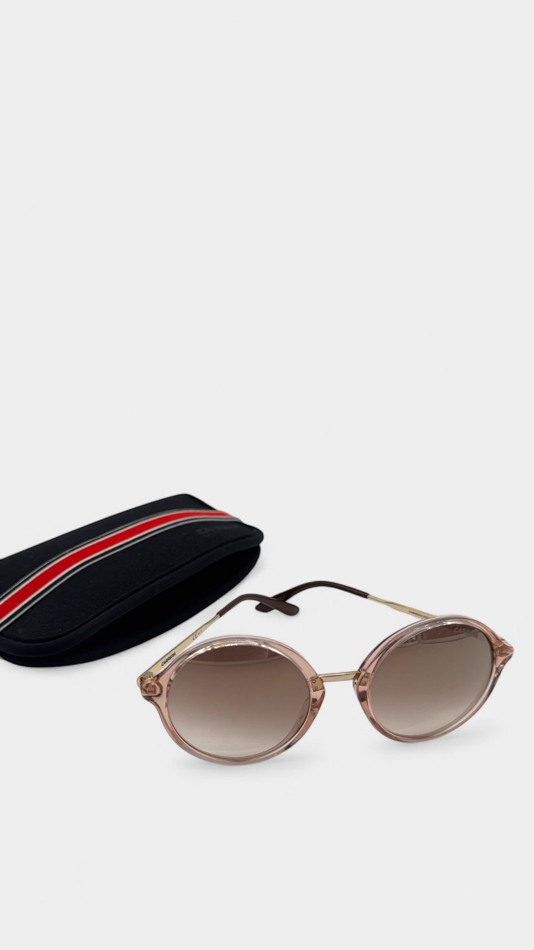 Lentes de sol elaborados de acetato transparente en rosa, mica en café.