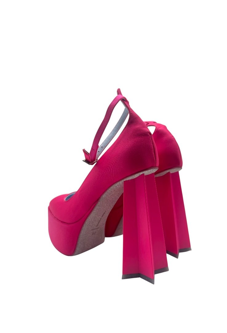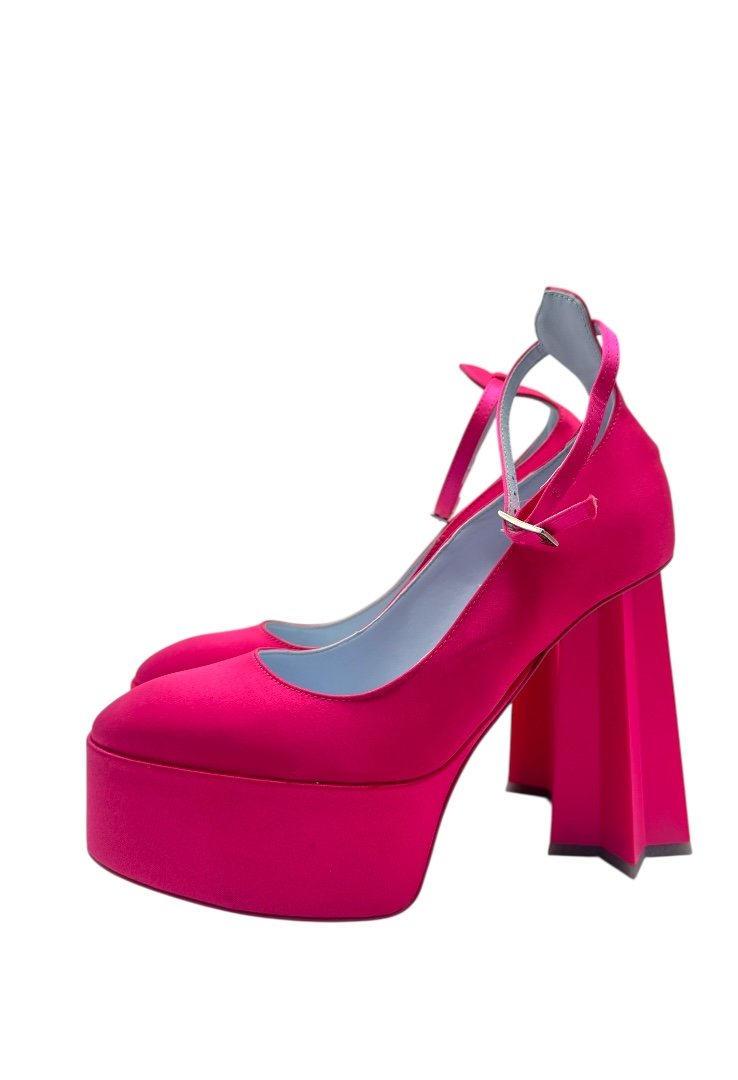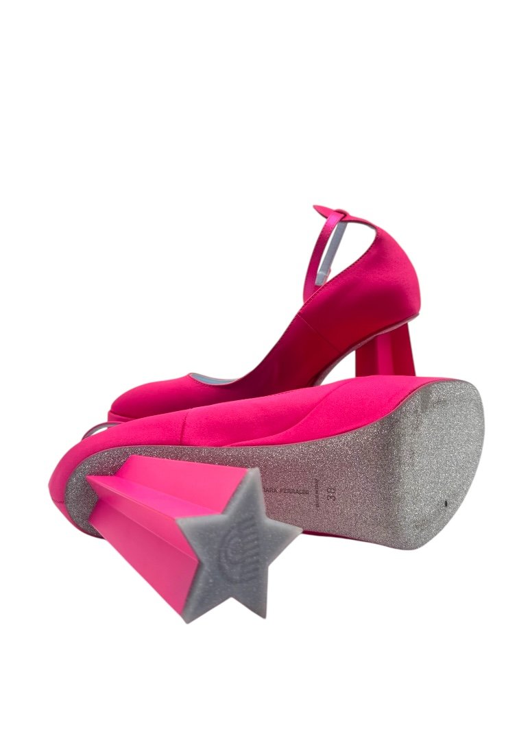 Plataformas de tacon de estrella, asa para tobillo, elaborados de tela.