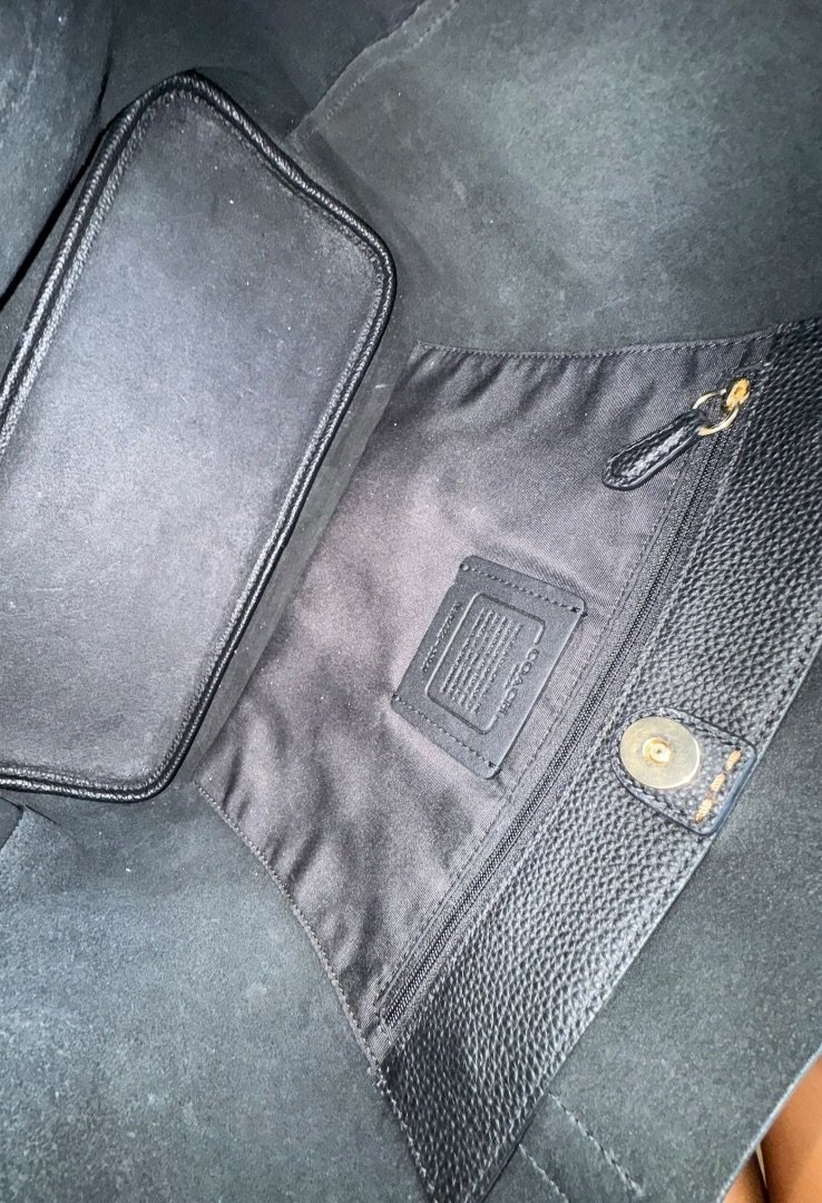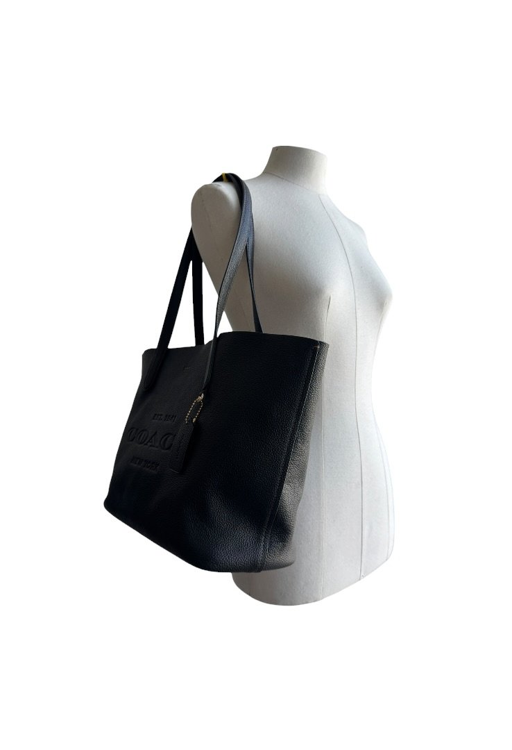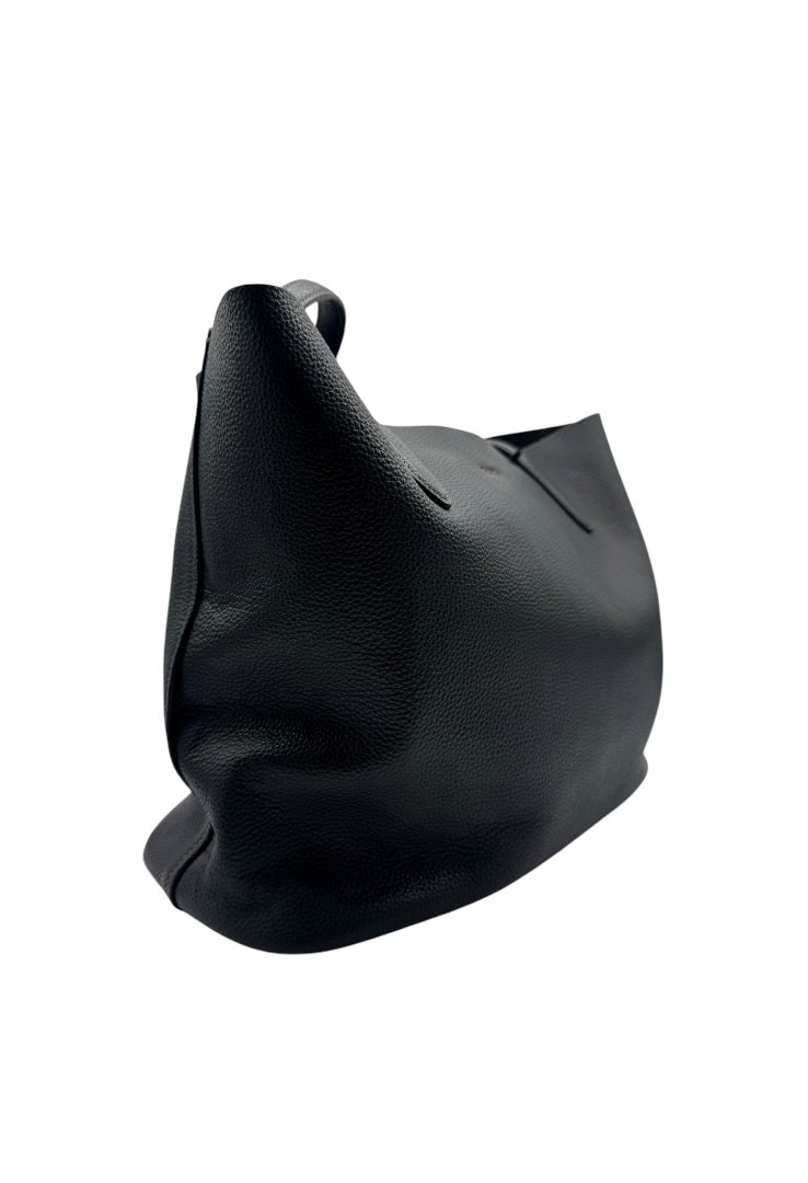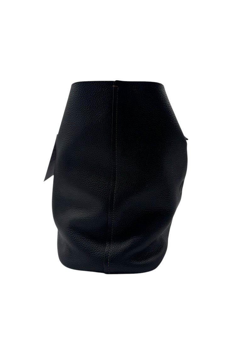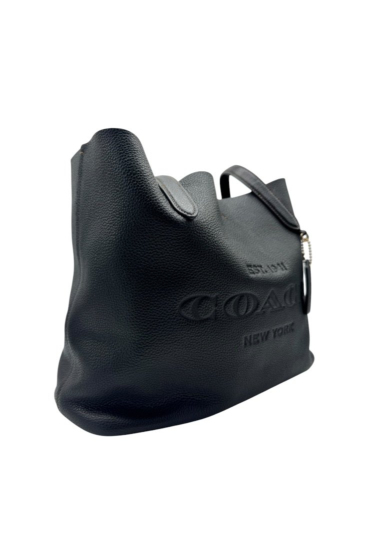 Bolsa elaborada en piel granulada, marca y detalles en relieve, herrajes en dorados.