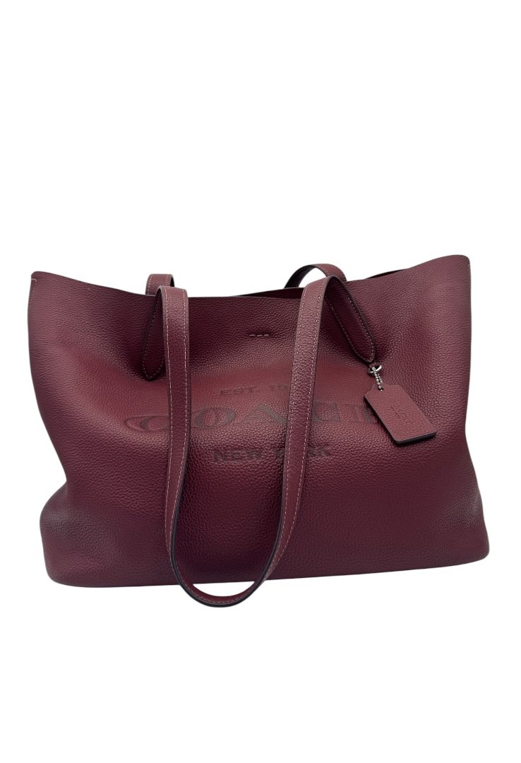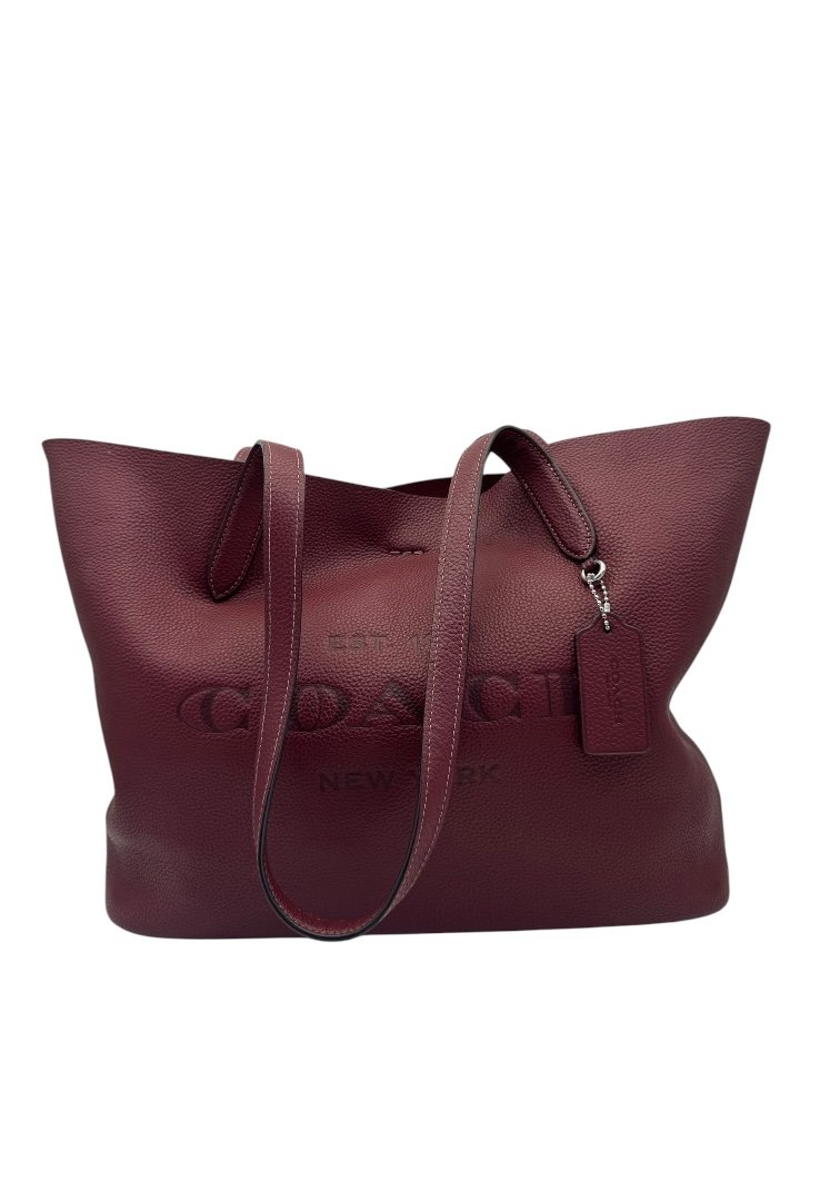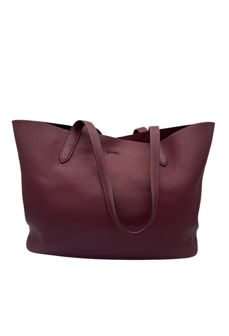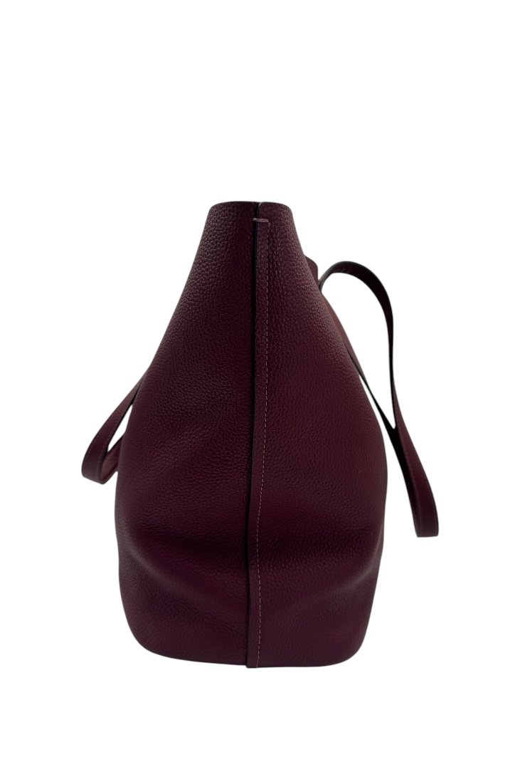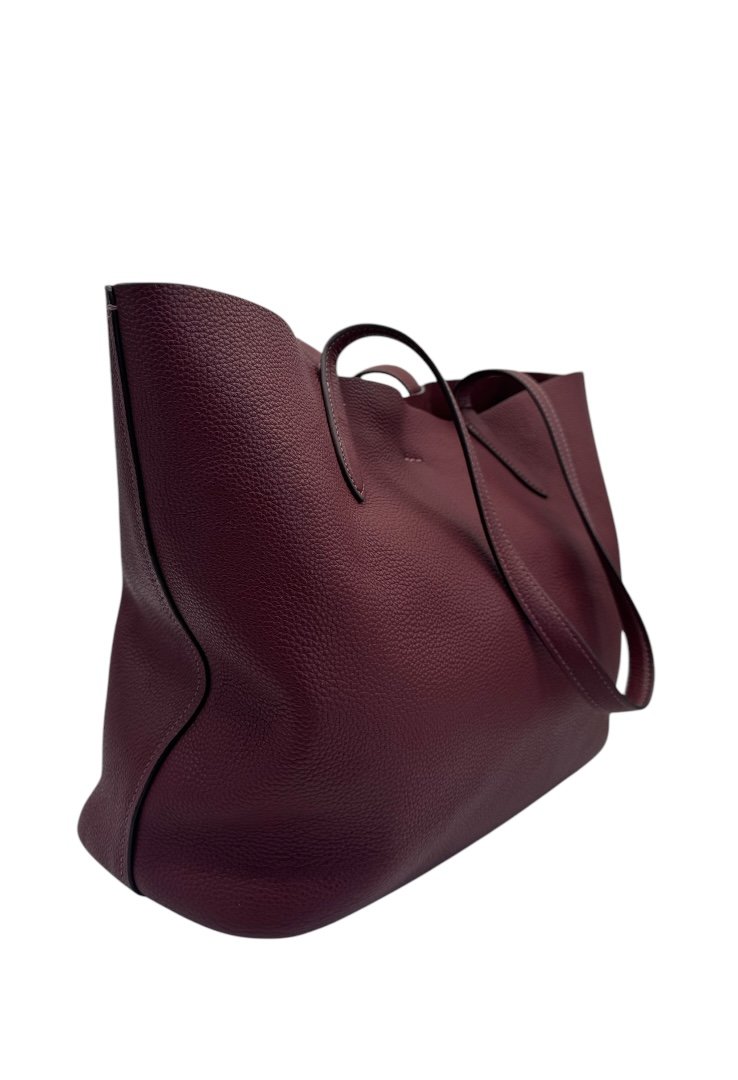 Fabricado en piel granulada natural, logo en relieve, cierre con imán, interior en gamuza color vino.