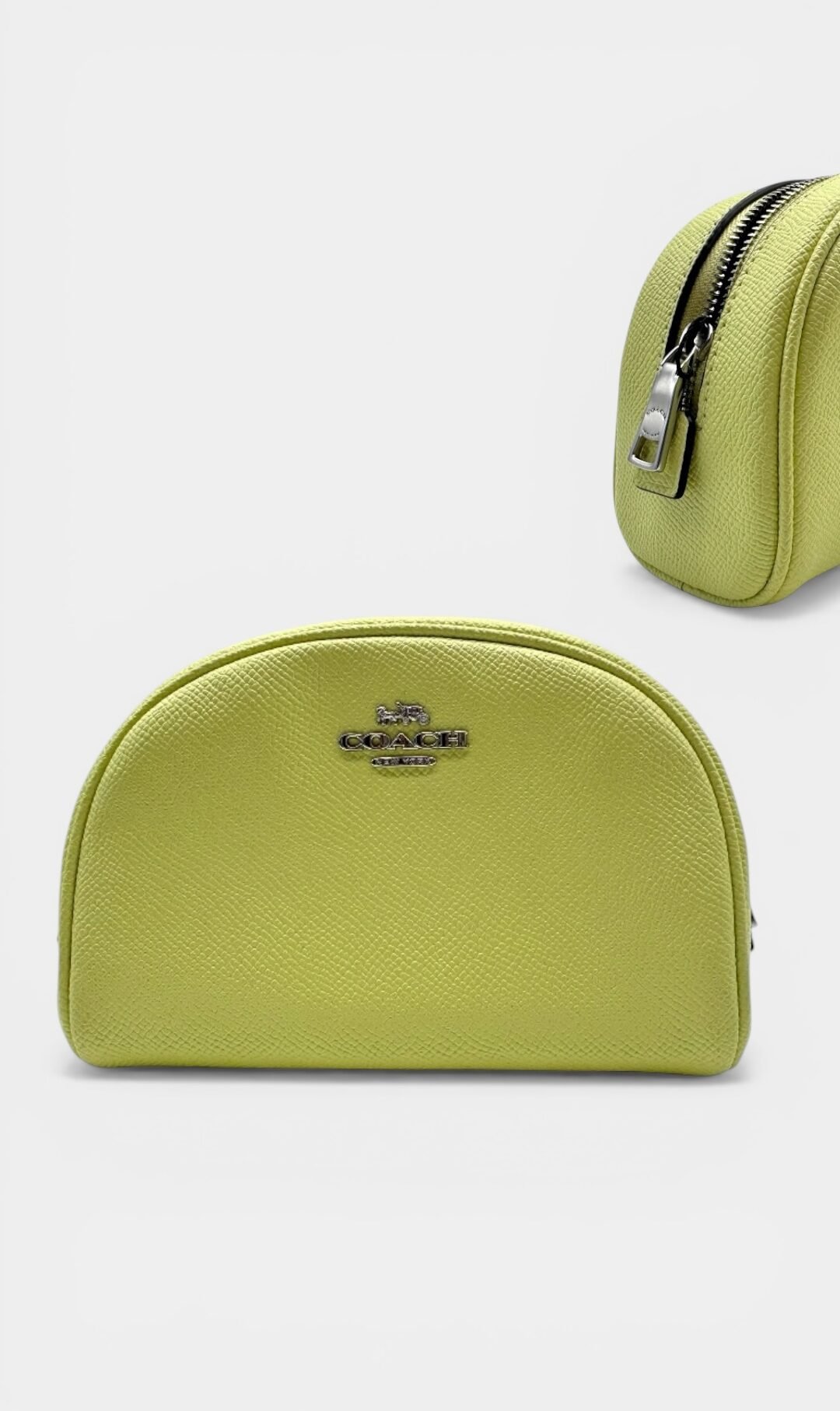 Cosmetiquera elaborada en lona estilo granulada, herrajes en plata, compartimento principal con zipper.