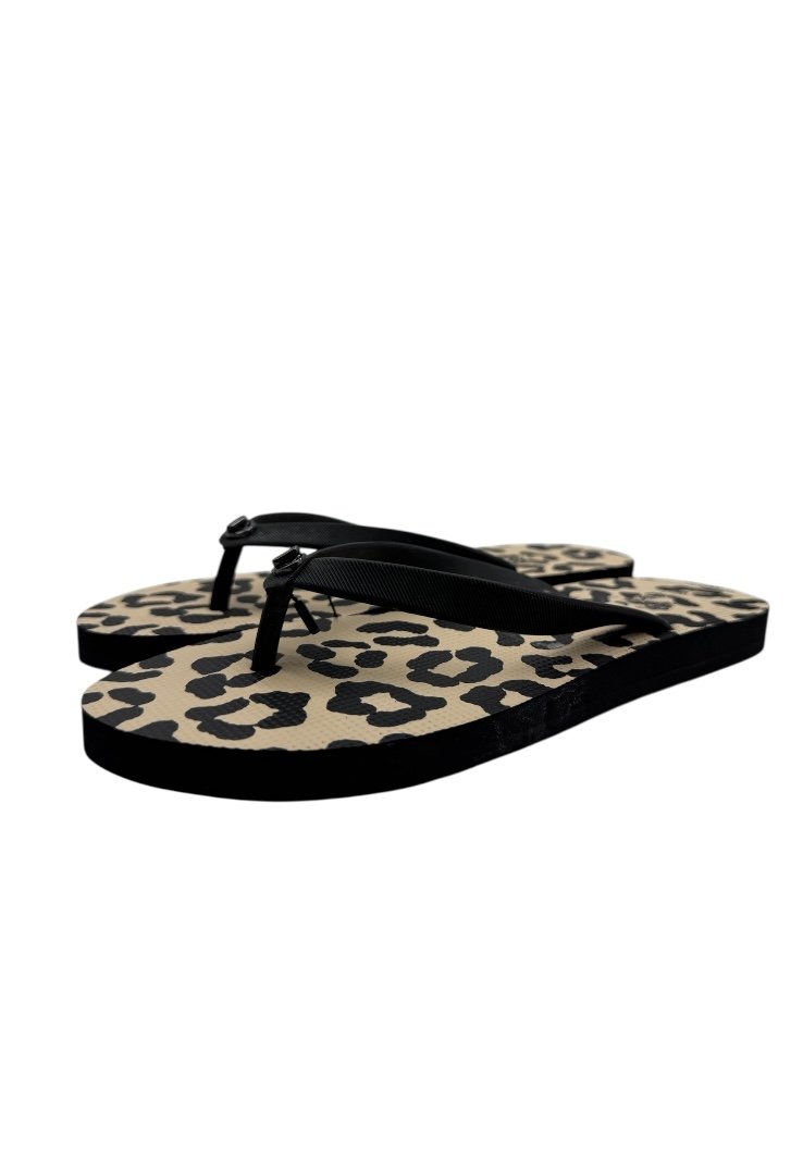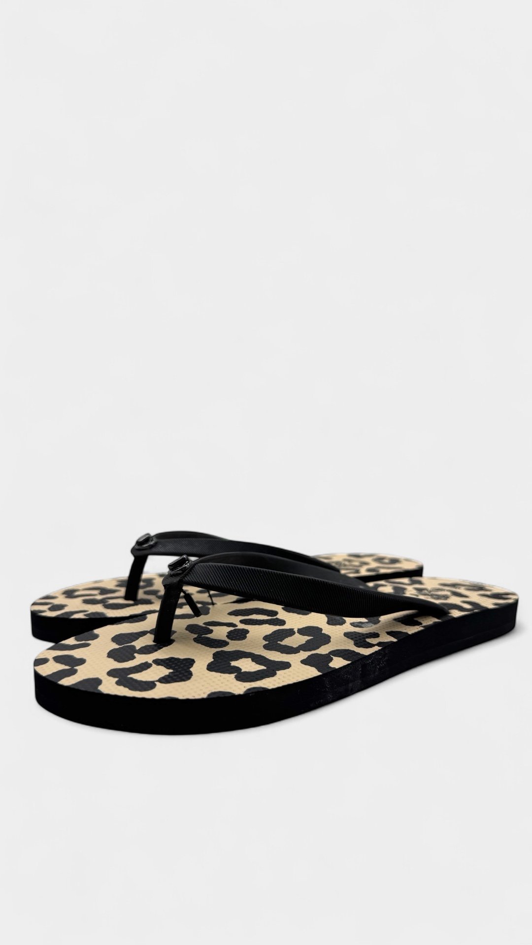 Flip-flops elaboradas de goma, con diseño de leopardo.