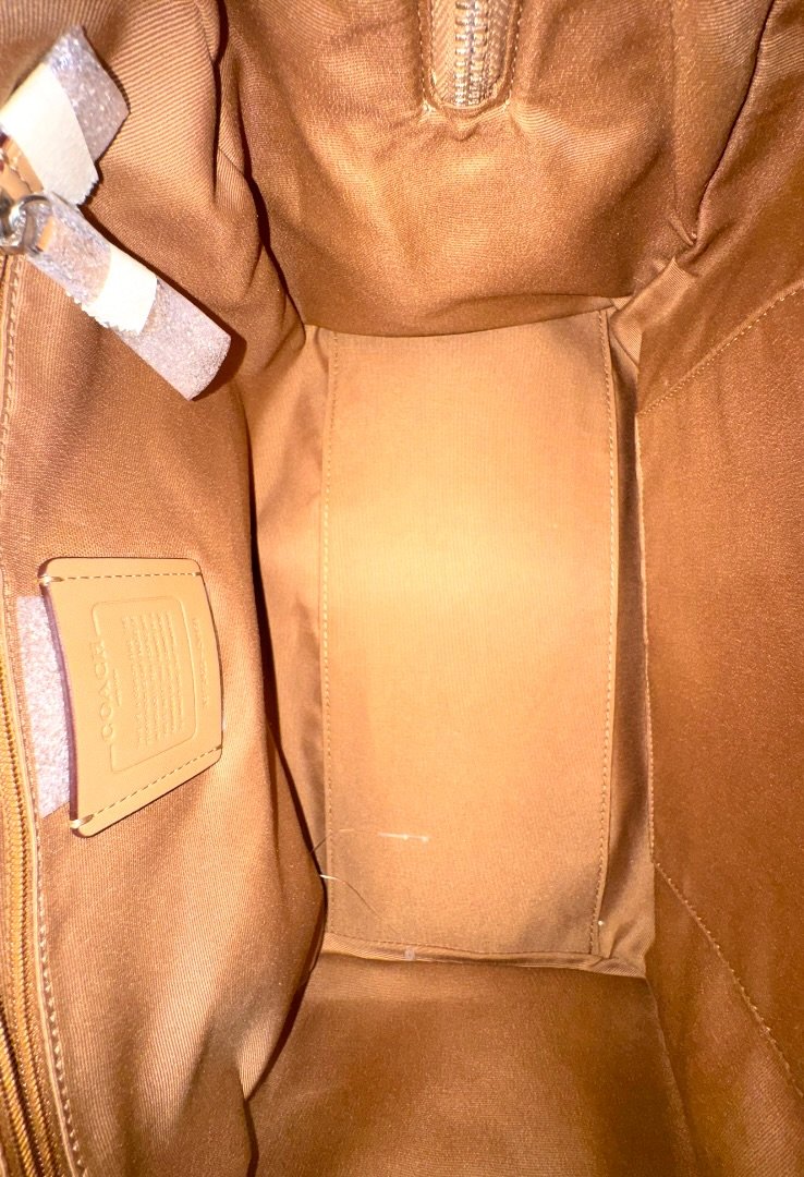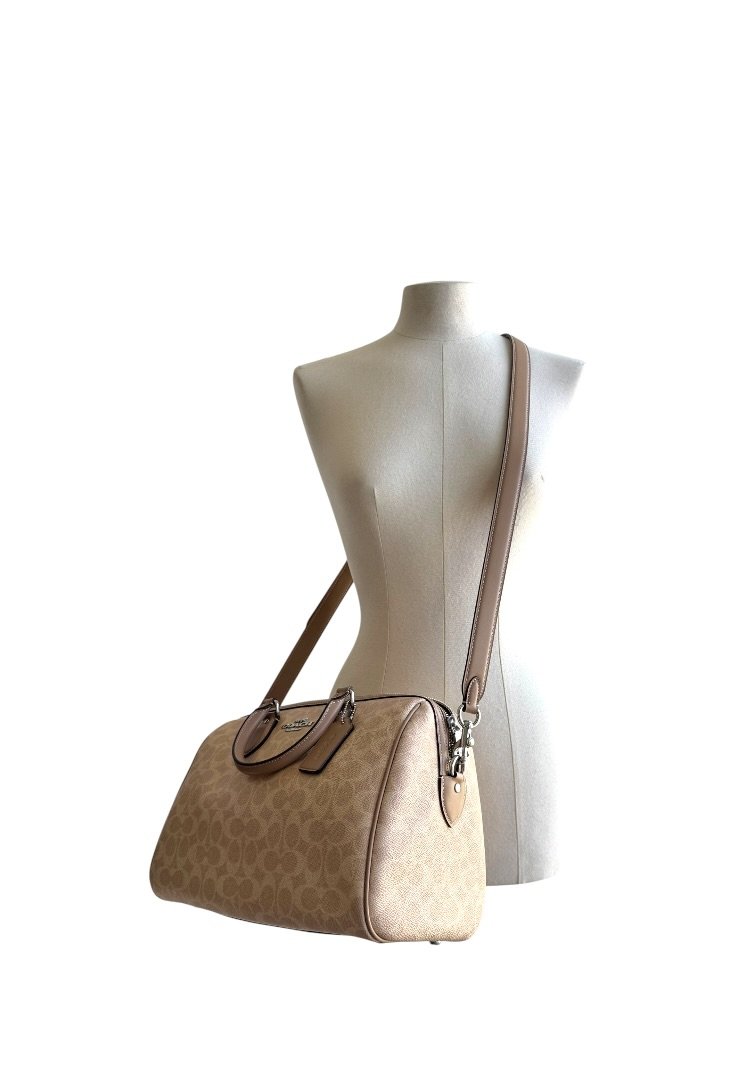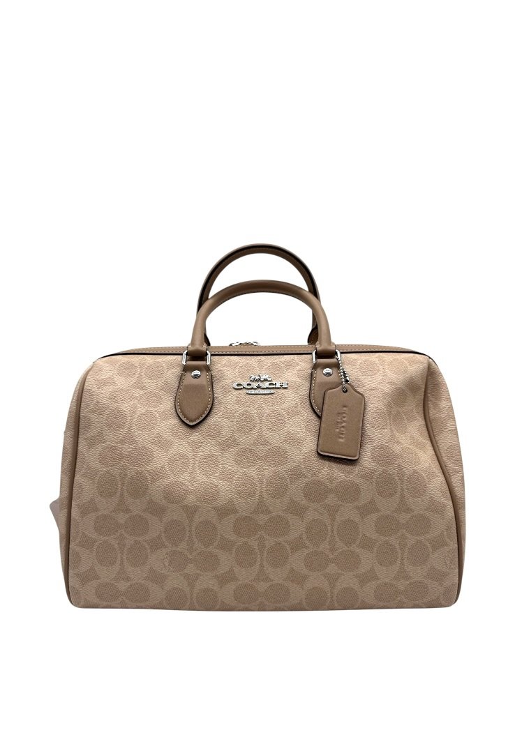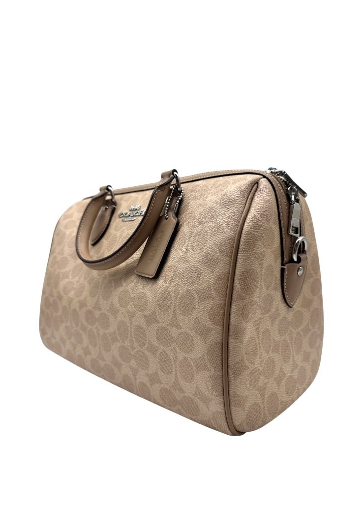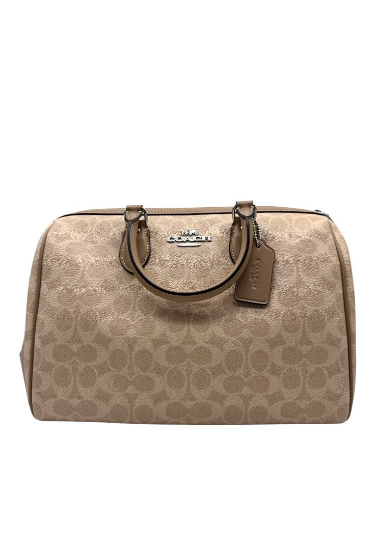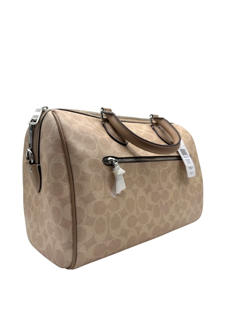 Bolsa elaborado en canvas signature con diseño monogram, herrajes en plata, ribetes en cuero, cierre principal con zipper.