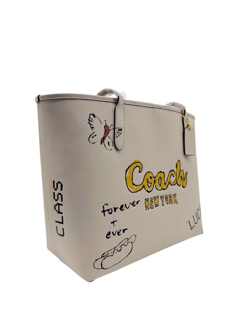 Bolsa elaborado en piel, print inspirado en NEW YORK, apliques en dorado.