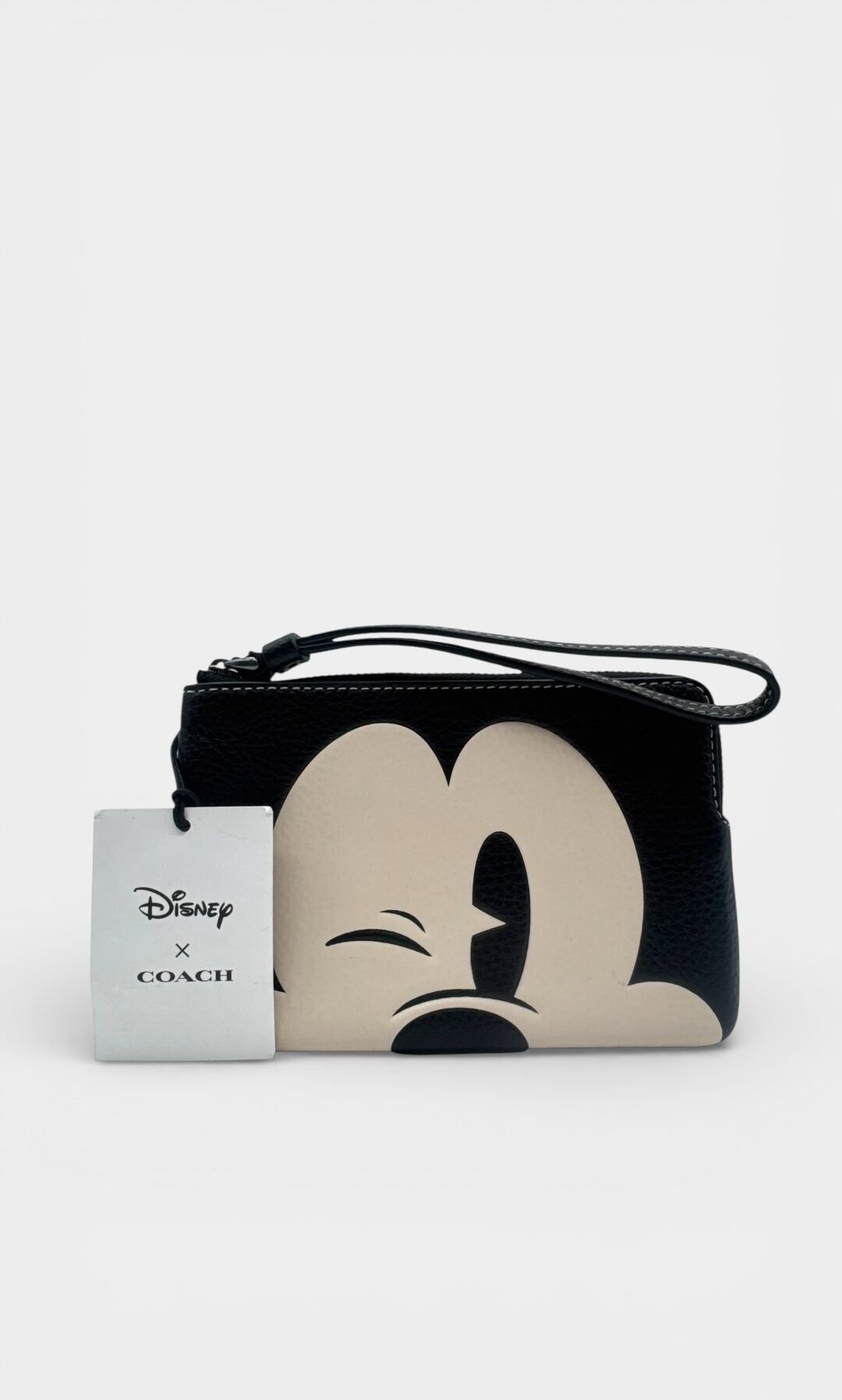 Wrislet elaborado en lona con diseño de Mickey Mouse, compartimento principal con zipper.