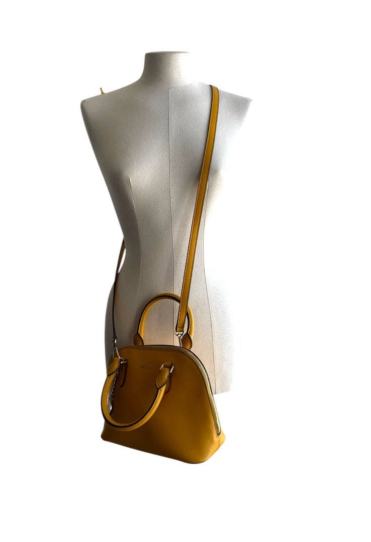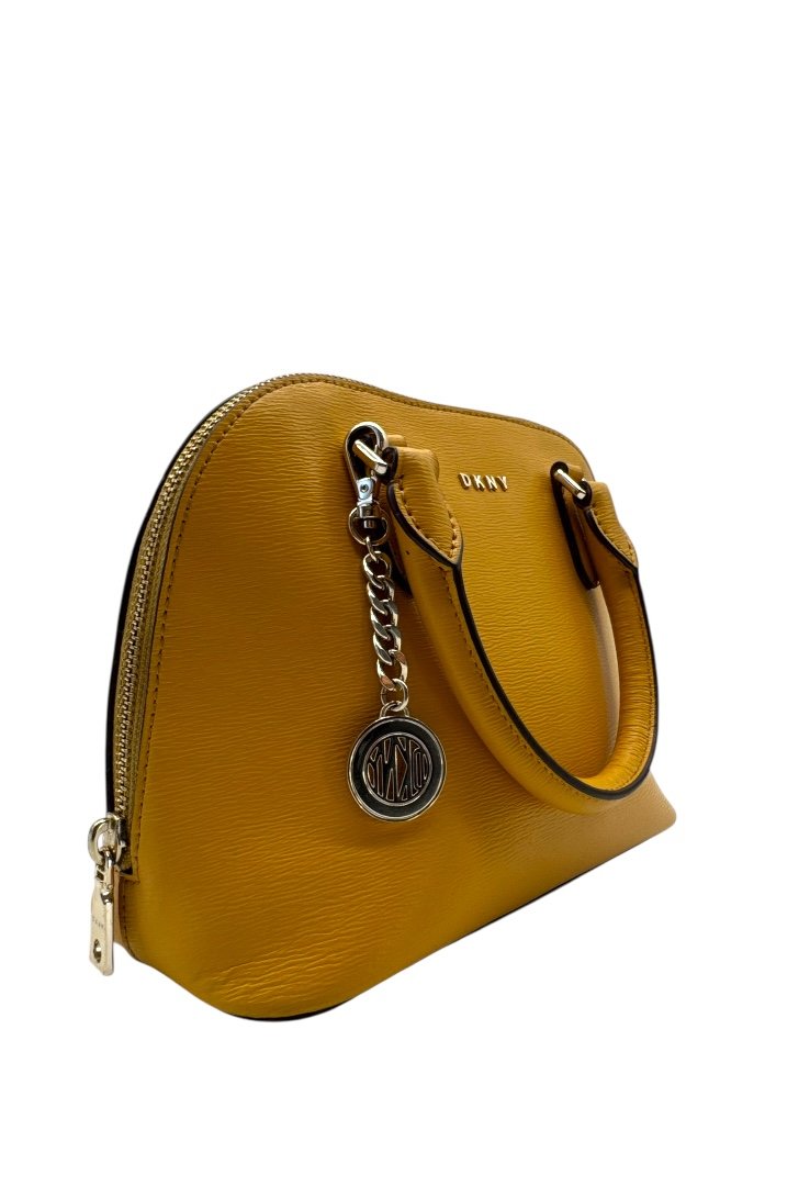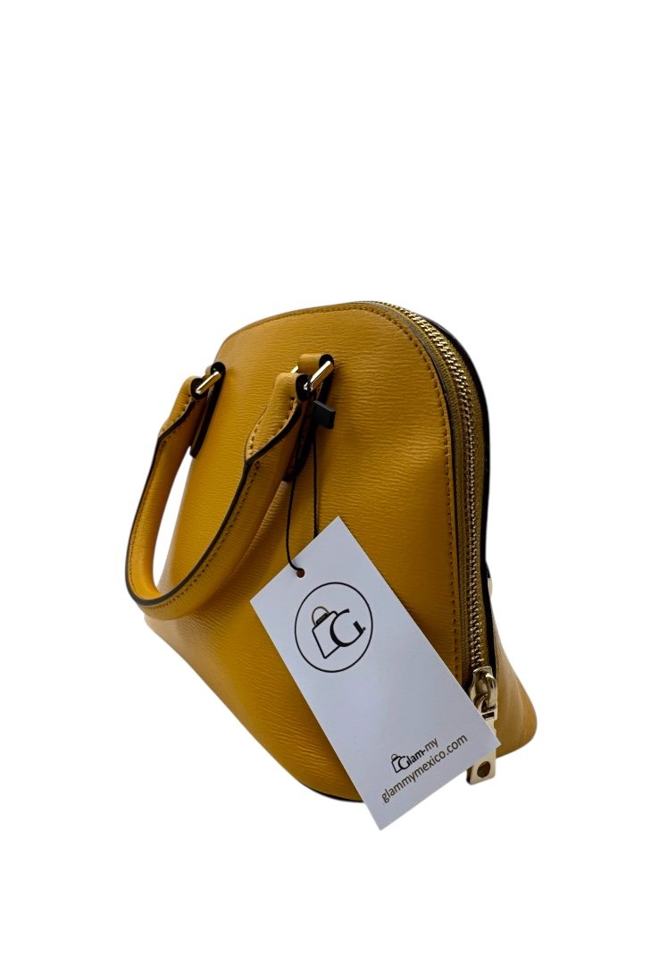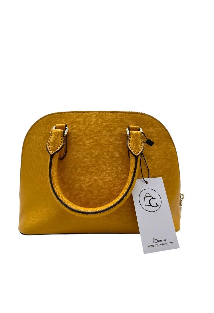 Elaborado en piel sintética texturizada, con apliques en plata, cierre principal con cremallera.