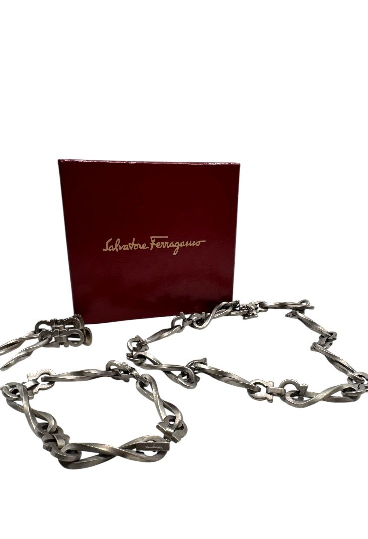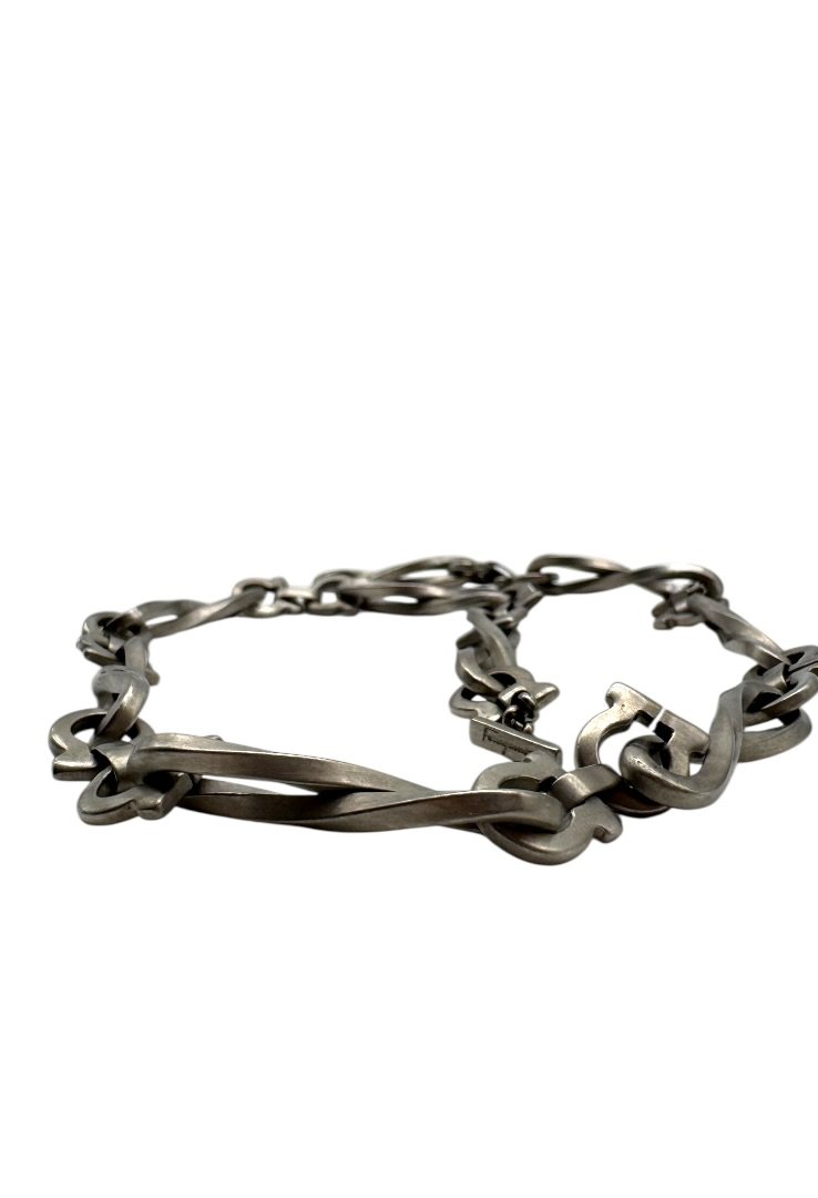 Set de pulsera, collar y aretes elaborado en acero inoxidable mate.