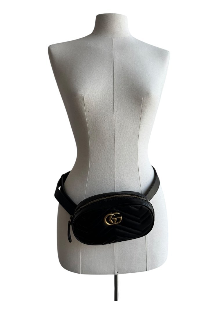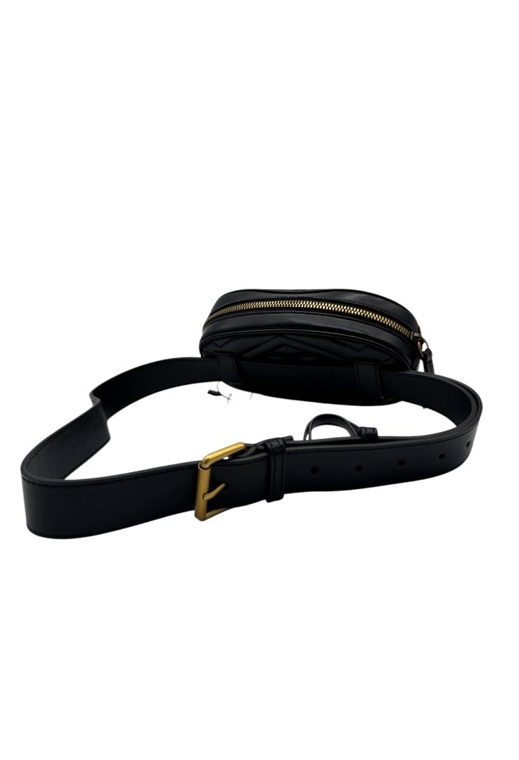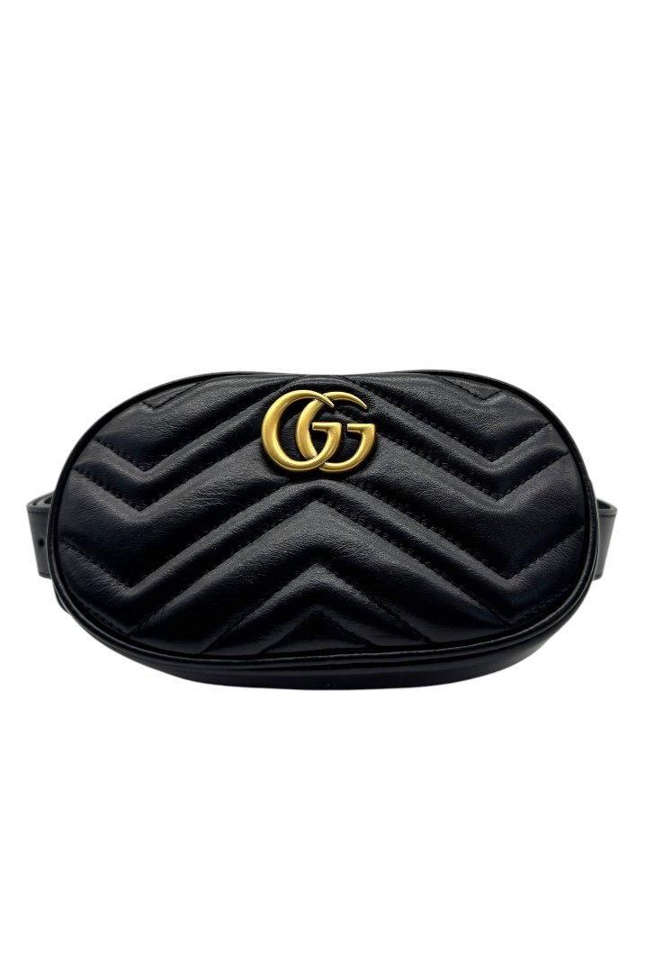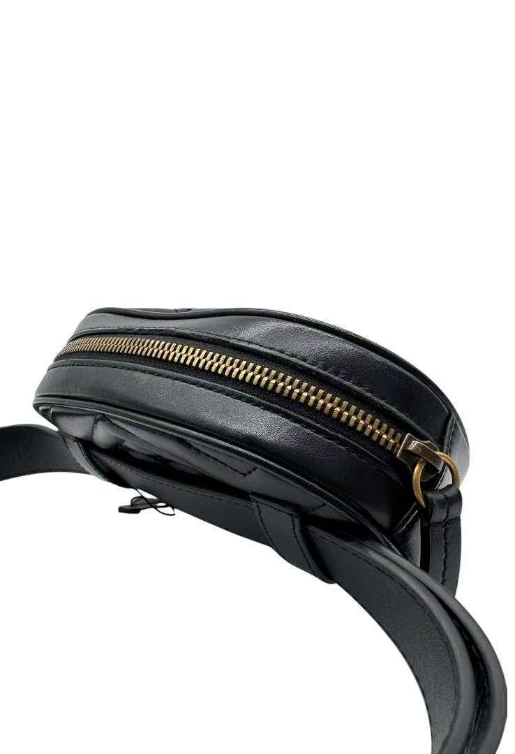 Riñonera de piel, con textura alcochanada, con herrajes en dorado.
