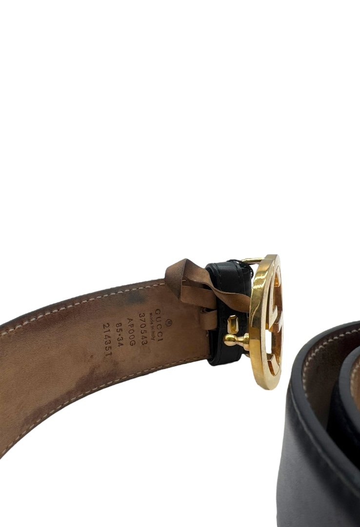 Cinturón elaborado en piel, con hebilla GG en dorado.