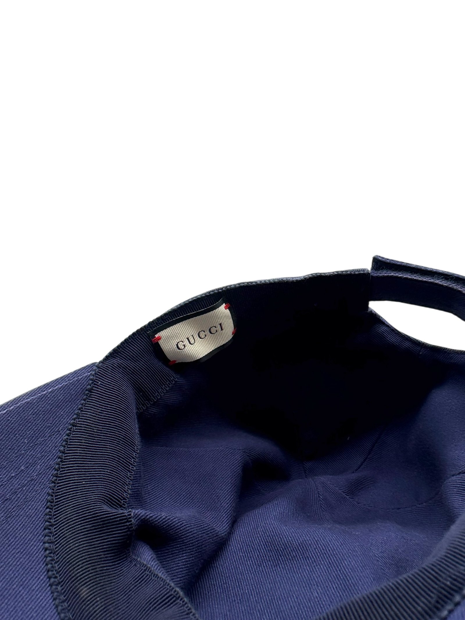 Gorra elaborada en algodón, “GUCCI” y “LOVED” boradadas.