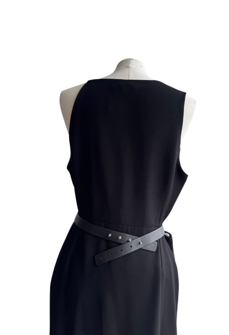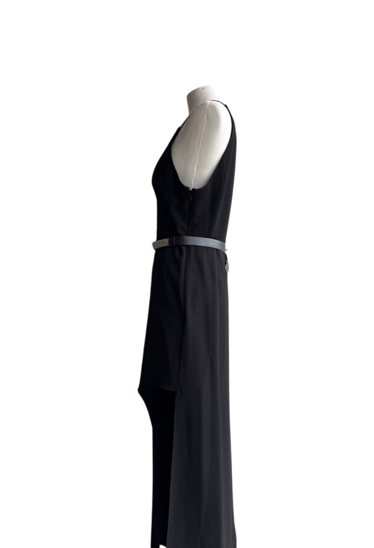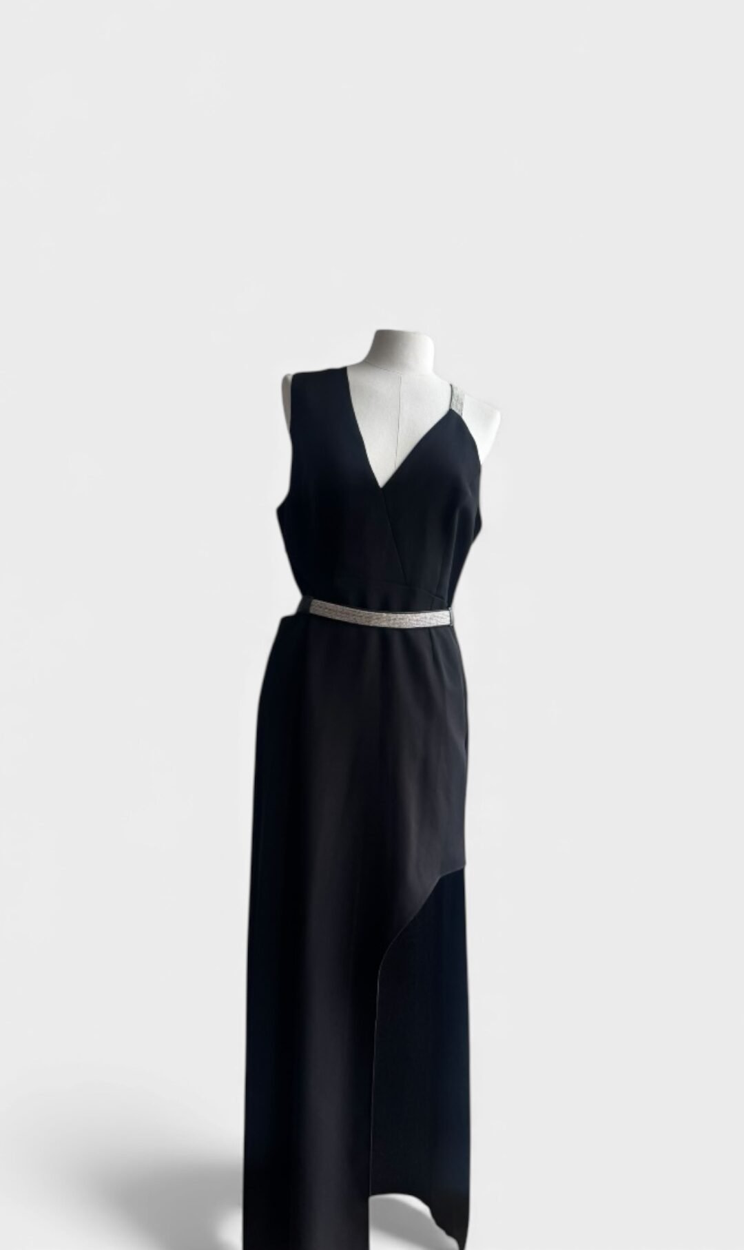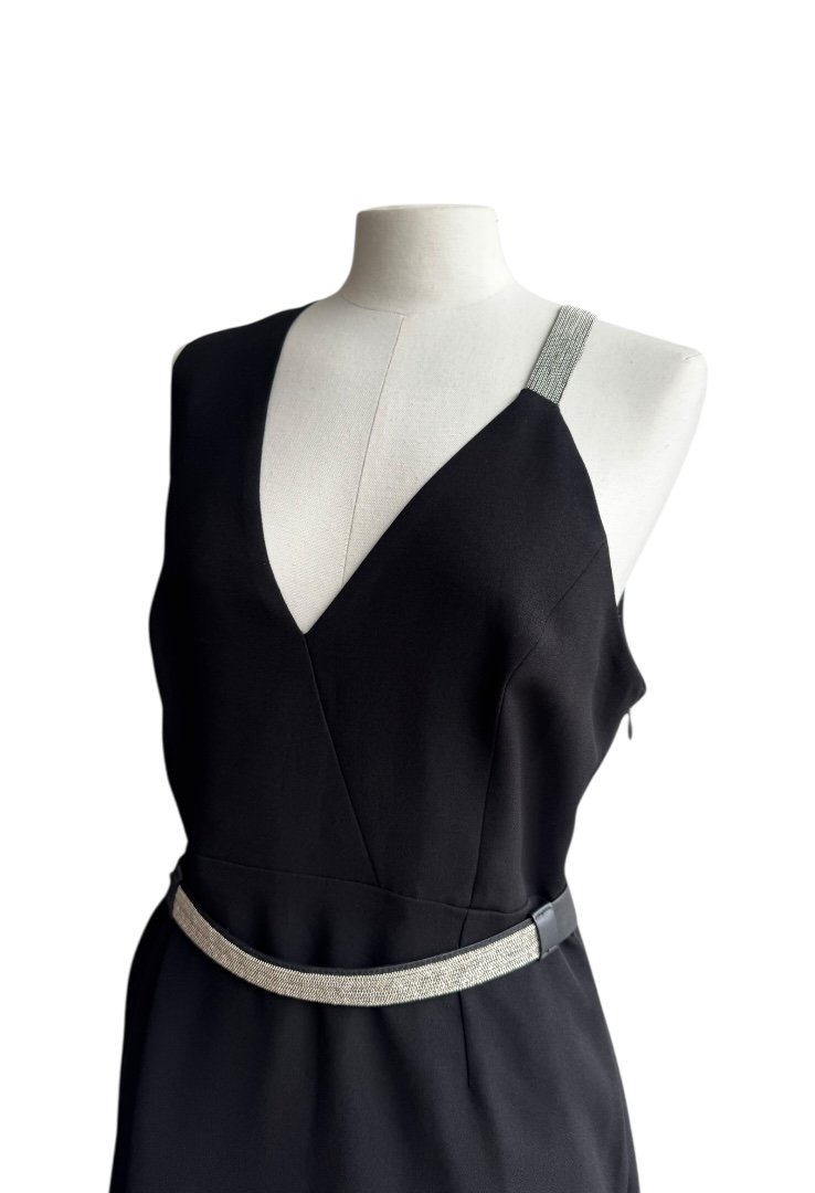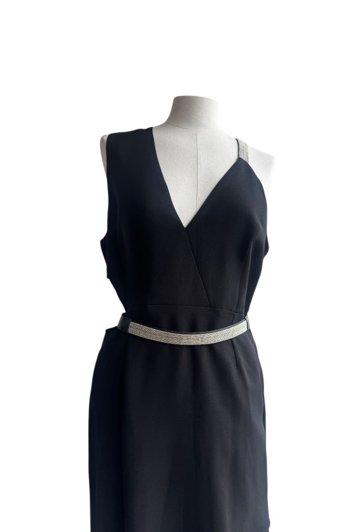 Confeccionado en poliester, sin mangas, escate en V, tietante de cadena multiple y cinturon.