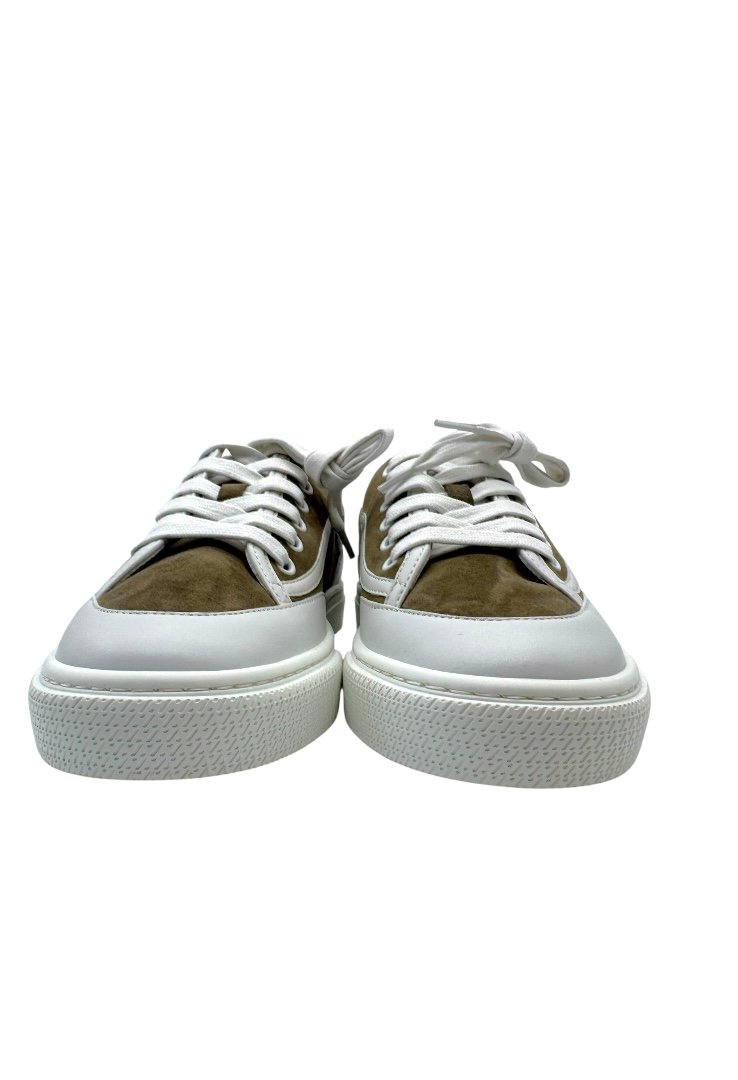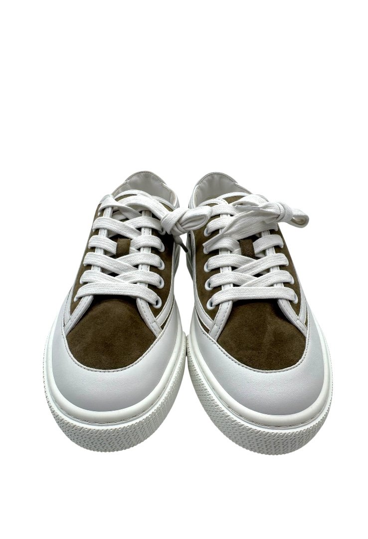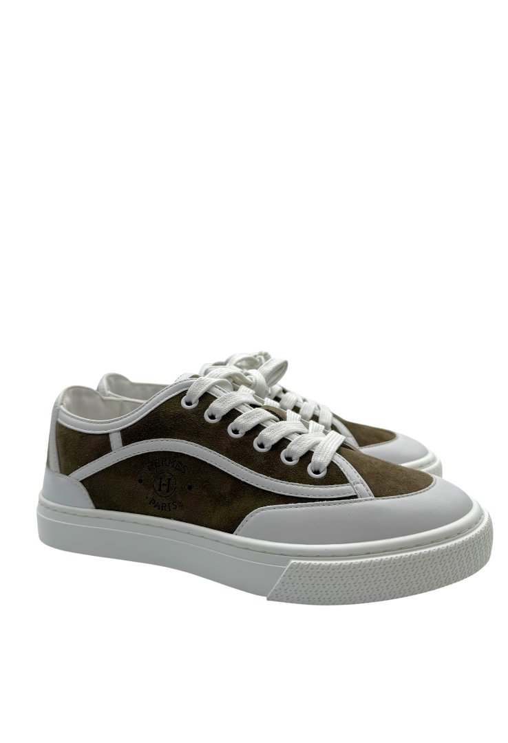 Sneakers elaborados en piel y tela de algodón, laterales con estampado de “Hermes Paris”.