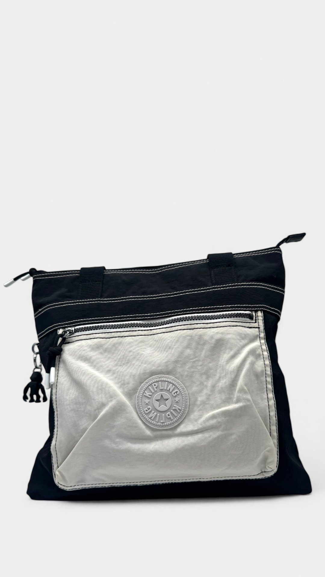 Bolso fabricado en nylon, compartimento externo con cremallera, compartimento principal con cremallera, incluye el charm del changuito.