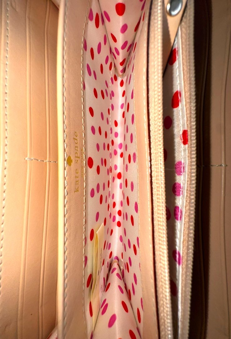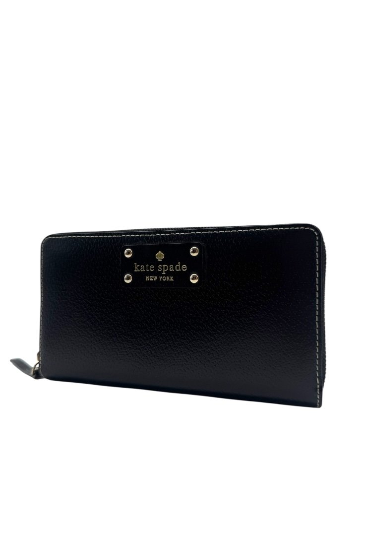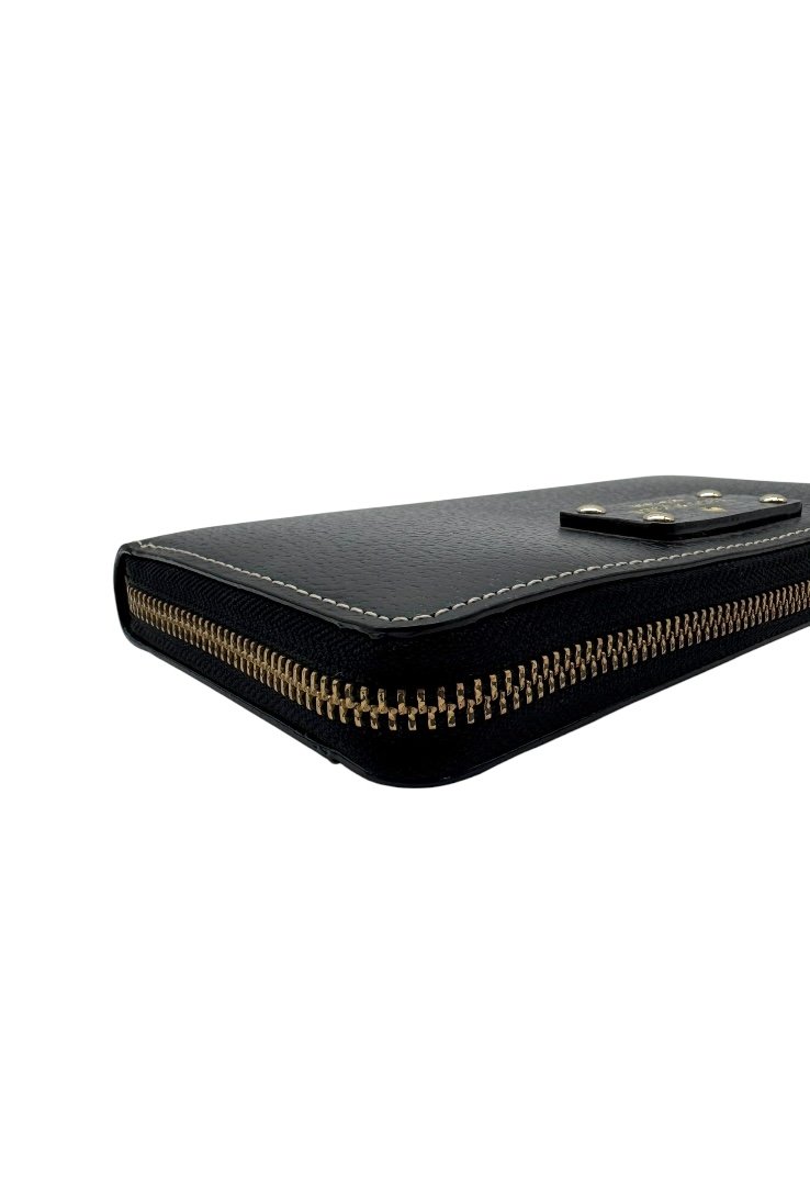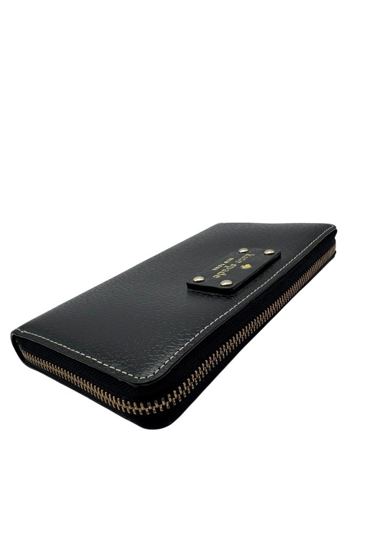 Cartera elaborada cuero granulado, aplique en dorado, cierre principal de cremallera.