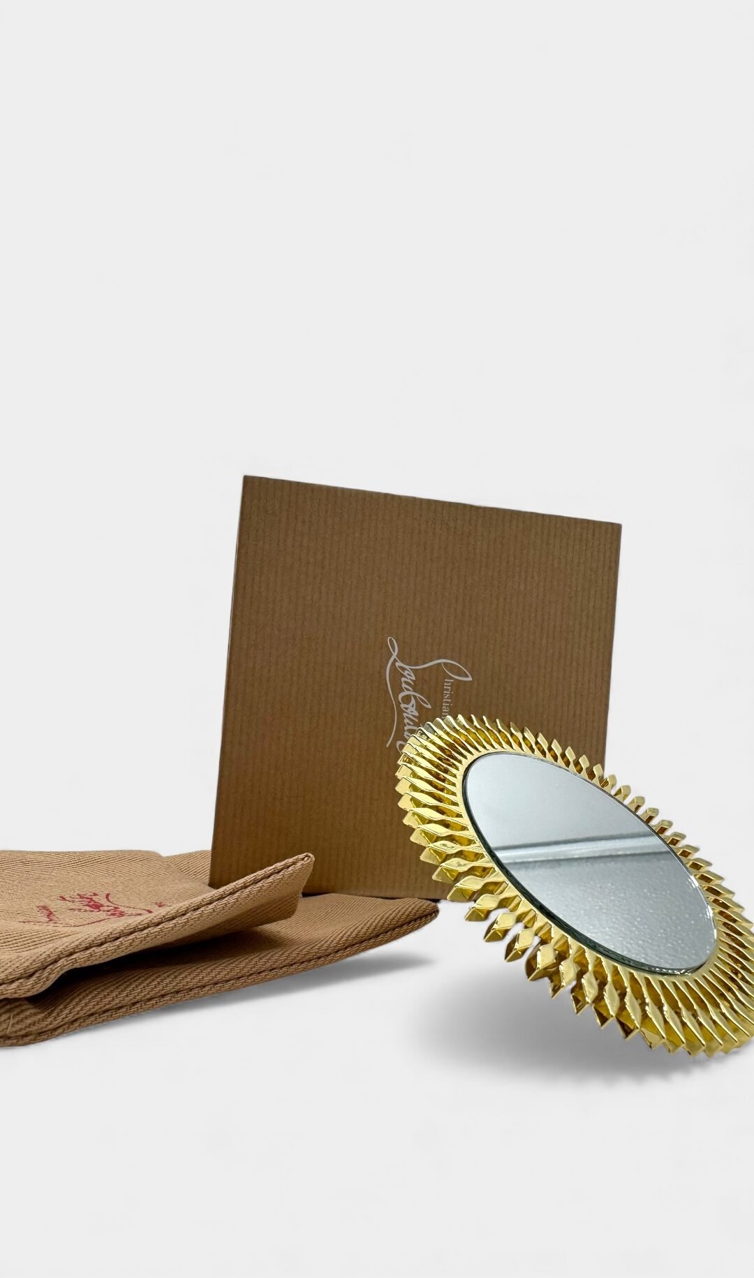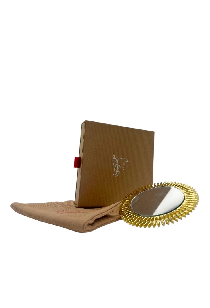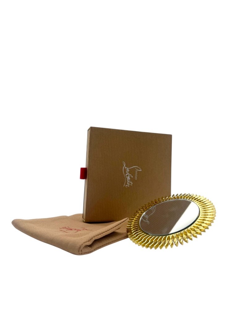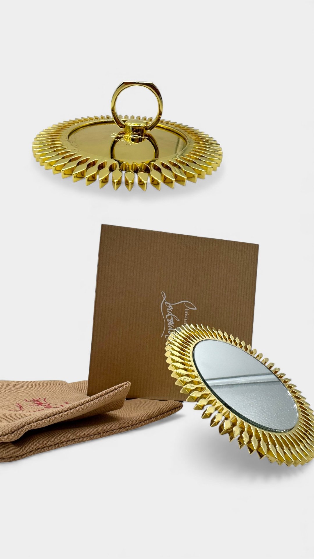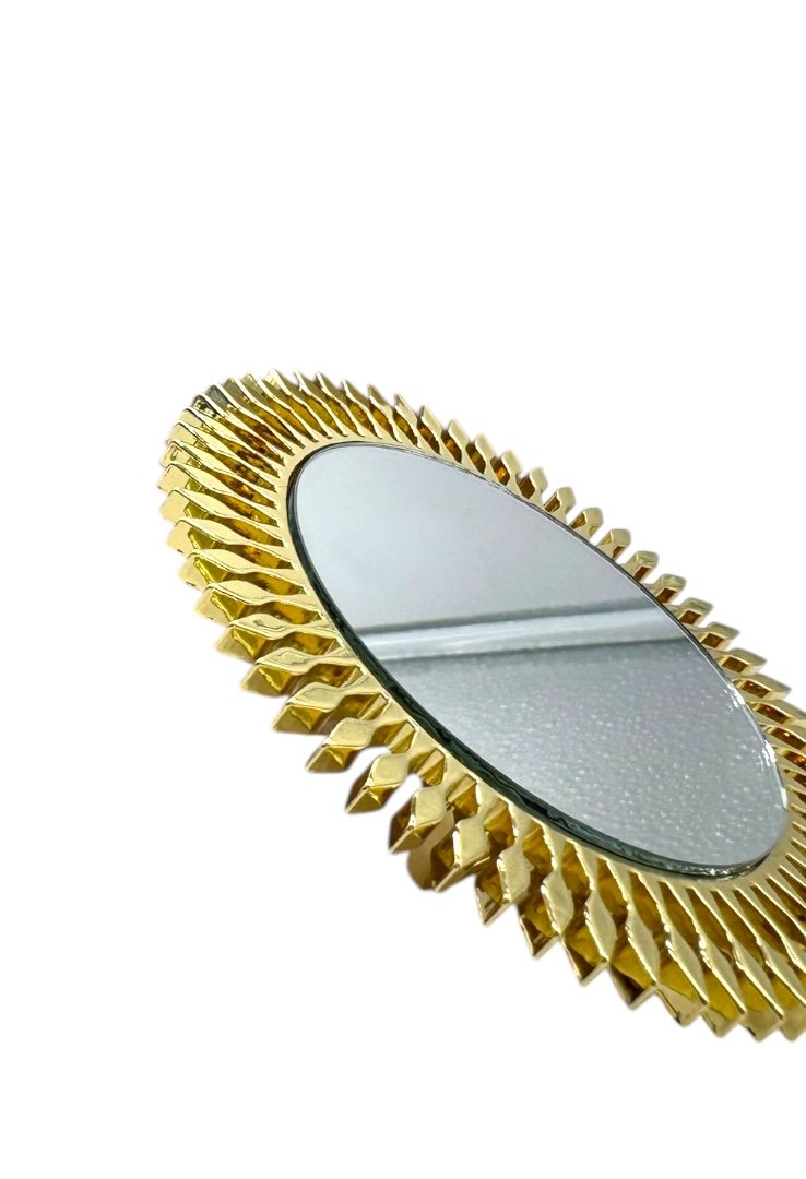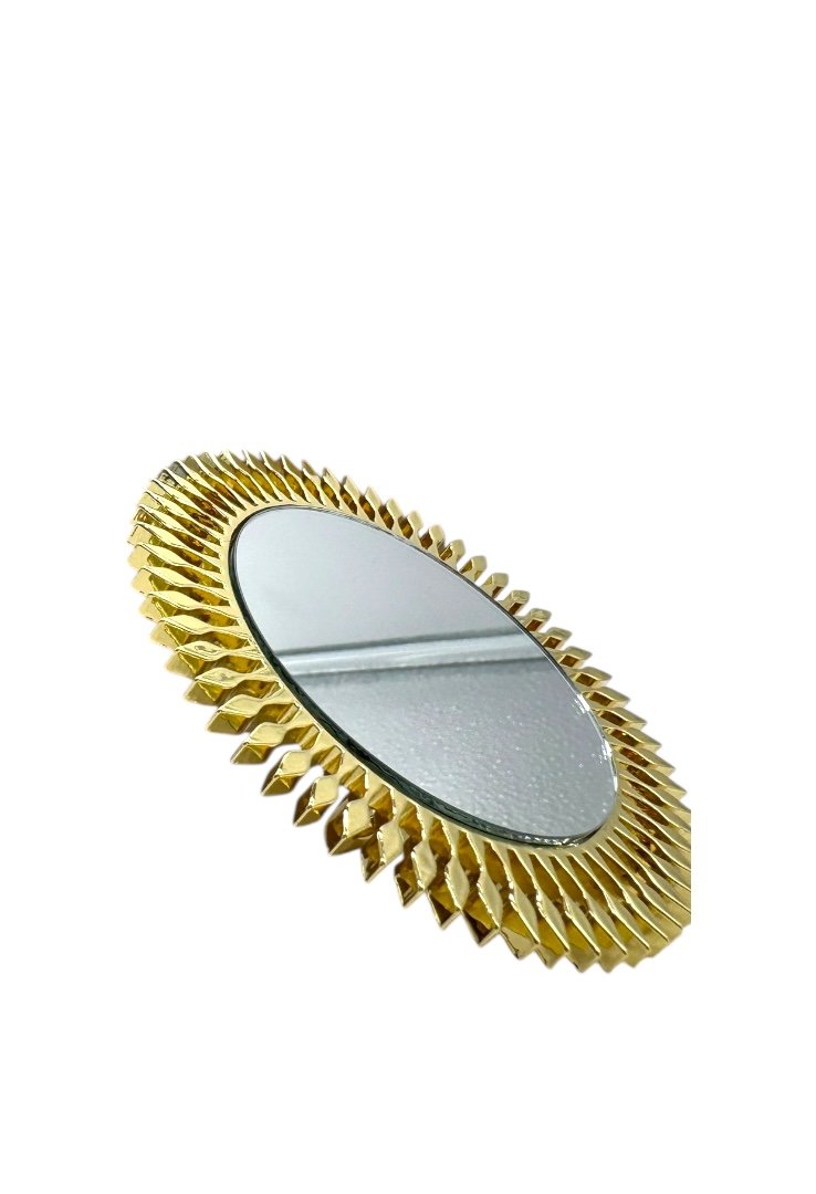 Espejo chico con diseño inspirado en los rayos del sol, cuenta con sujetador en la parte posterior.