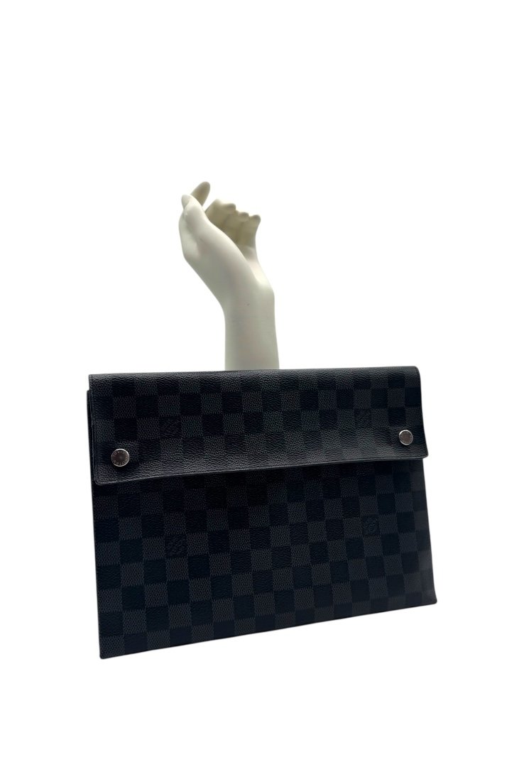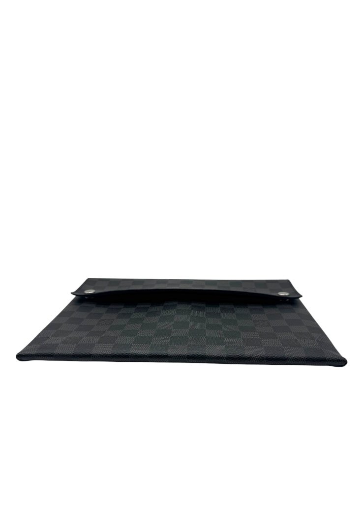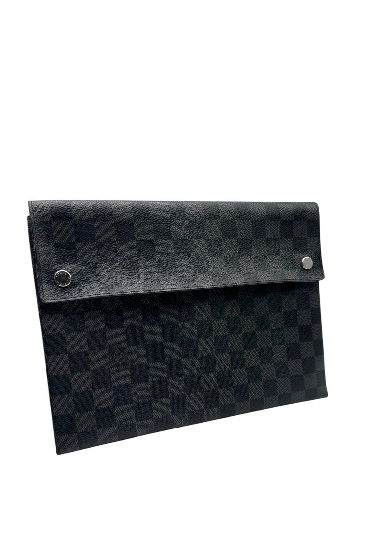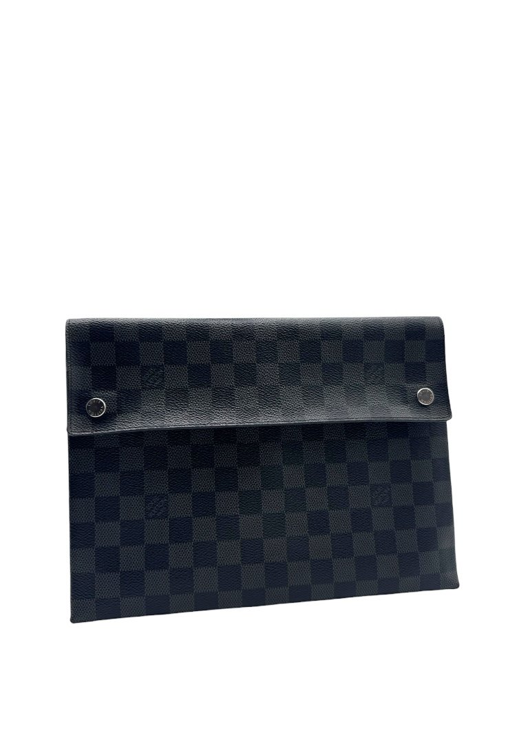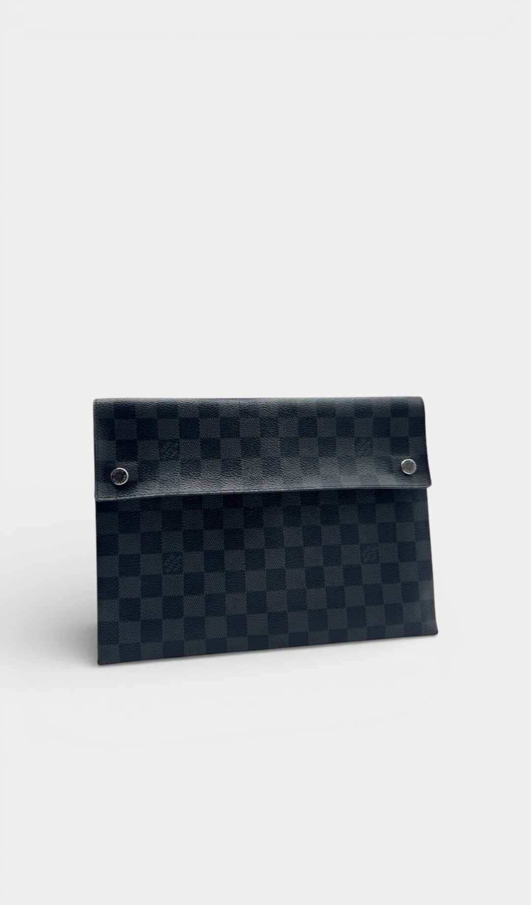 Pochette elaborado lona damier con cierre en solapa y botones a presión.