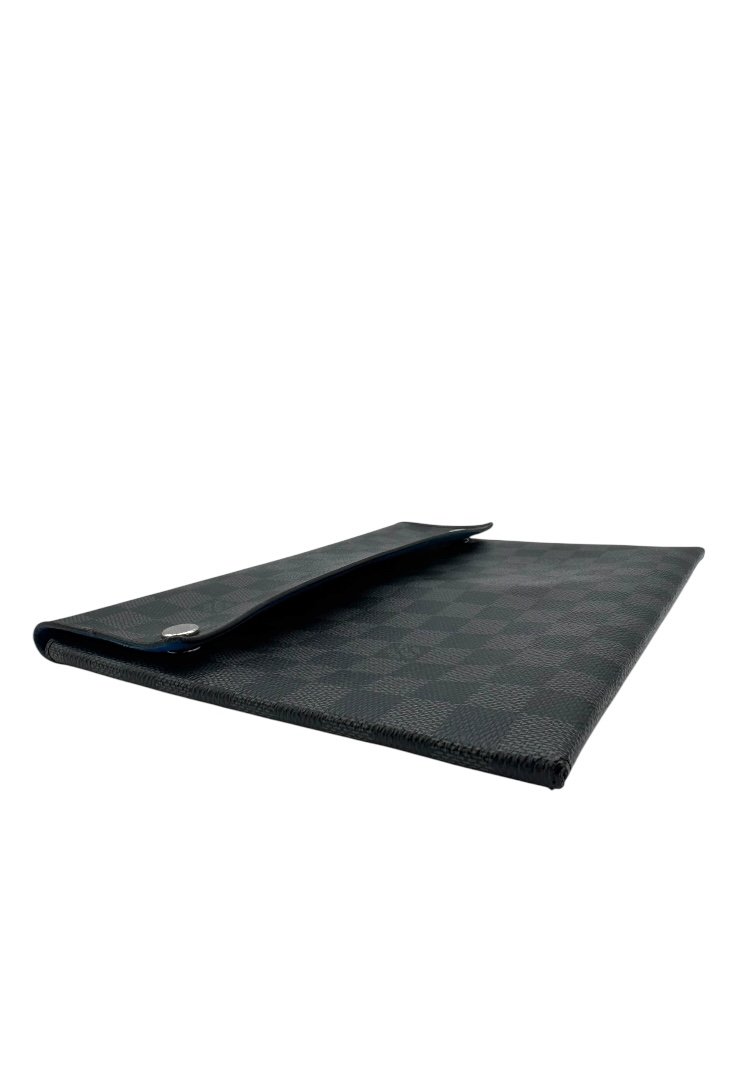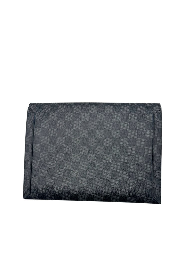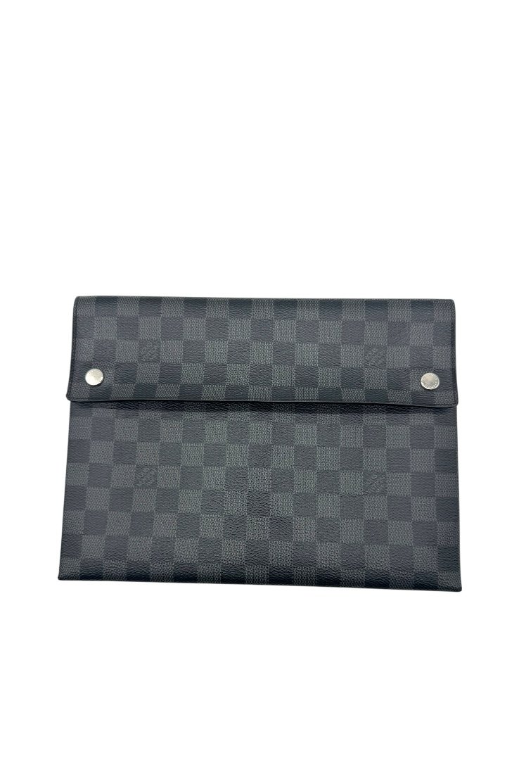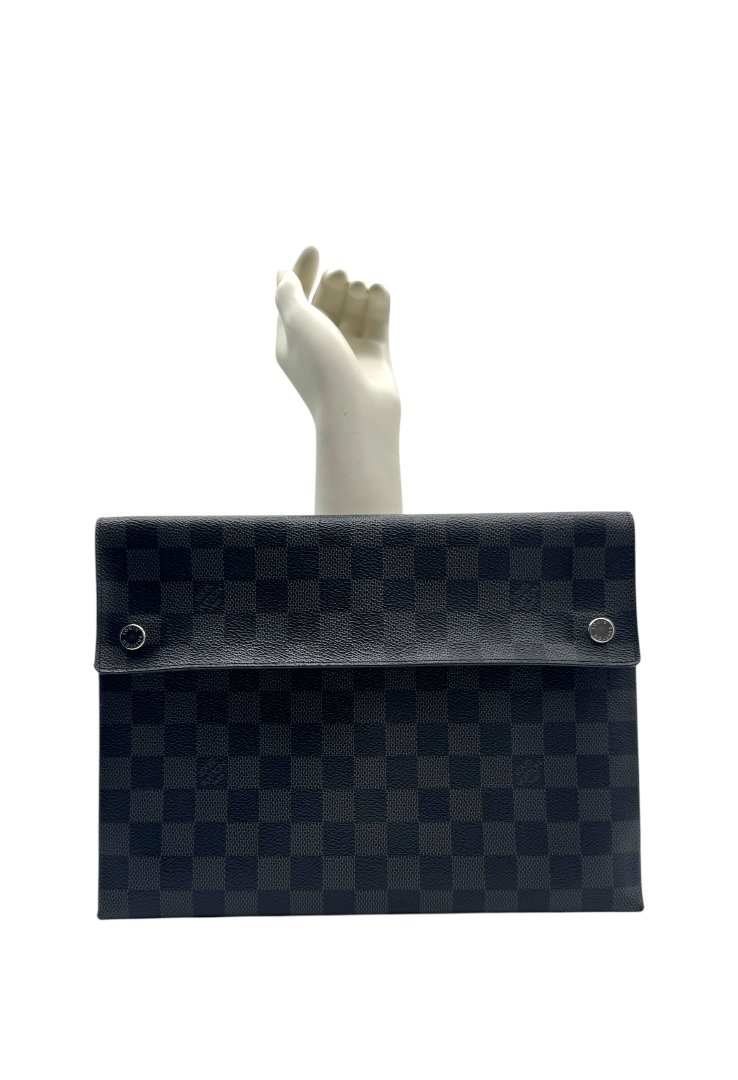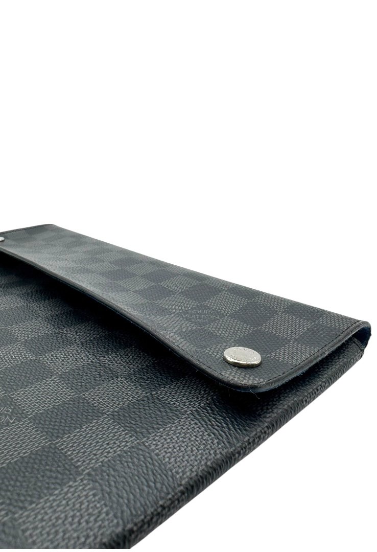 Pochette elaborado lona damier con cierre en solapa y botones a presión.