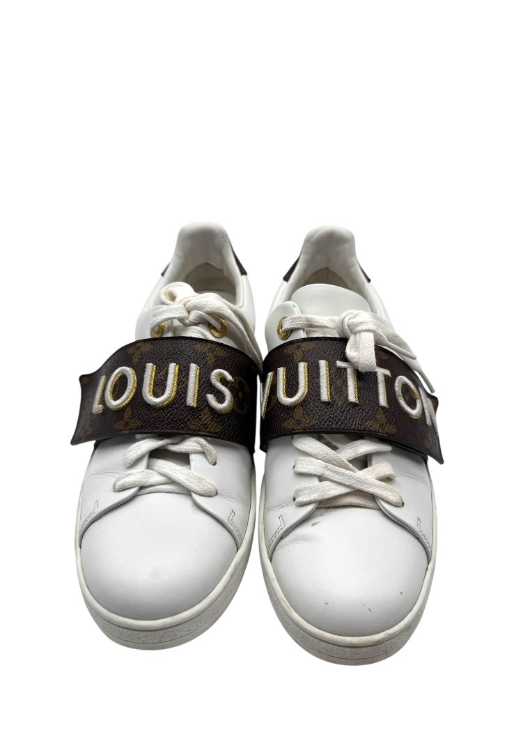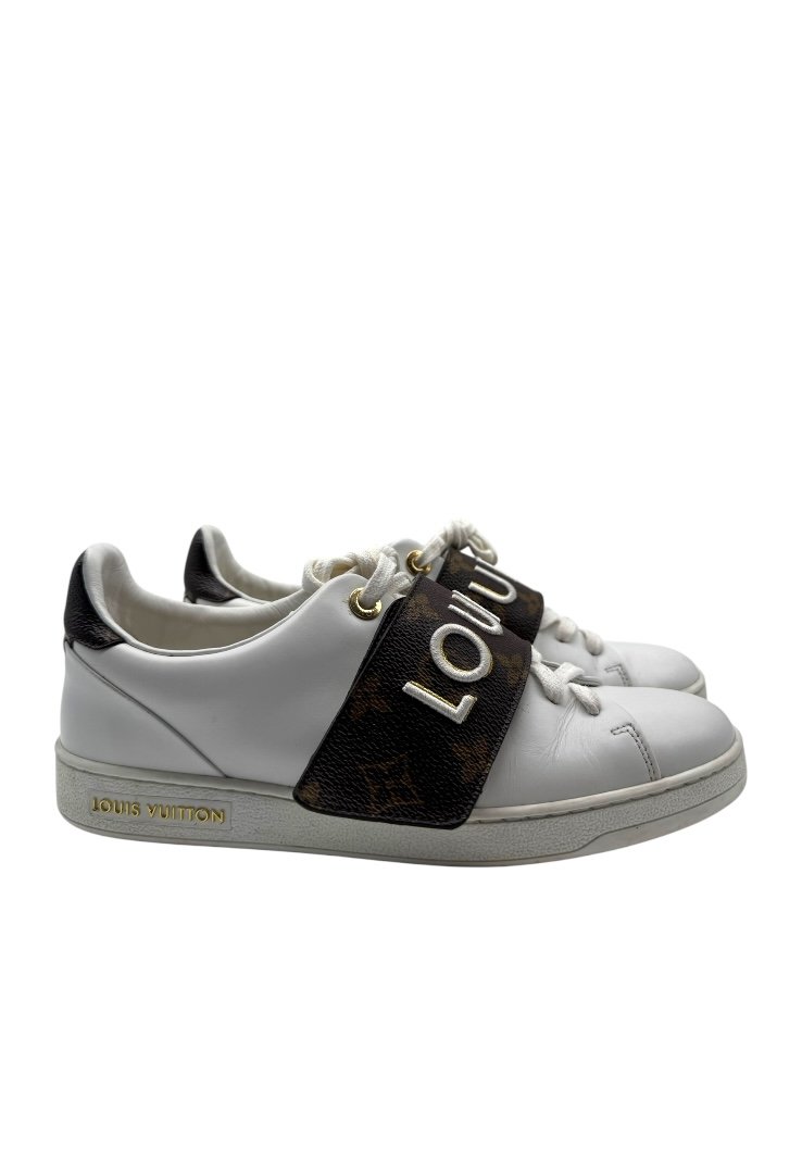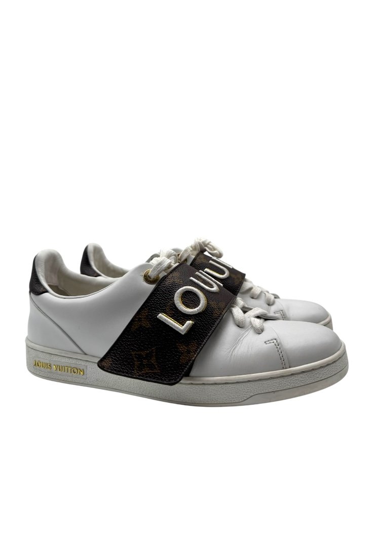 Sneakers elaborados en piel, asa con velcro en diseño monogram con el nombre de la marca, detalles en metal dorado.