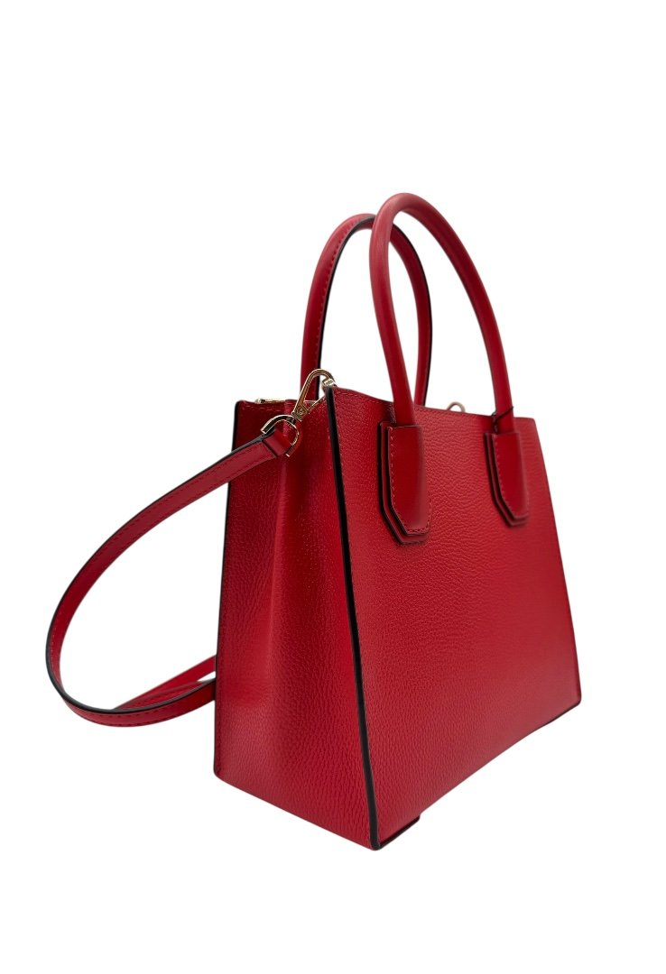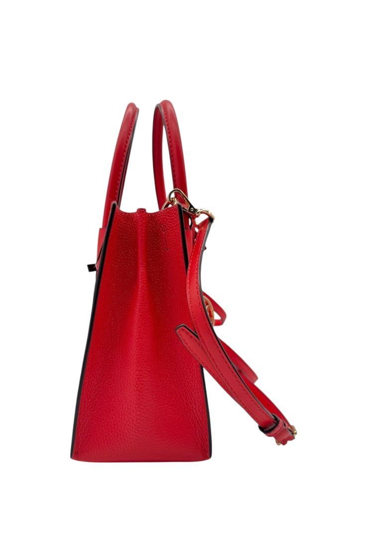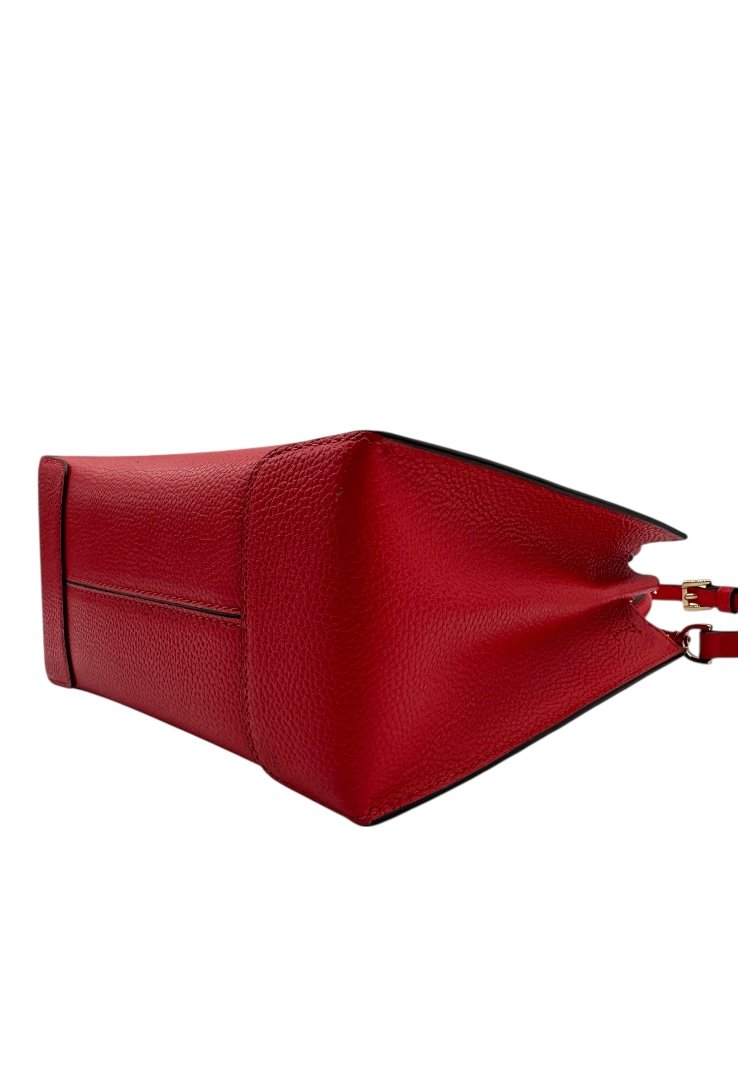 Bolsa elaborada en piel granulada, apliques en dorado, compartimento con cremallera.