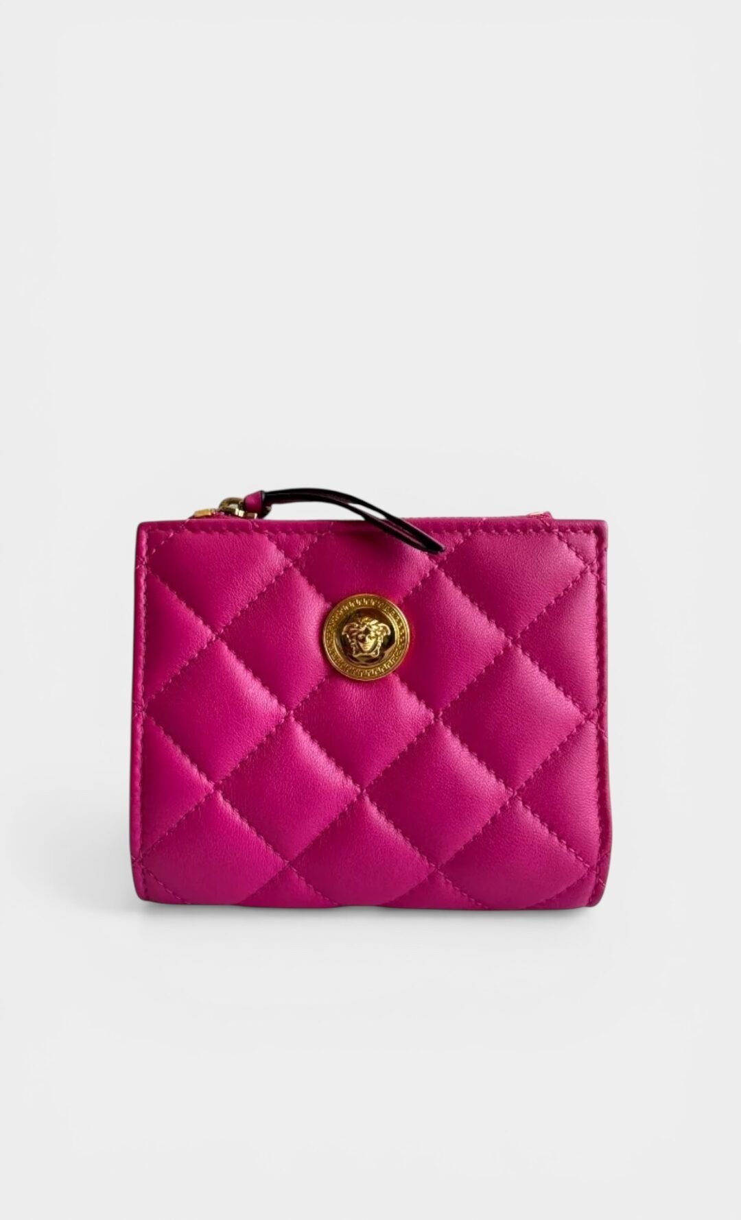 Elaborada en piel de becerro, cierre de botón a presión , compartimento para billetes y tarjetas, cierre con cremallera pequeño.