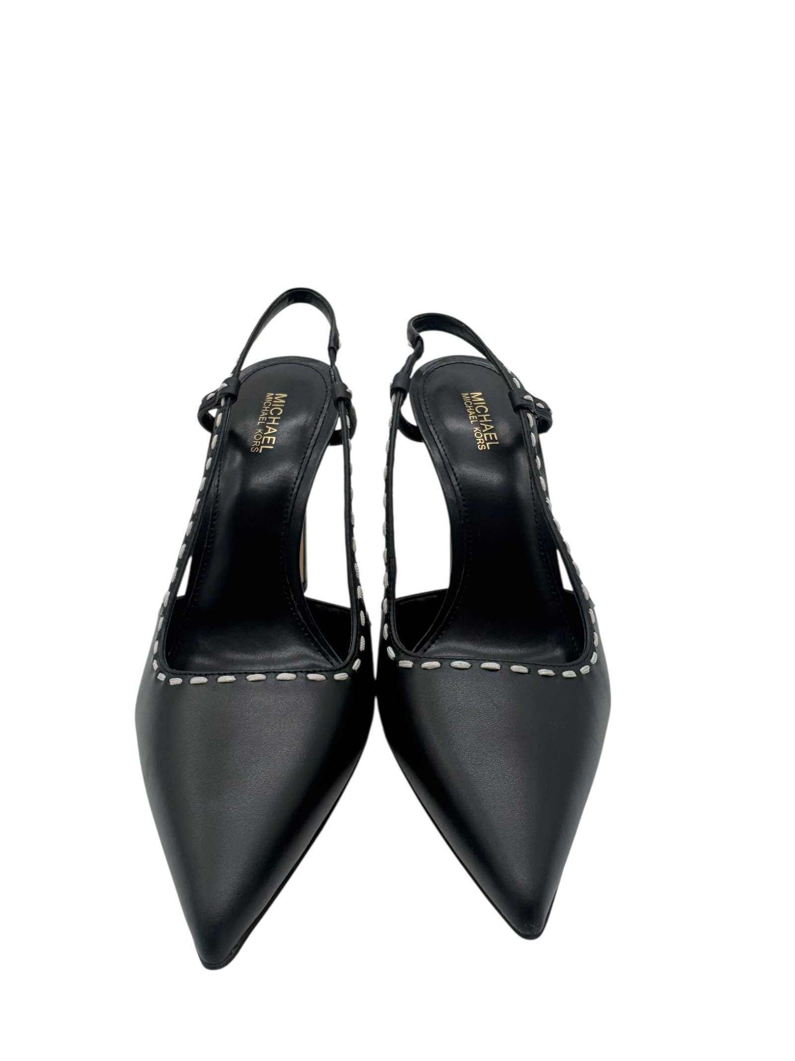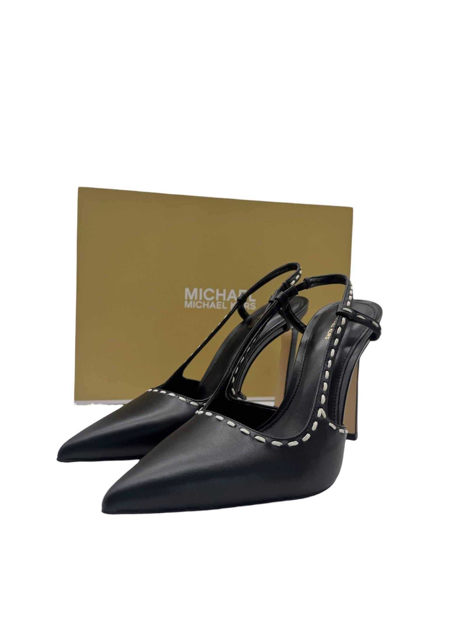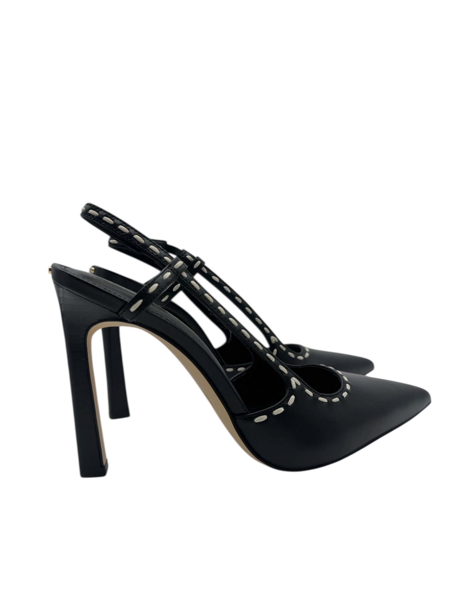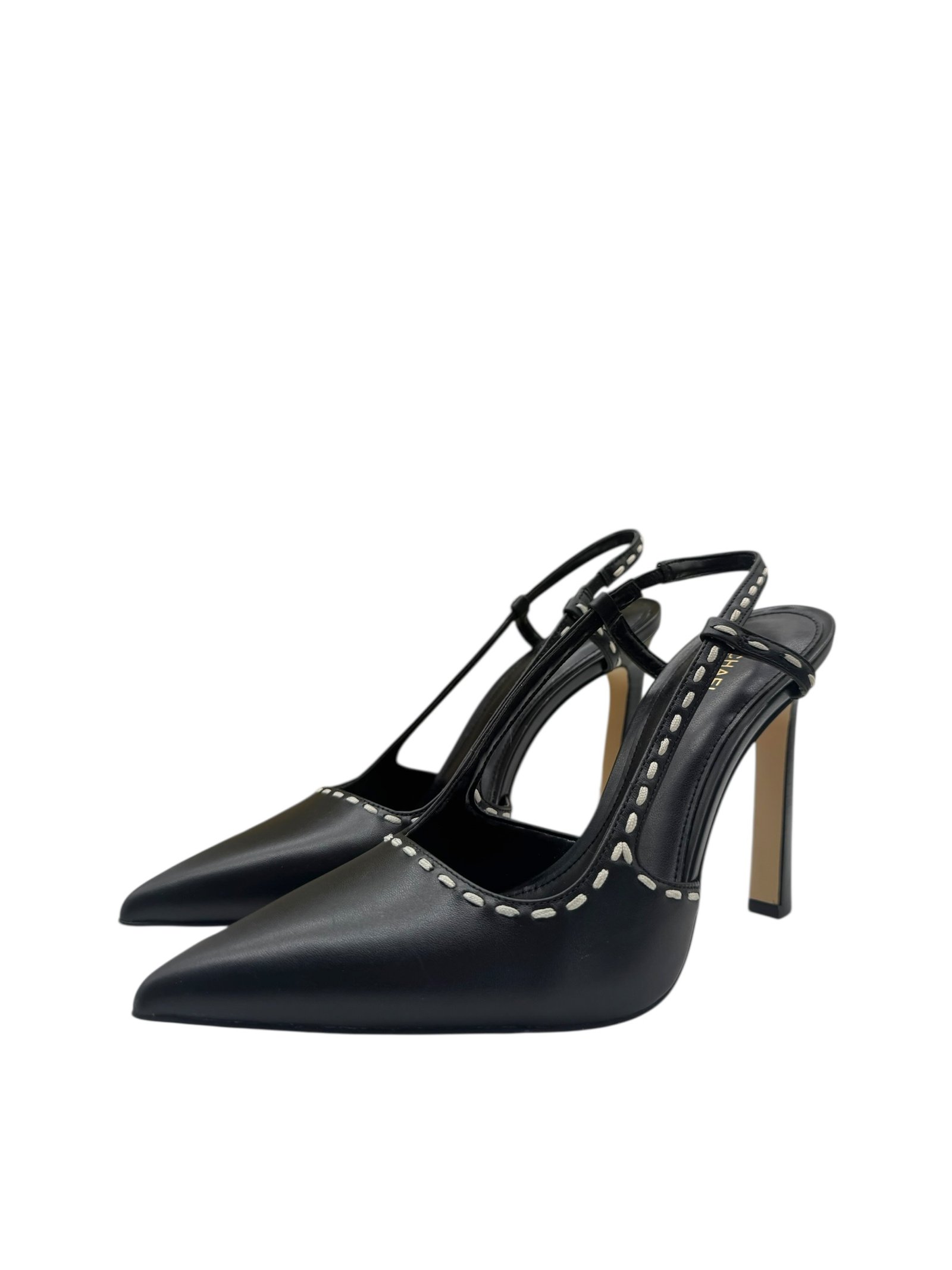 Tacones en punta con costuras en contraste elaborado en piel.