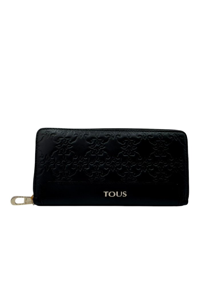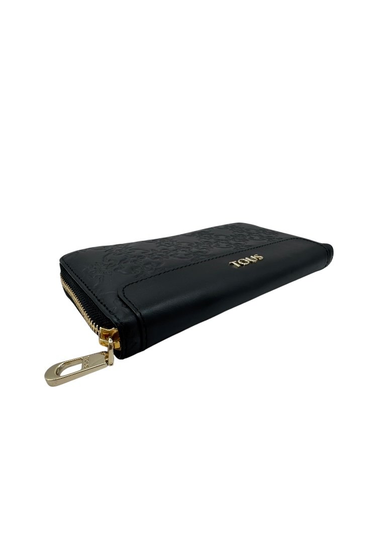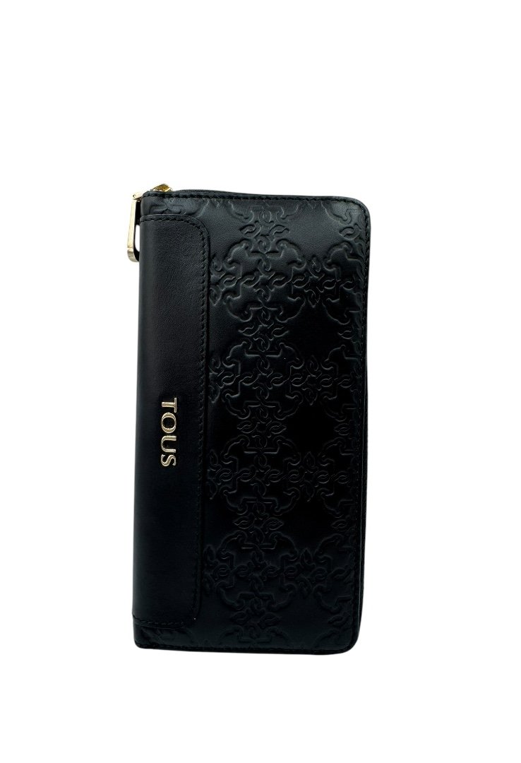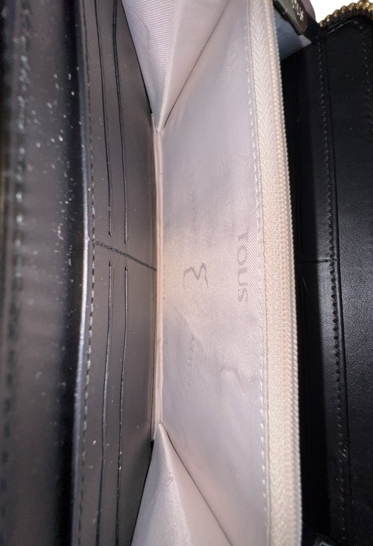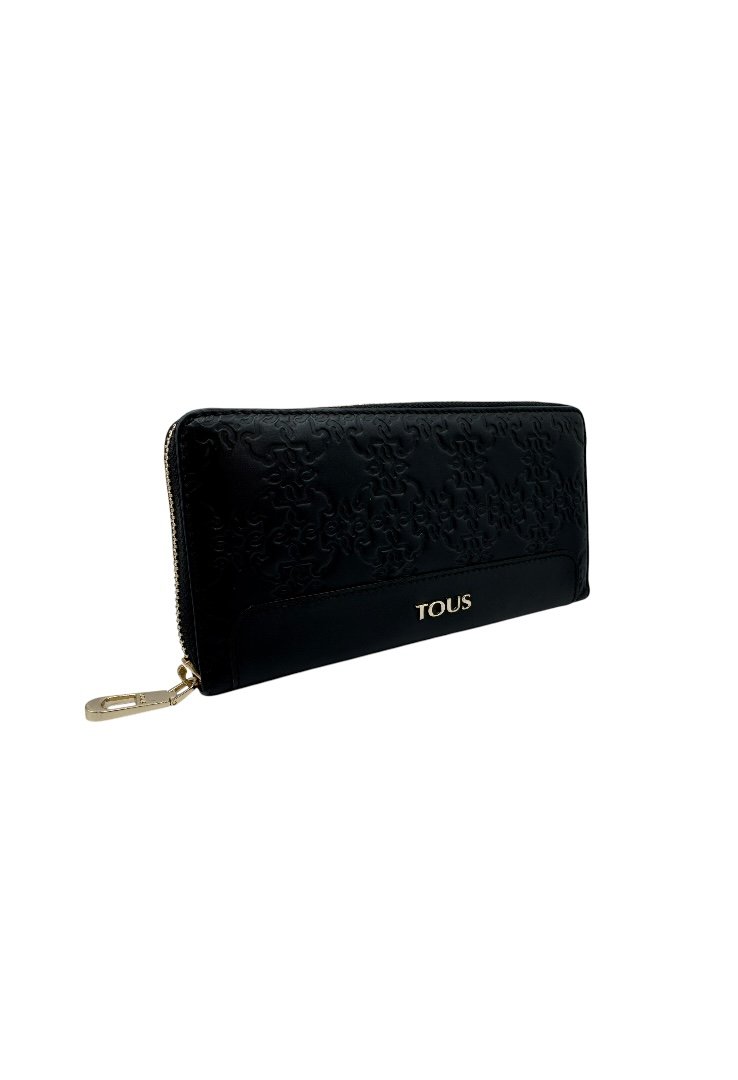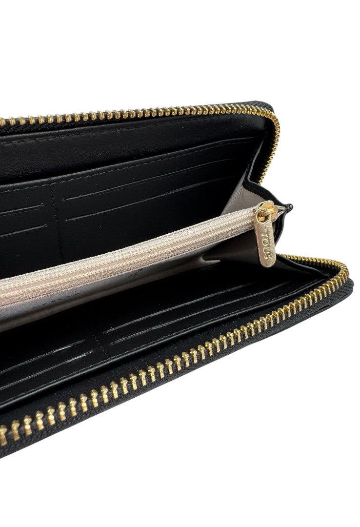 Elaborada en piel, grabado de osos, cierre con cremallera en parte superior y letras de la marca en color dorado.