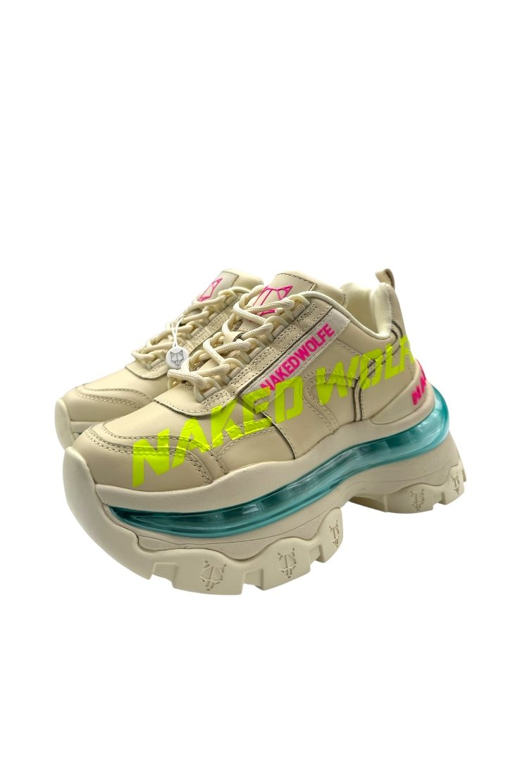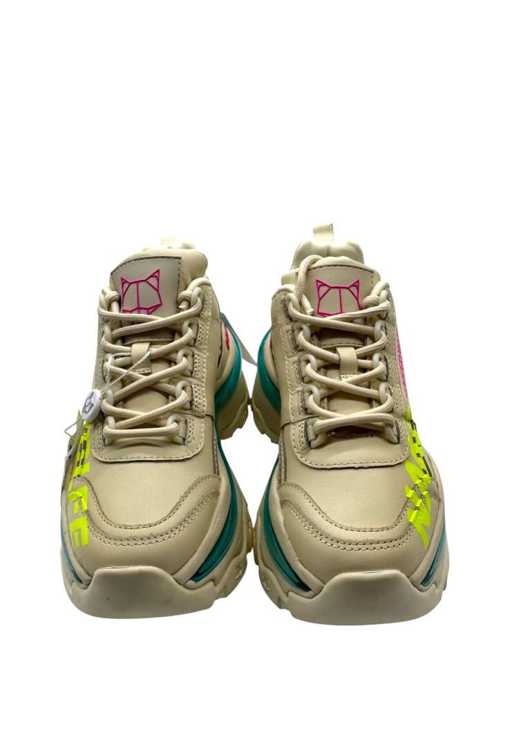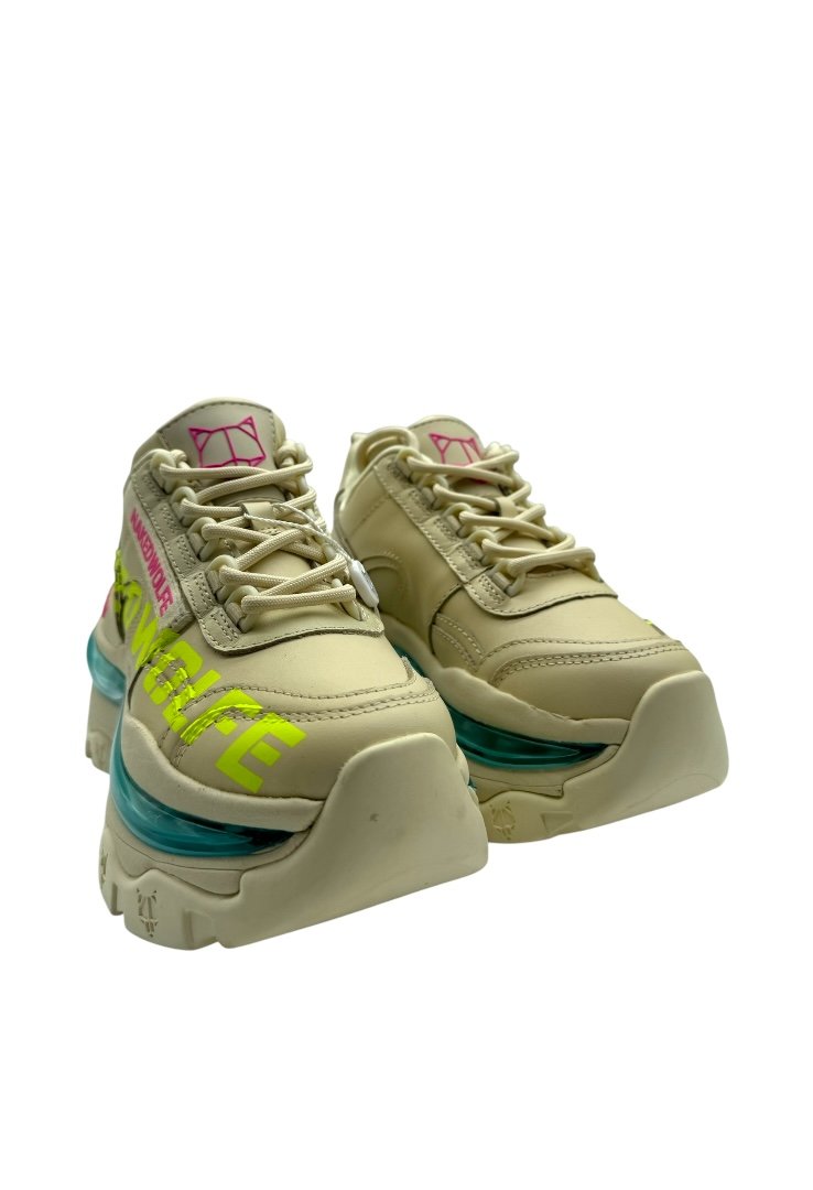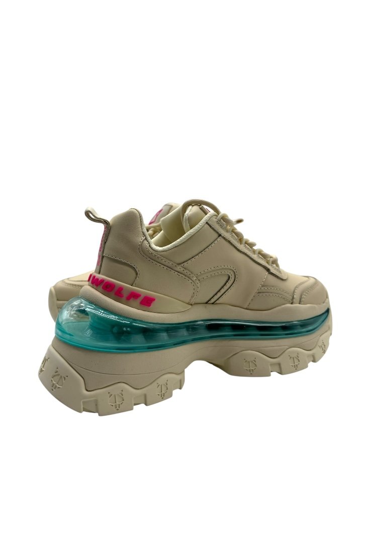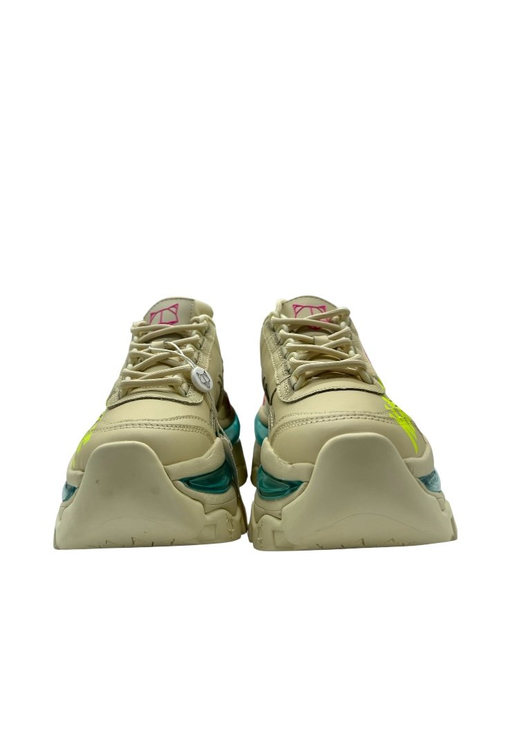Trainers hechos de piel, con cierre de agujetas, suela de goma, suela exterior grabada con láser y bolsillo de burbuja.