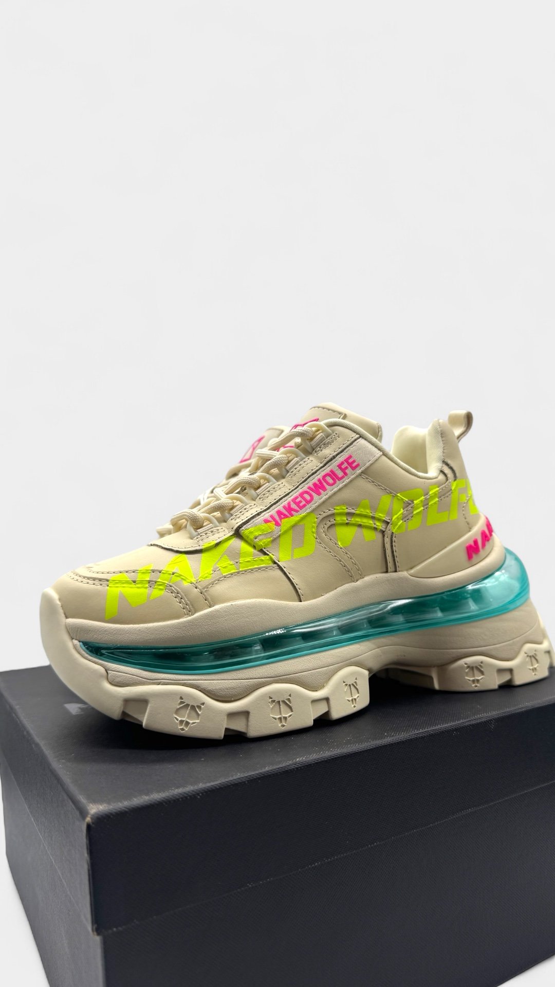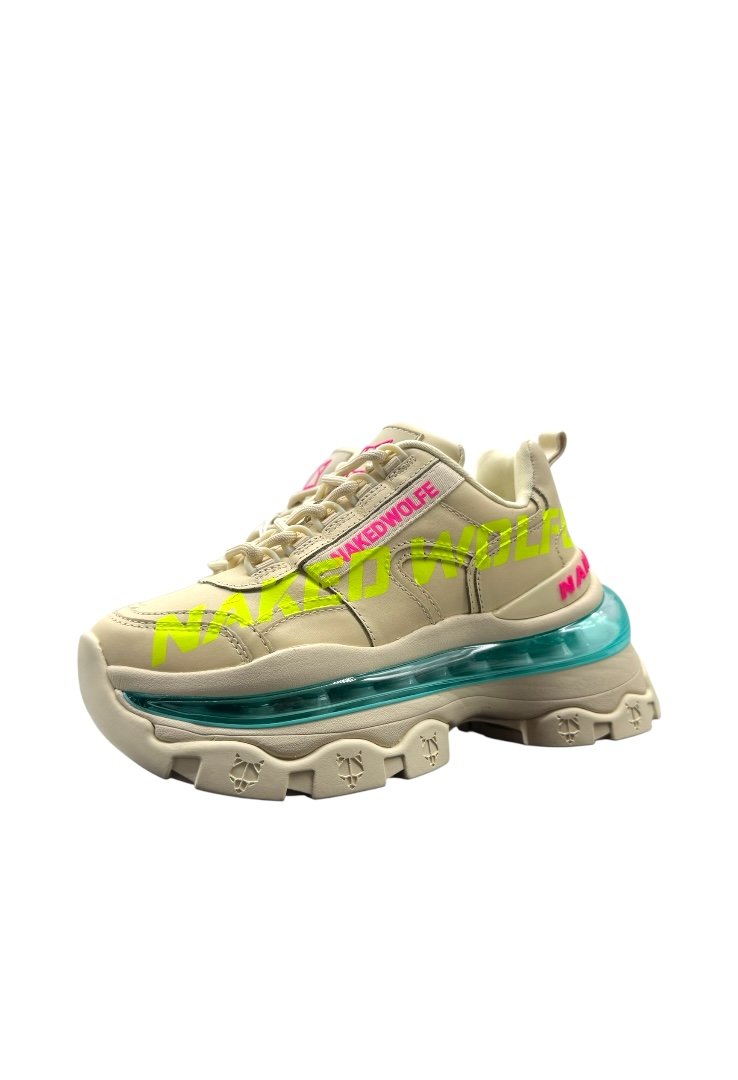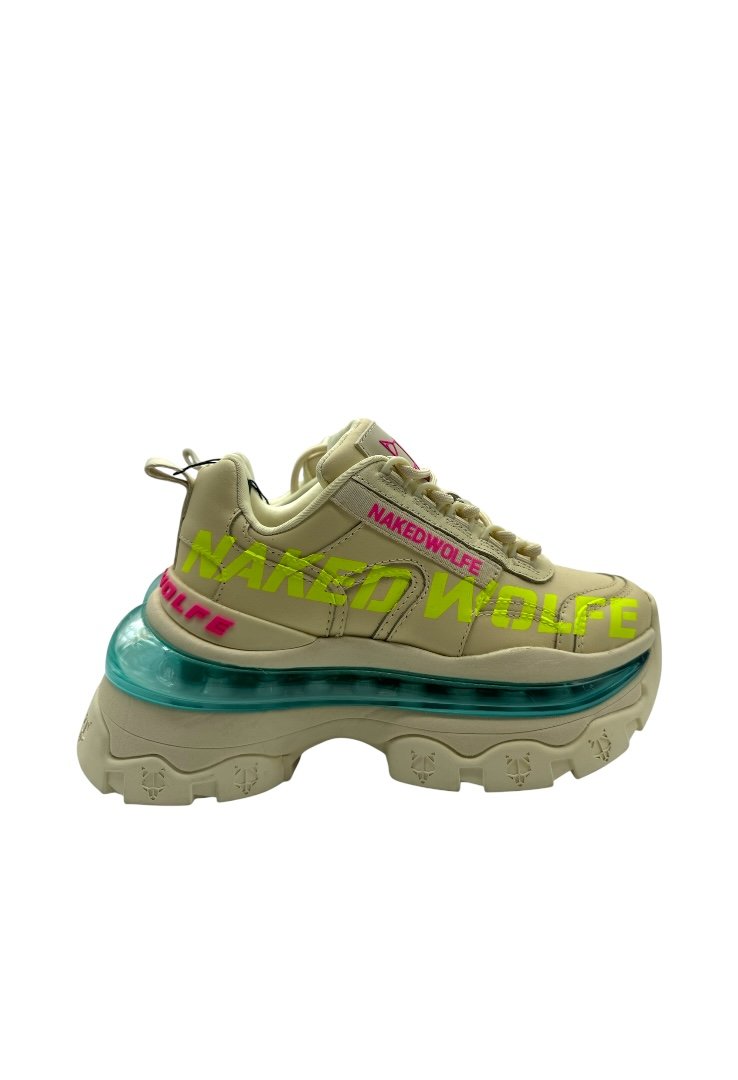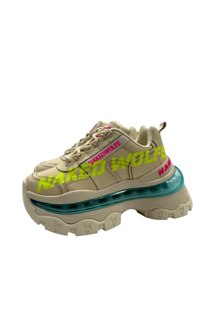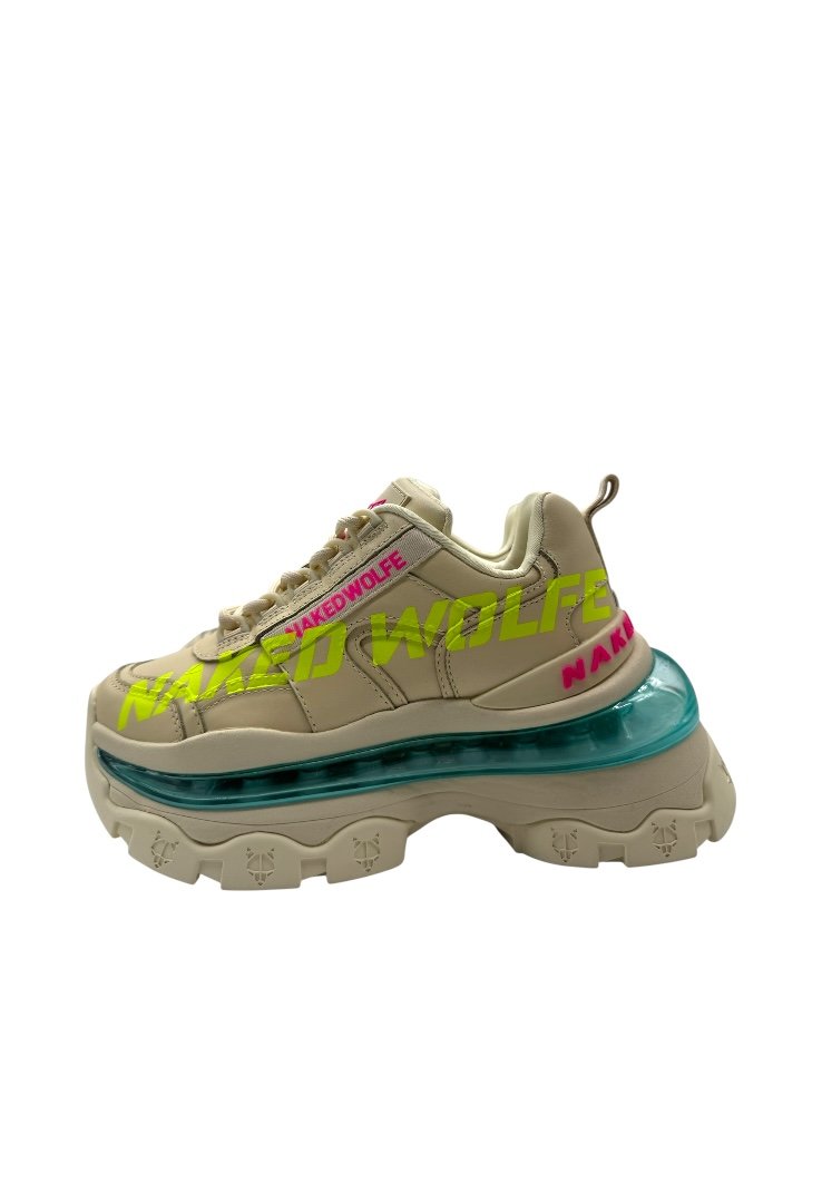 Trainers hechos de piel, con cierre de agujetas, suela de goma, suela exterior grabada con láser y bolsillo de burbuja.