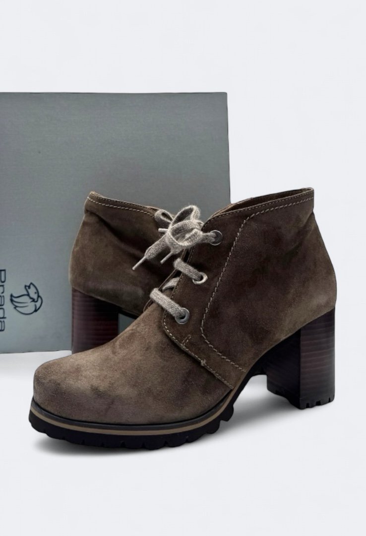 Botas con tacón elaboradas en gamuza, suela de goma.