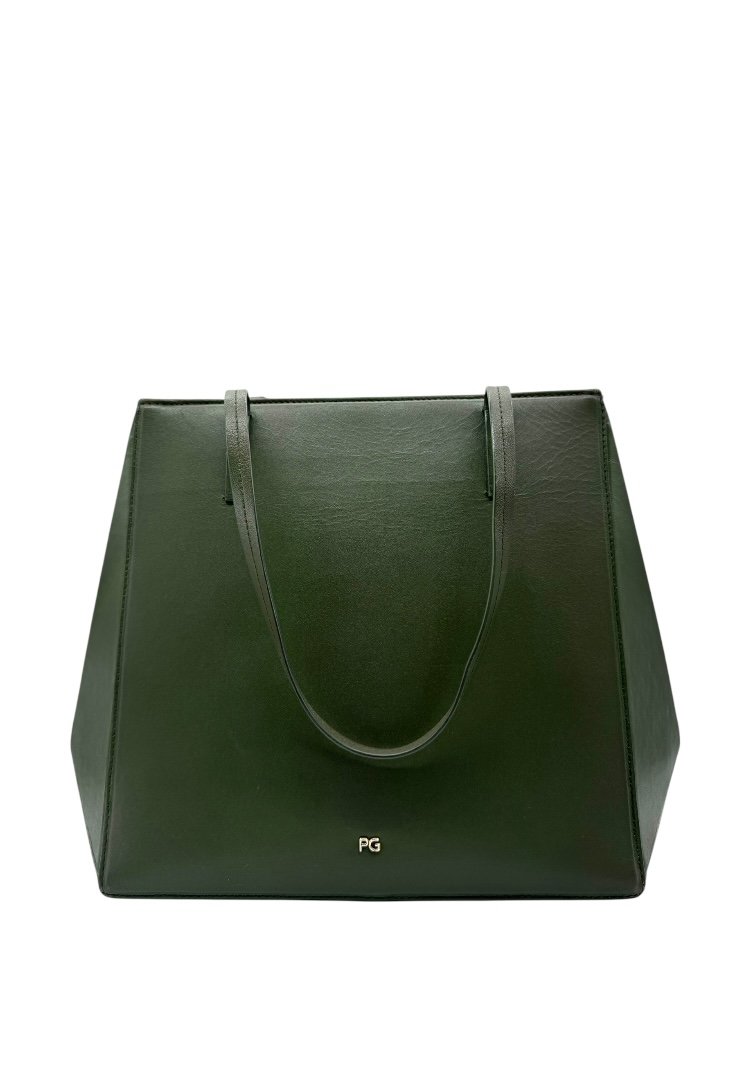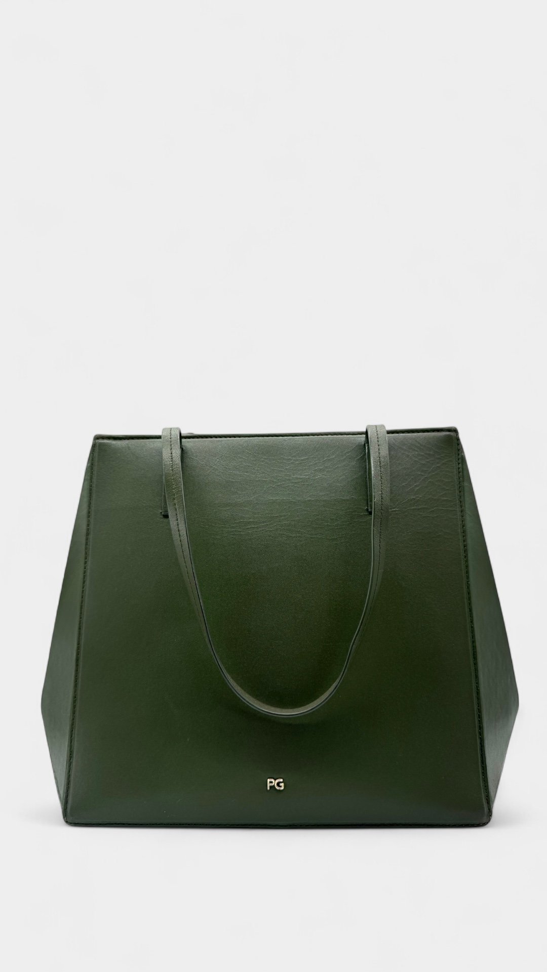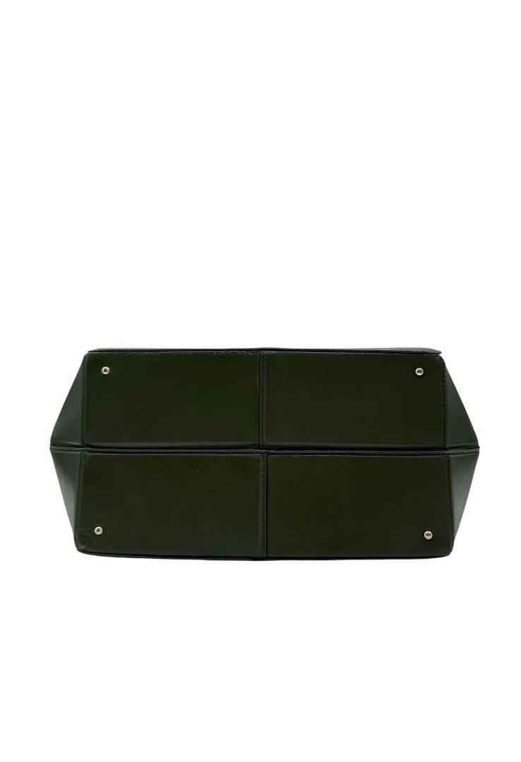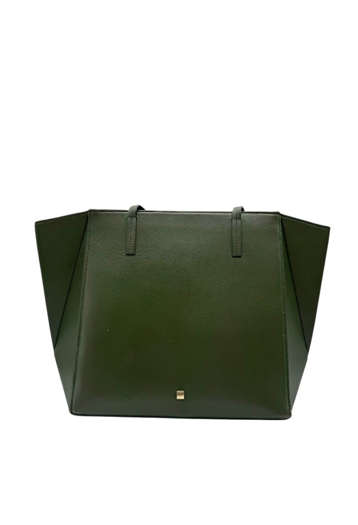 Bolso elaborado de piel de napa, apliques en plata, diseño origami plegable.