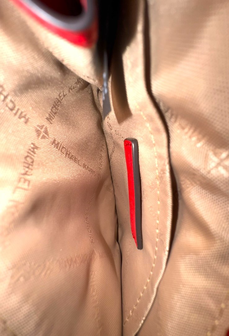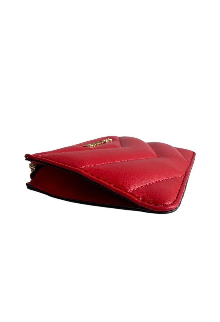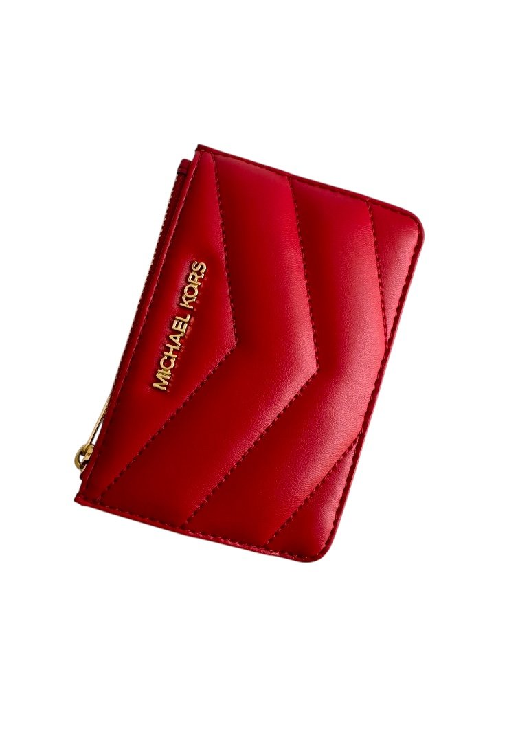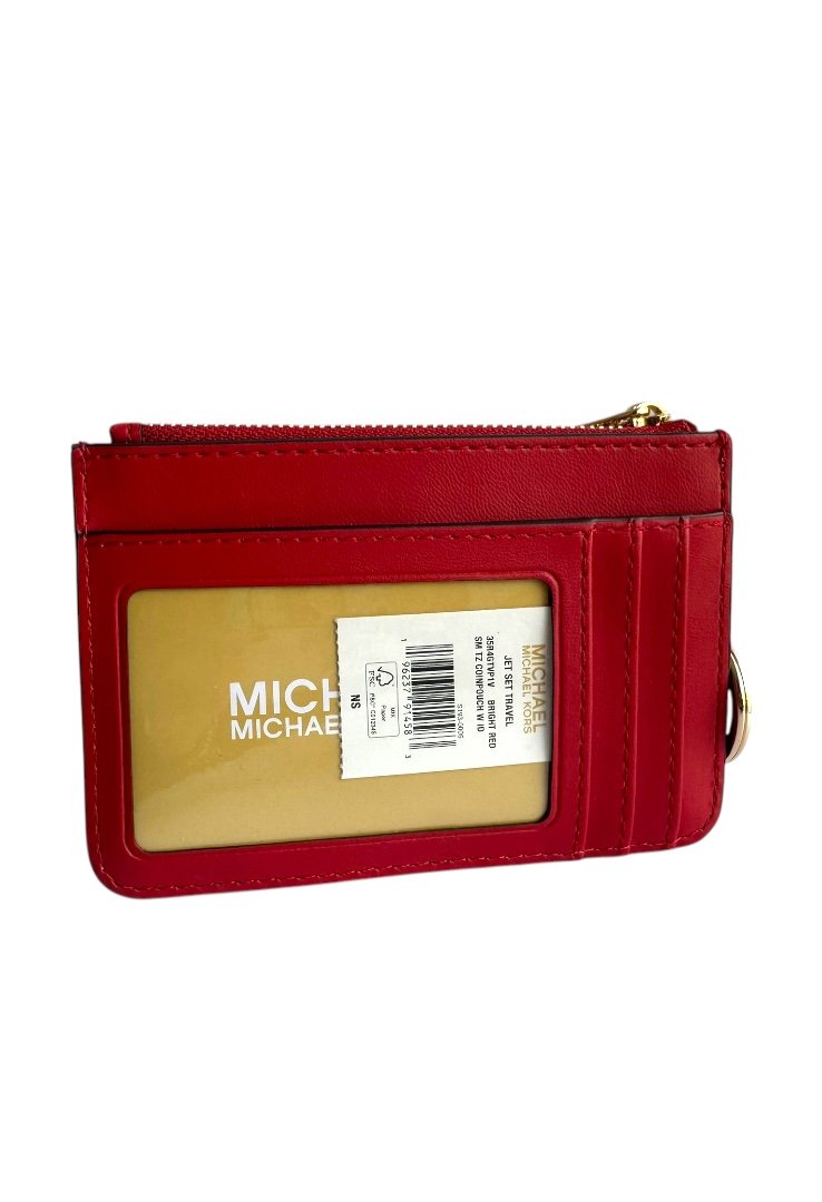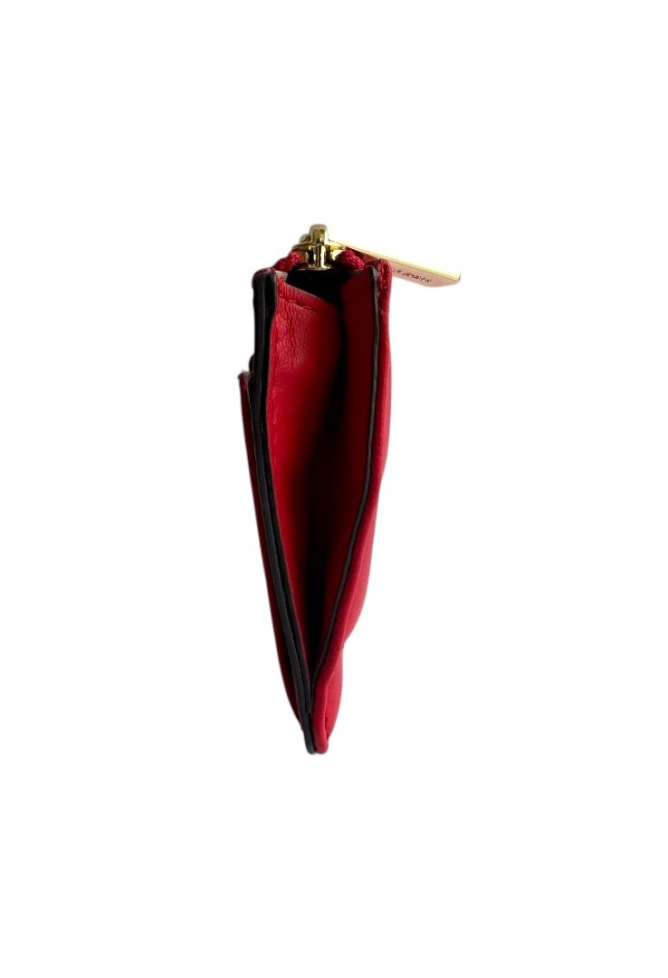 Monedero con cierre de cremallera, dos espacios para tarjetas. Aro de metal en color dorado.