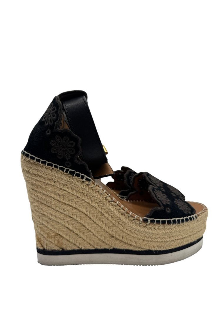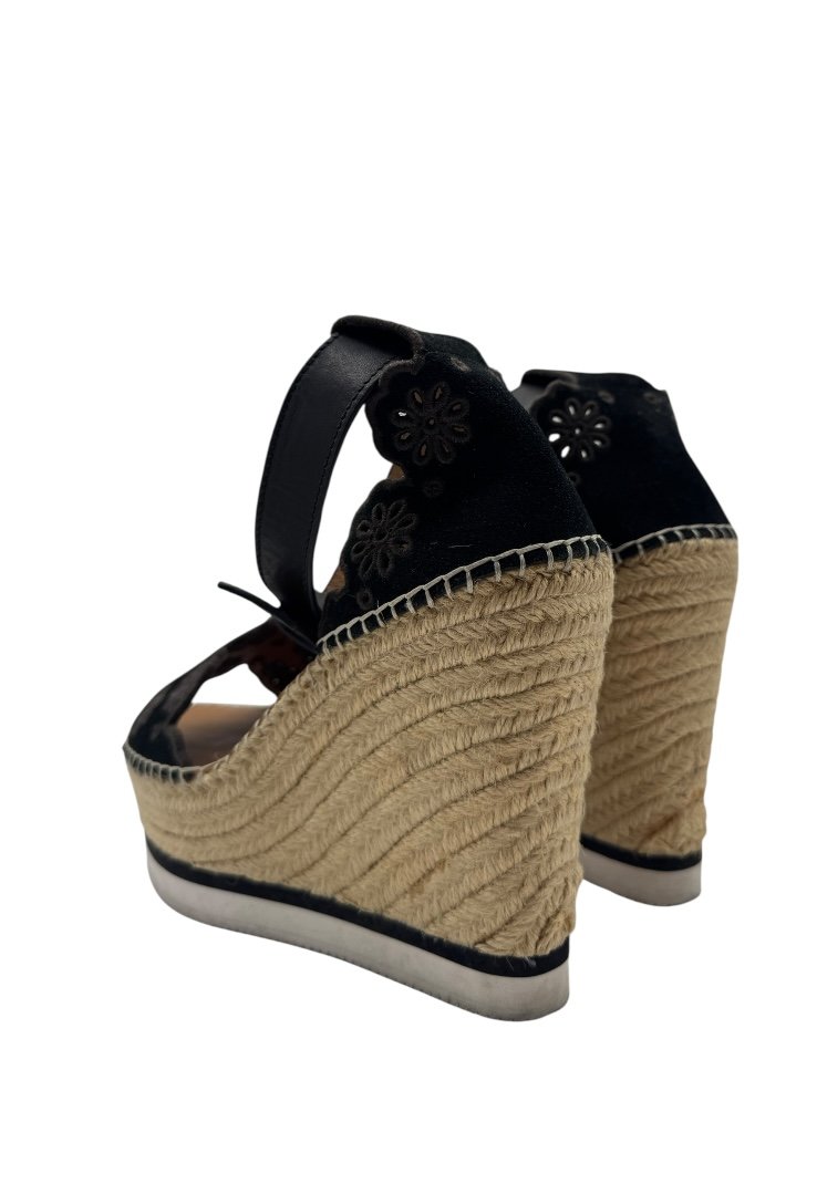 Alpargatas elaboradas de cuero y gamuza, broche en dorado.