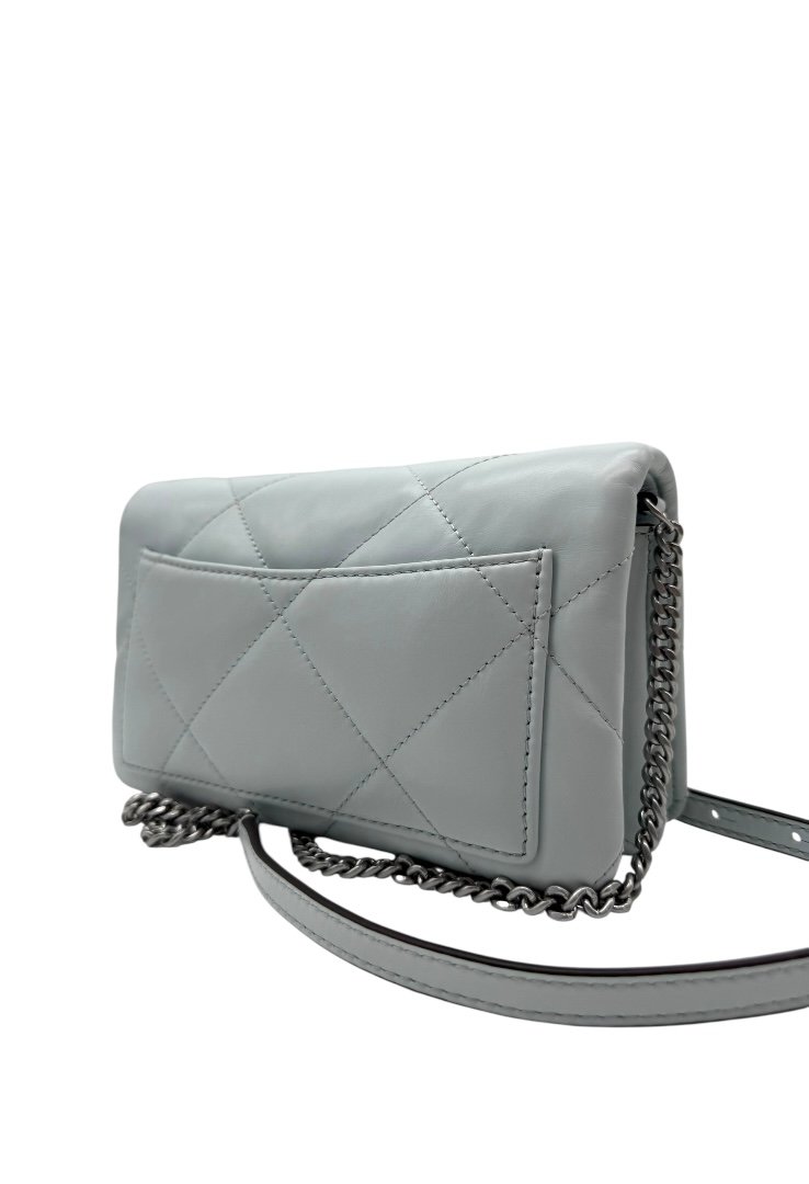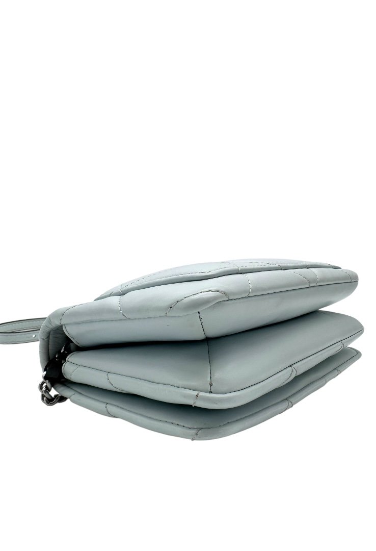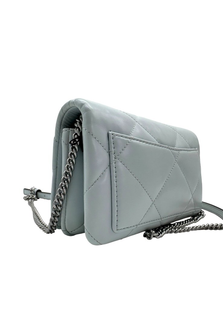 Elaborada en piel sueve con un diseño de rombos acolchonada, herrarjes dobles biceleados en el cierrre magnético, correa de piel y cadena para llevarla cruzada o como un clutch.