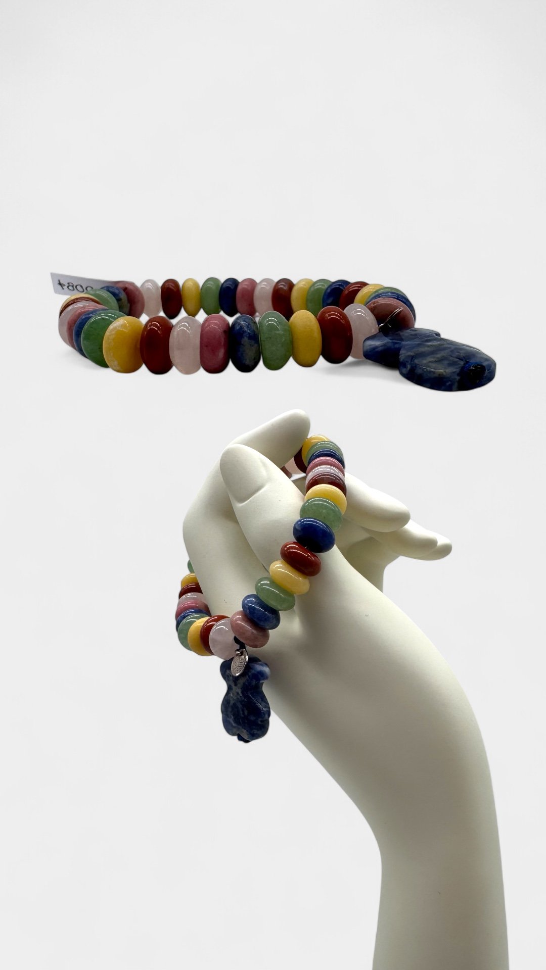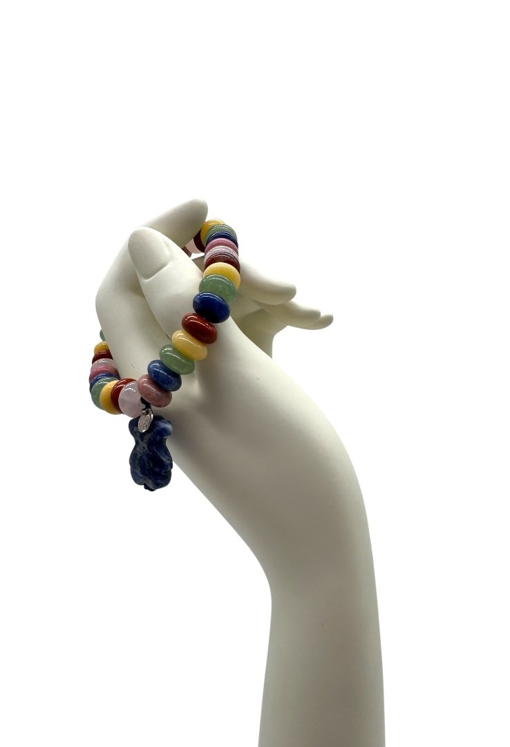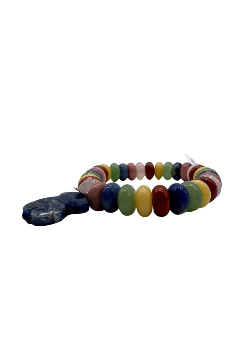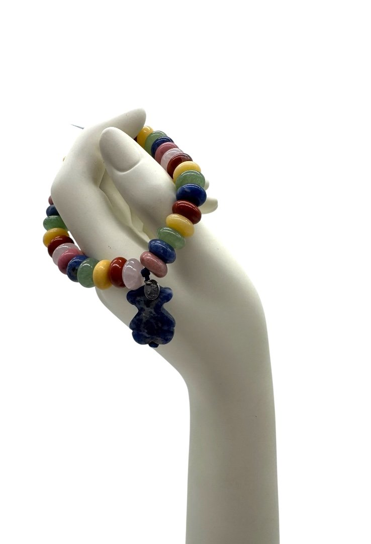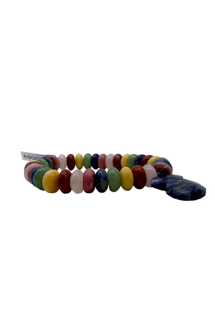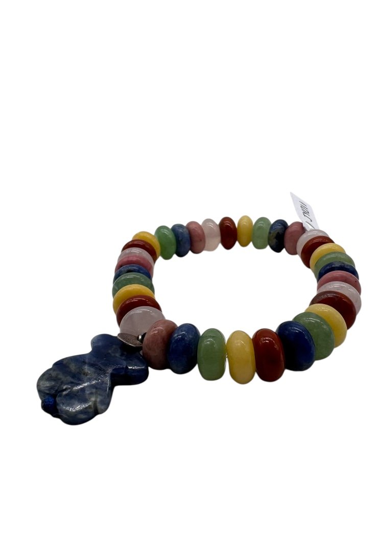 Pulsera elaborada de diferentes piedras, dije de oso de lapislazuli.