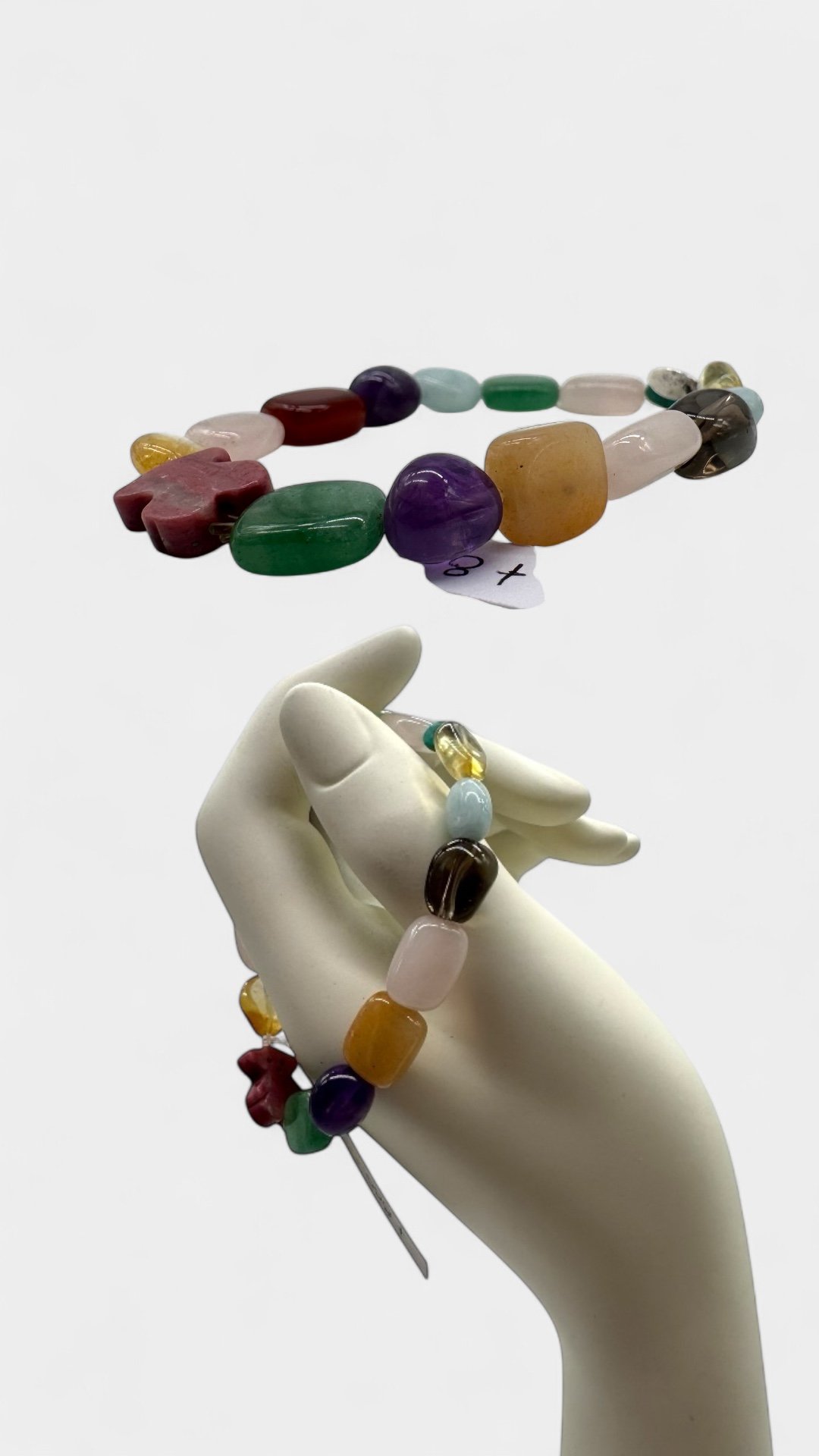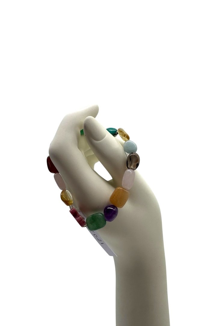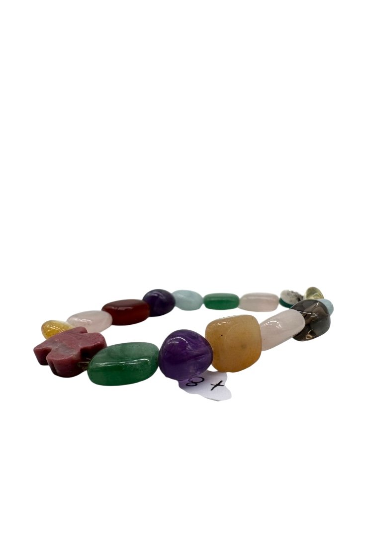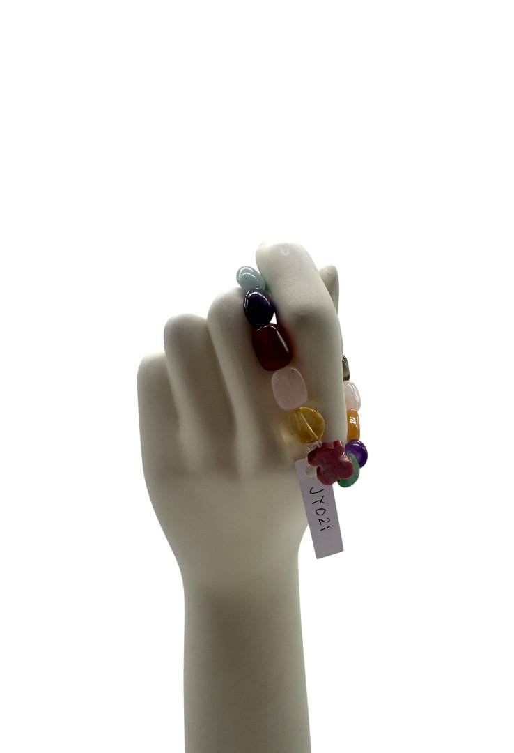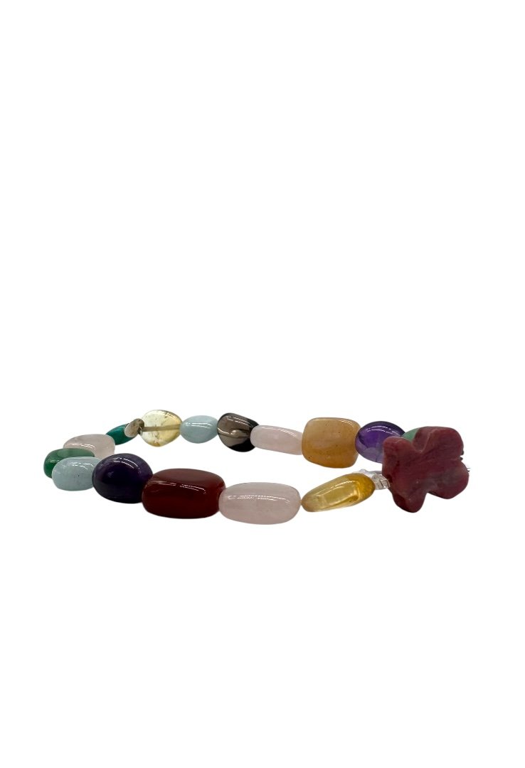 Pulsera de piedras preciosas, con dije de oso de rodonita.