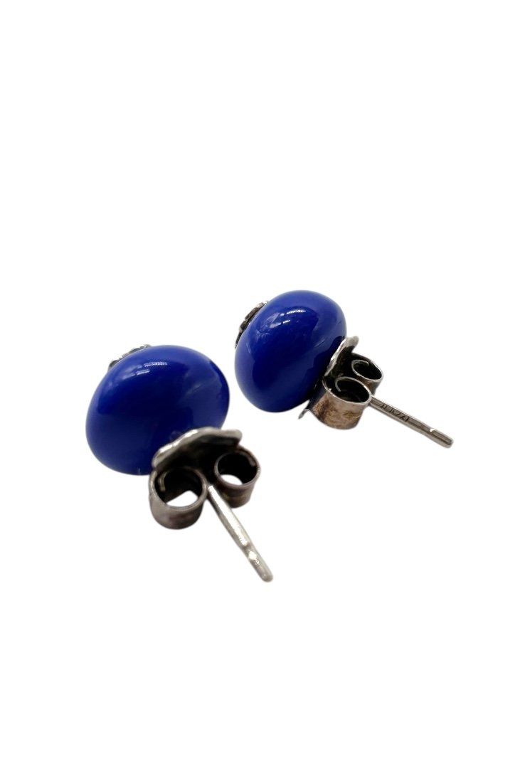 Aretes de murano, con detalle del oso en plata.