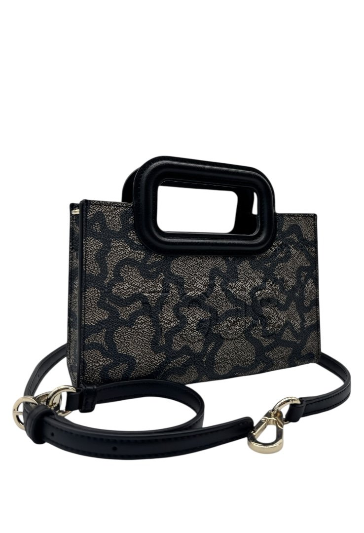 Bolso elaborado lona con diseño kaos, con detalles, marca en relieve en la parte frontal, cierre con botón magnético.