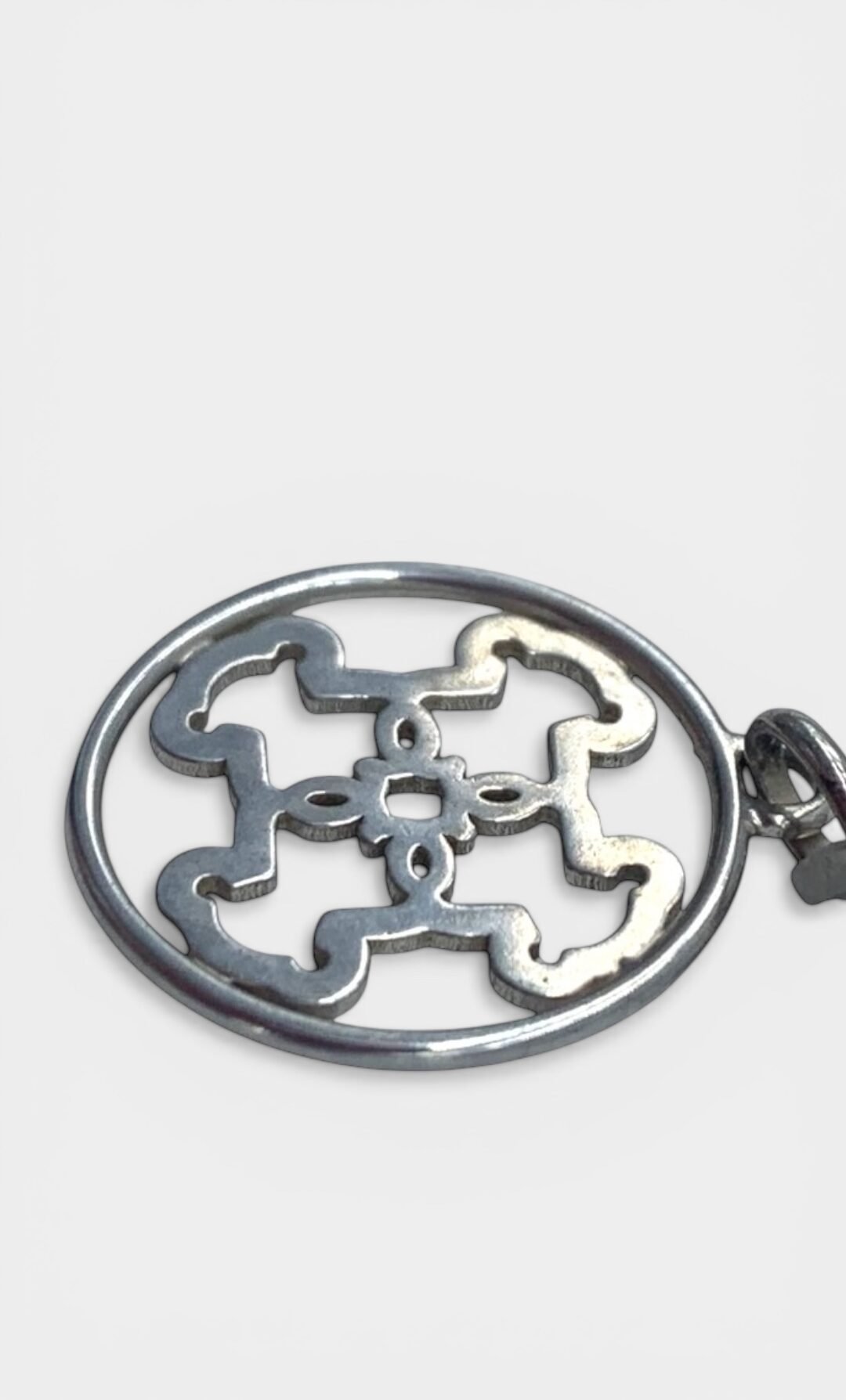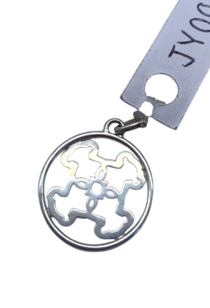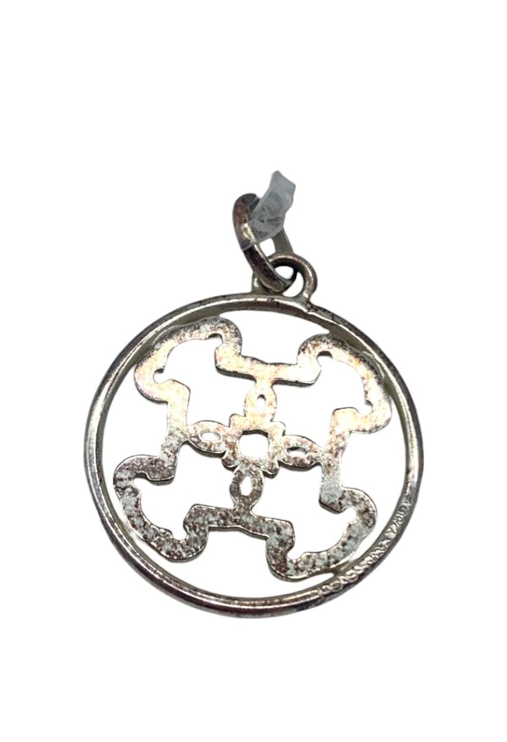 Dije elaborados de plata (primera ley) diseño circular, detalle de oso.