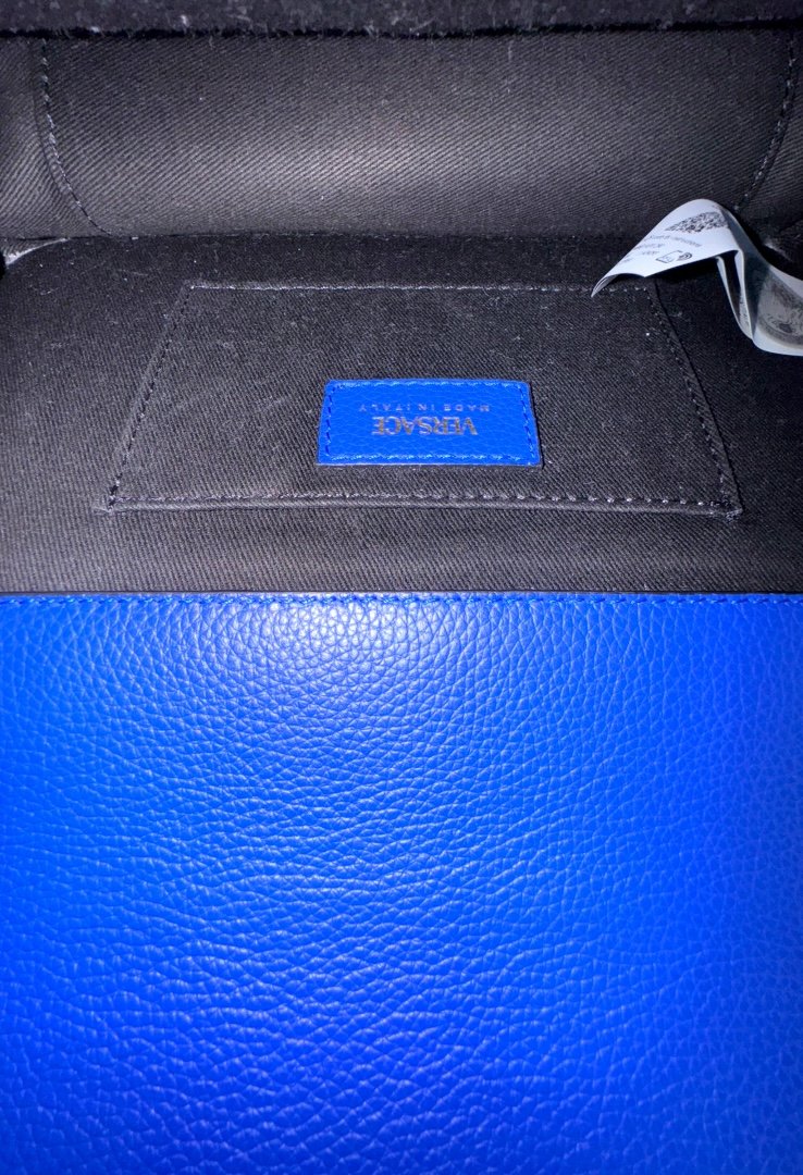 Fabricado piel suave, luce el icónico emblema Barroco V en herrajes dorados en la solapa frontal. Compacto pero elegante, este bolso bandolera ofrece funcionalidad y el estilo atemporal de Versace.