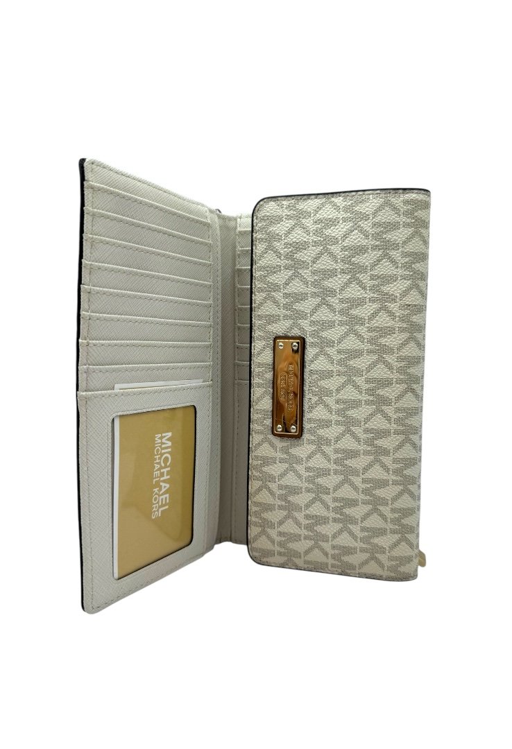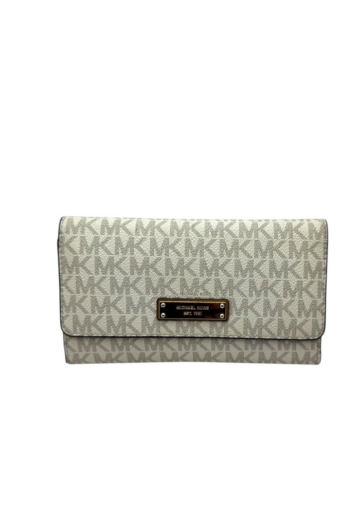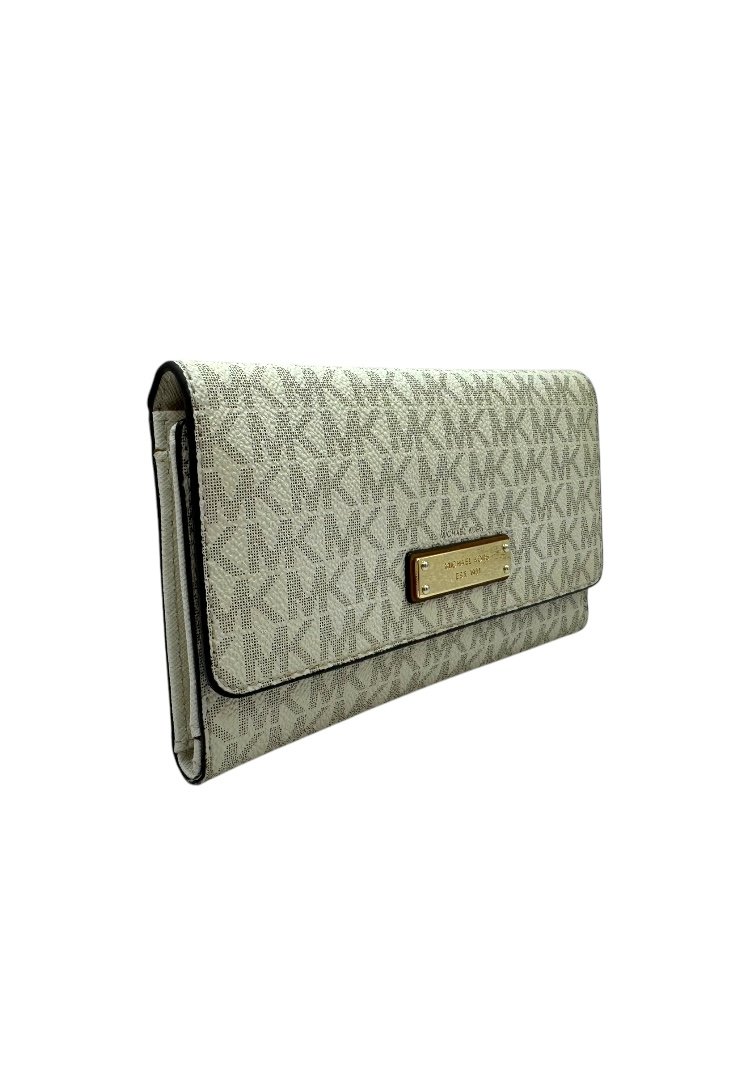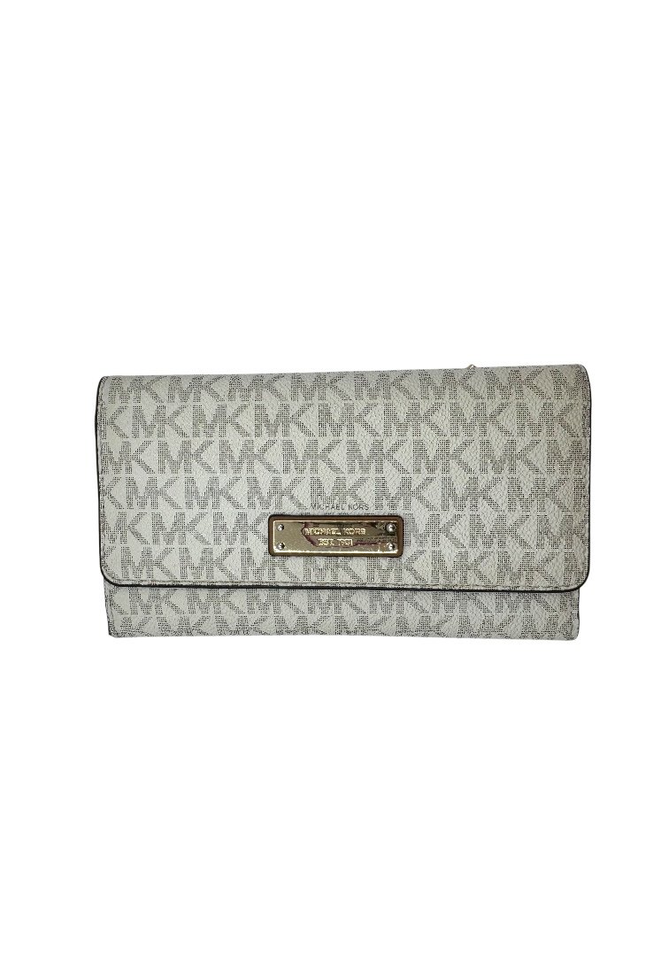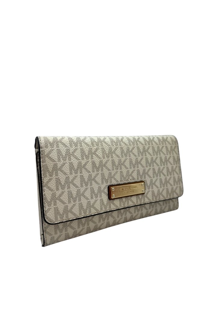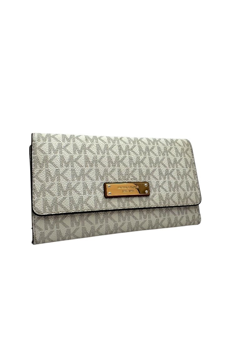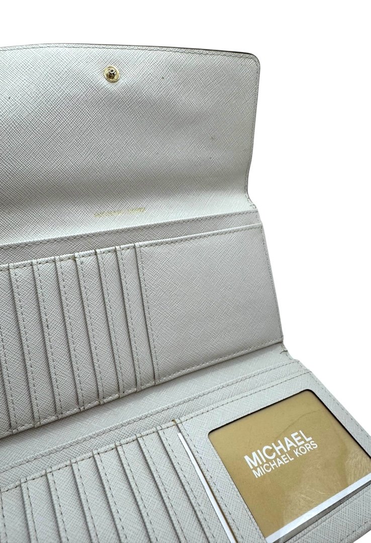 Cierre superior con solapa con logotipo de Michael Kors y bolsillo abierto en la parte posterior.