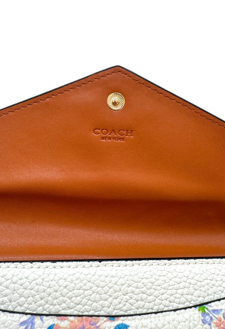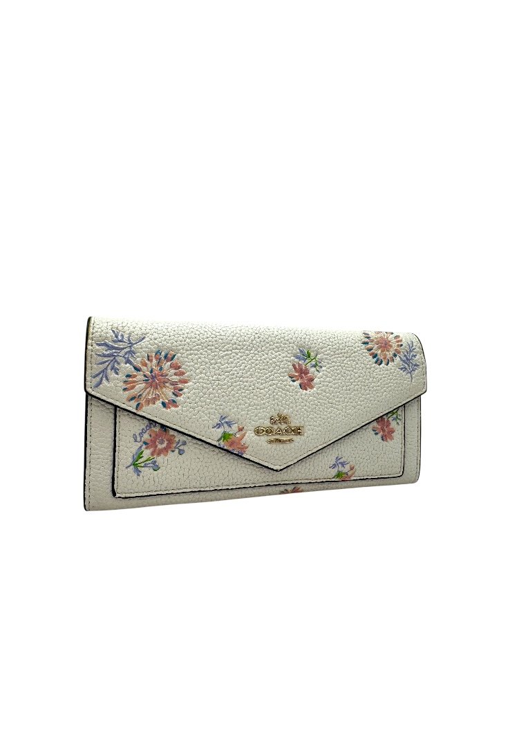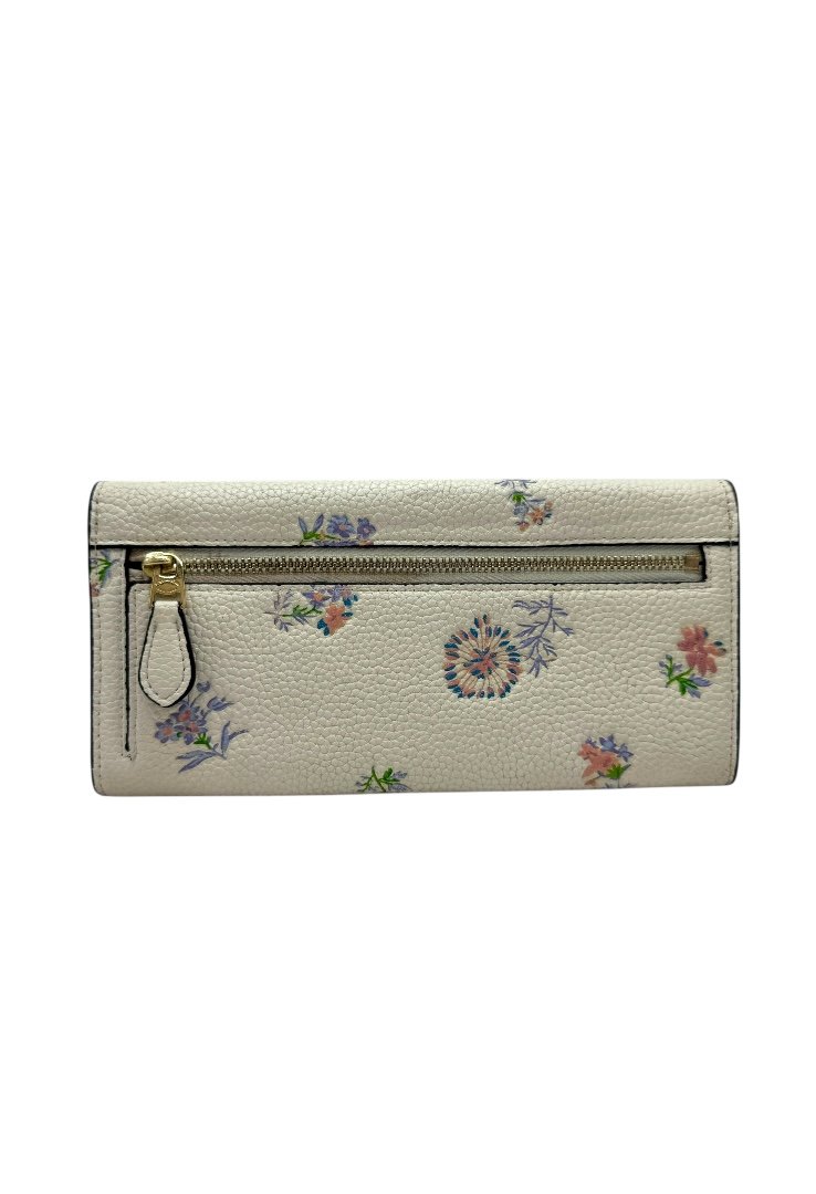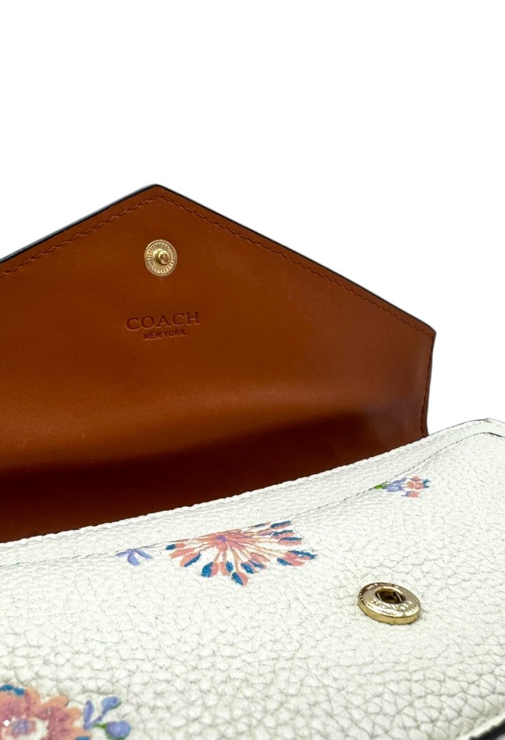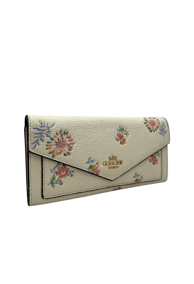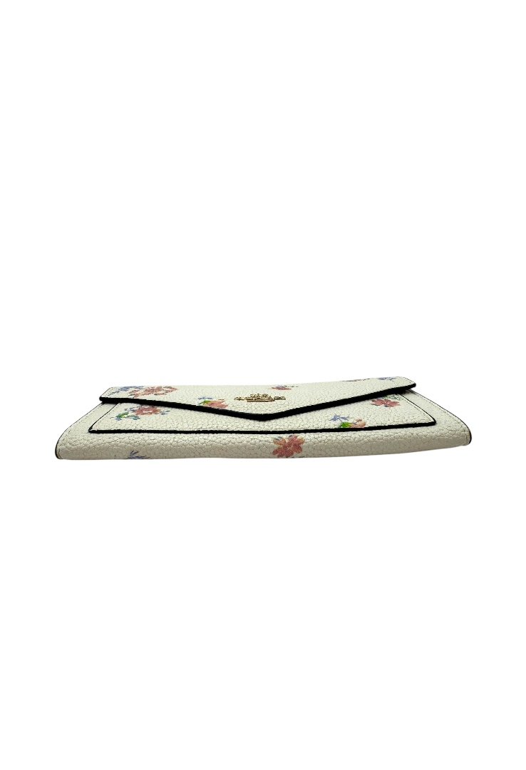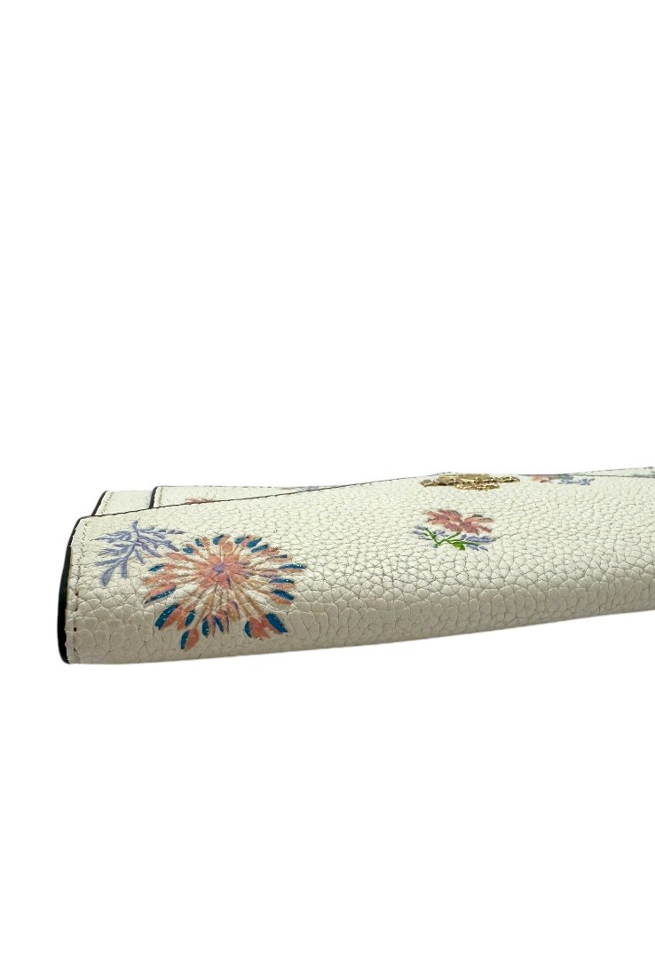Fabricada en piel suave con diseño de flores, cierre de solapa.