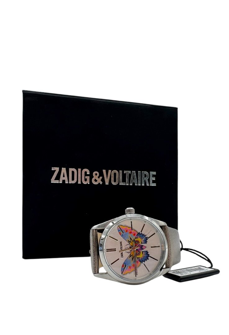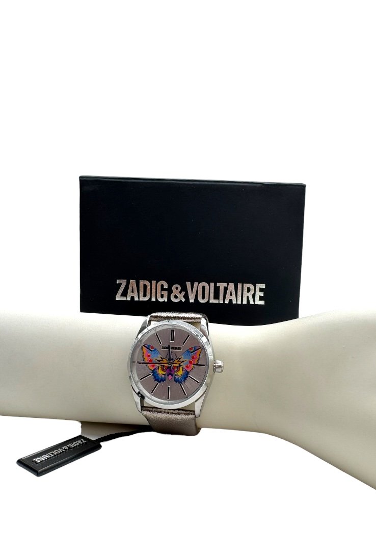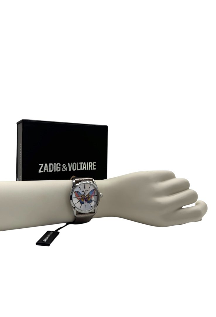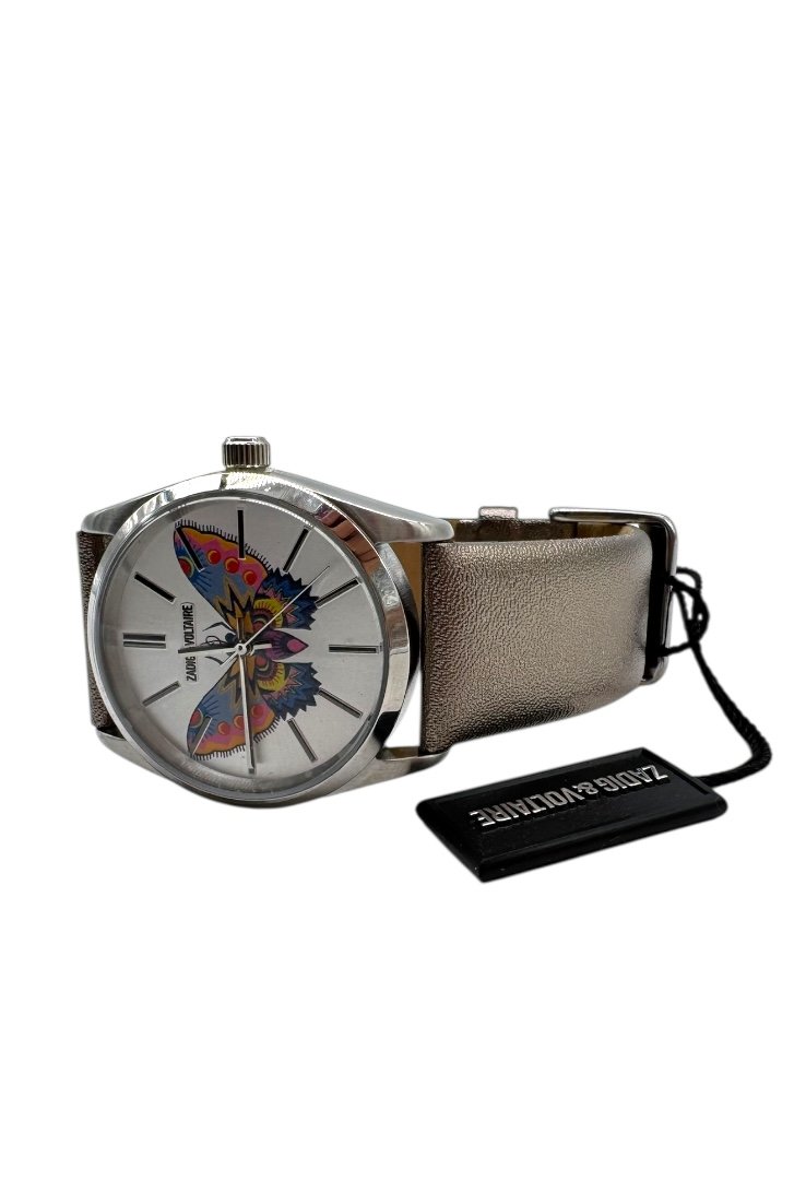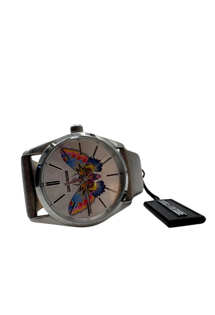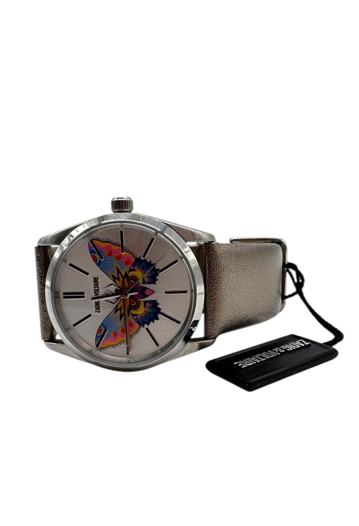 Reloj elaborado en 100% acero, caratula con diseño de mariposa.