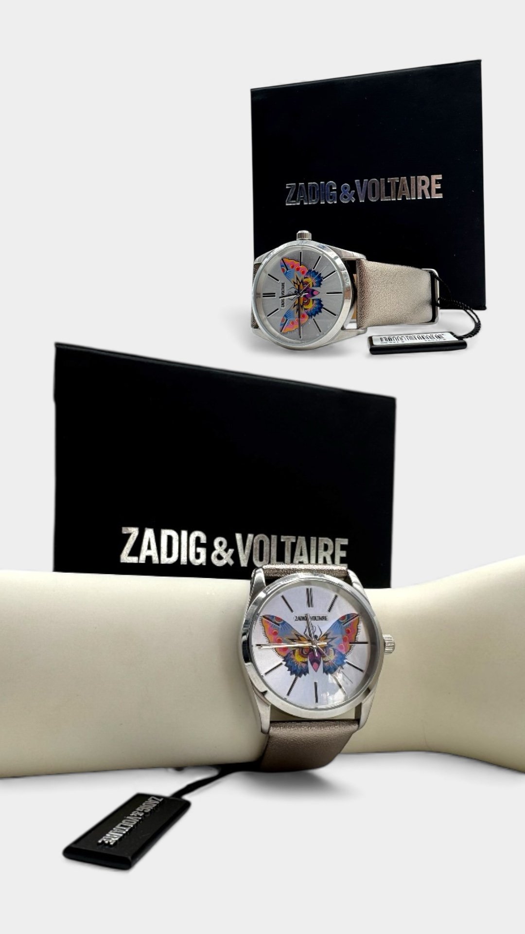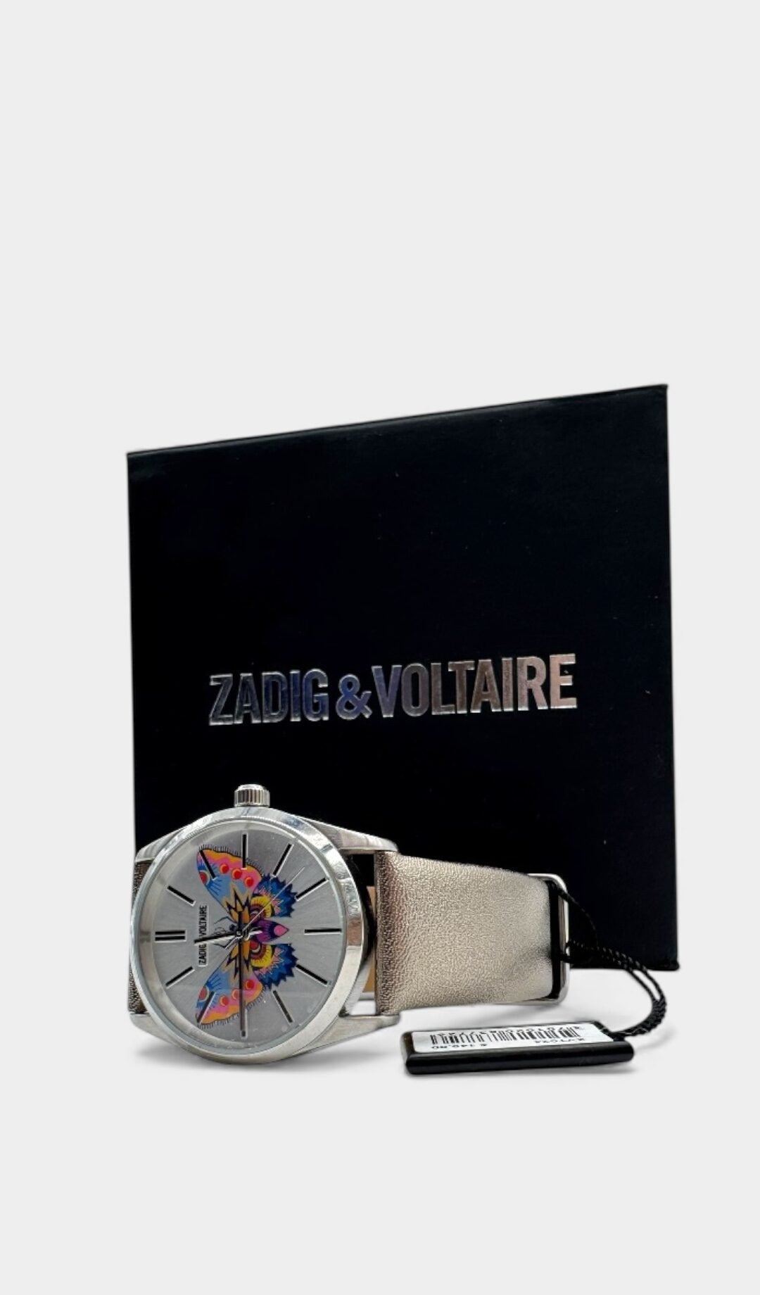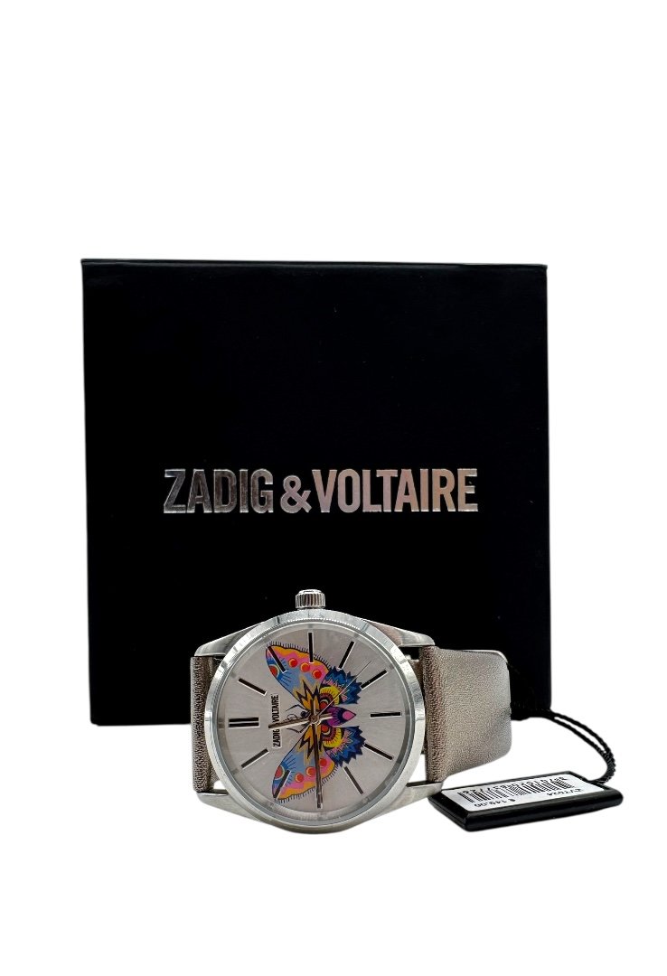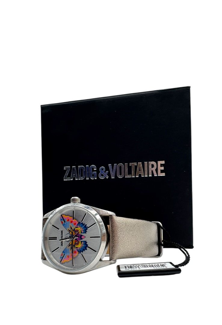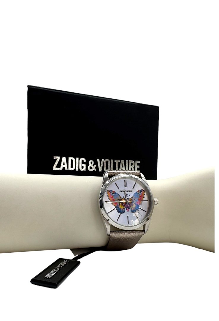 Reloj elaborado en 100% acero, caratula con diseño de mariposa.